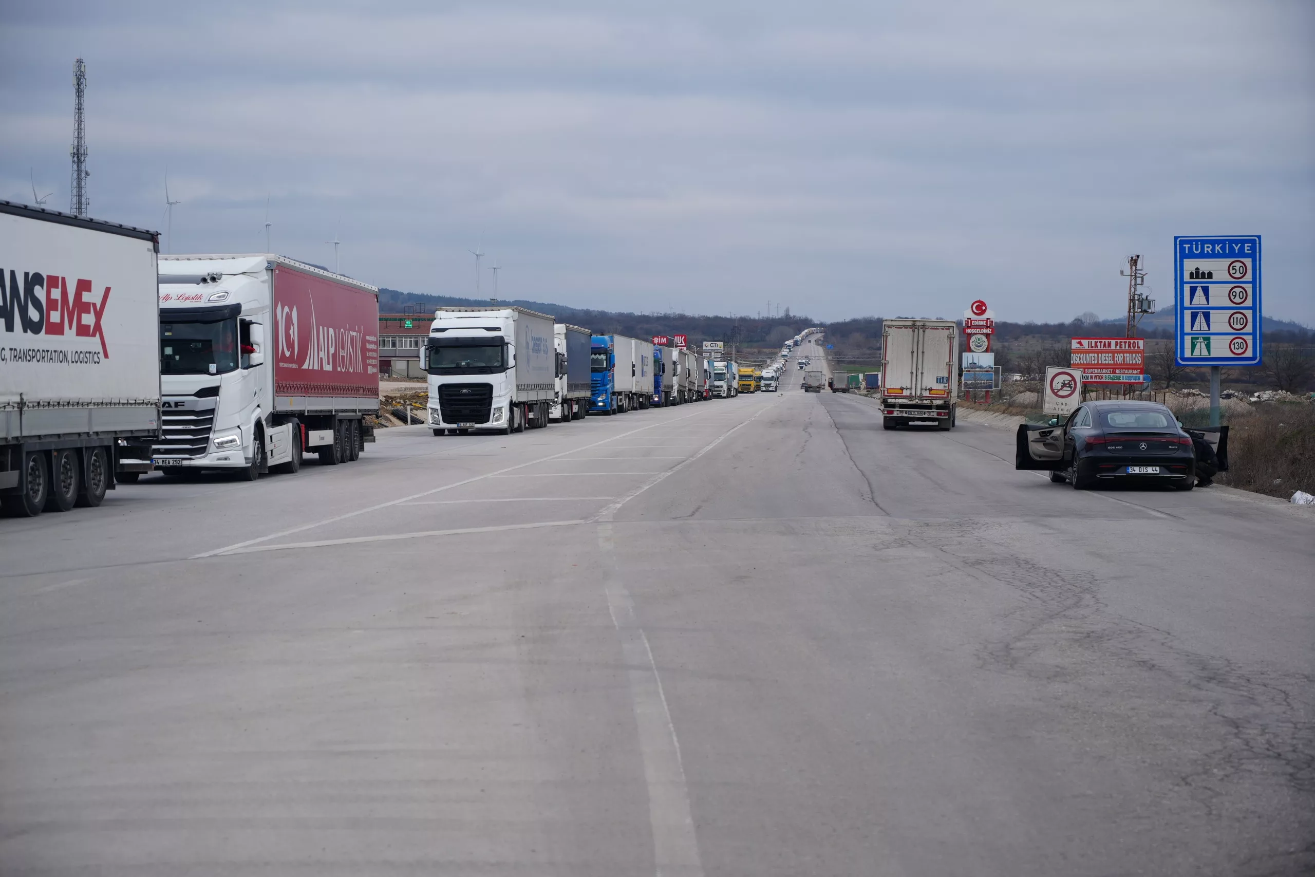 Hundreds of truck drivers waiting to cross into Bulgaria at the Hamzabeyli Border Gate in Edirne have formed a 17-kilometer queue in freezing temperatures. Drivers blame the congestion on system updates and slow customs processing on the Bulgarian side.