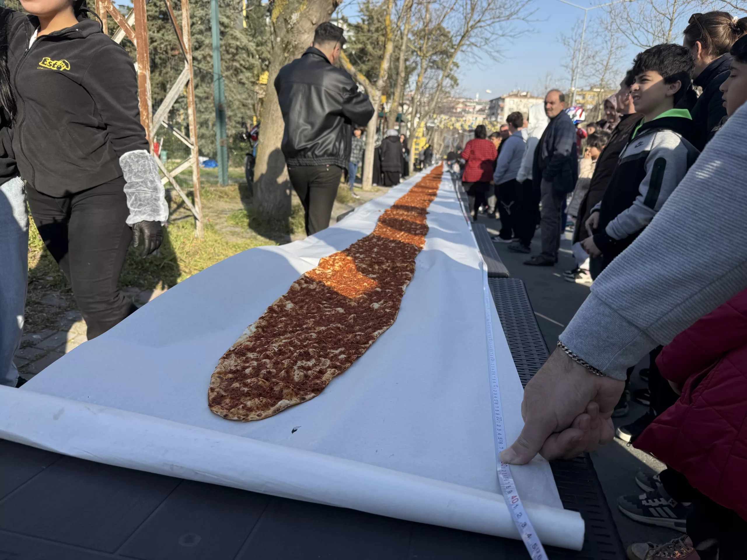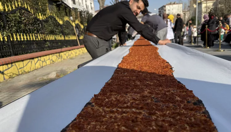 A lahmacun chef in Beylikdüzü, Istanbul, Türkiye, set a Guinness World Record by preparing a 63-meter-long lahmacun. The giant flatbread, made with specially prepared dough and filling, drew large crowds during the record attempt.