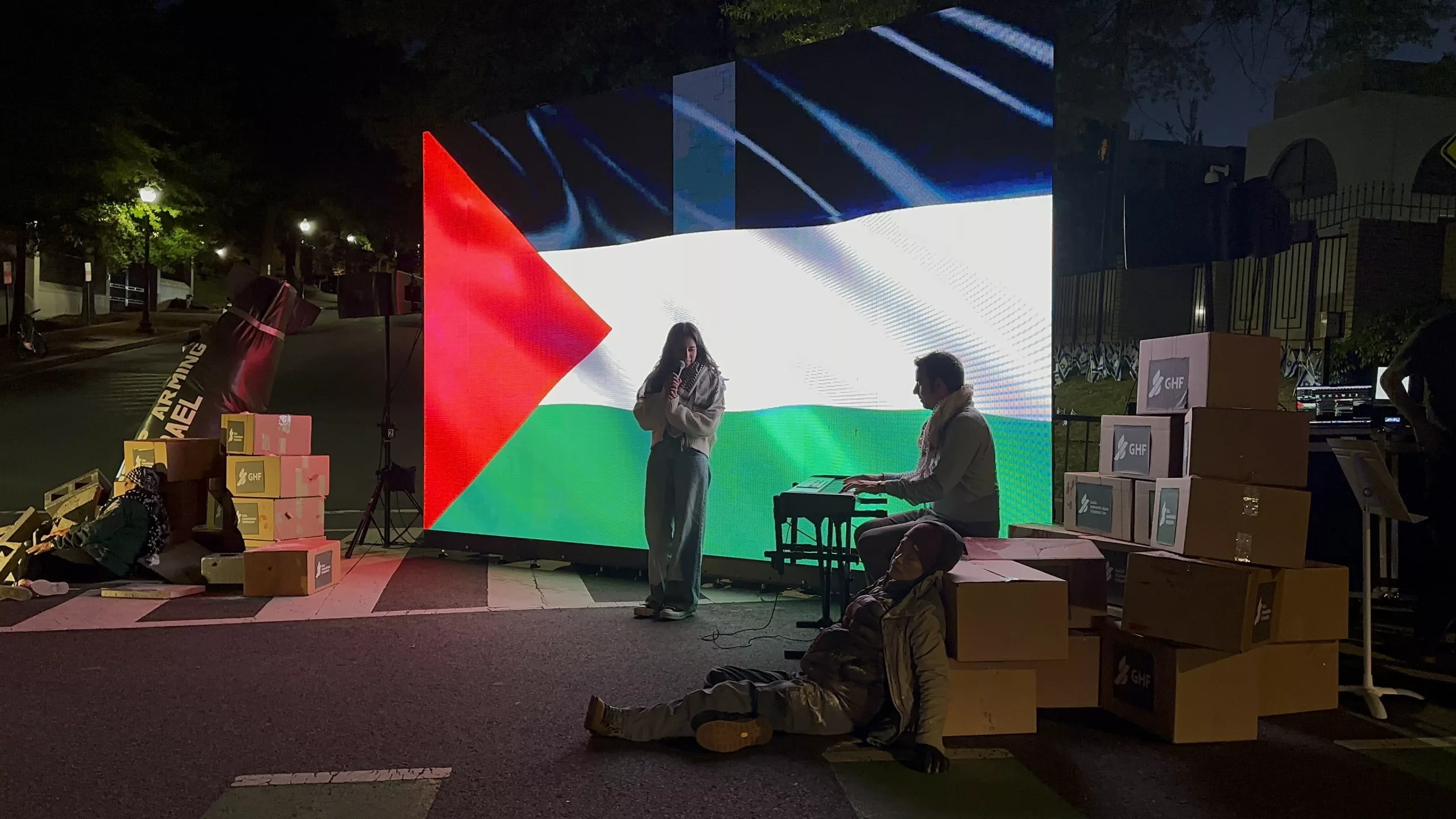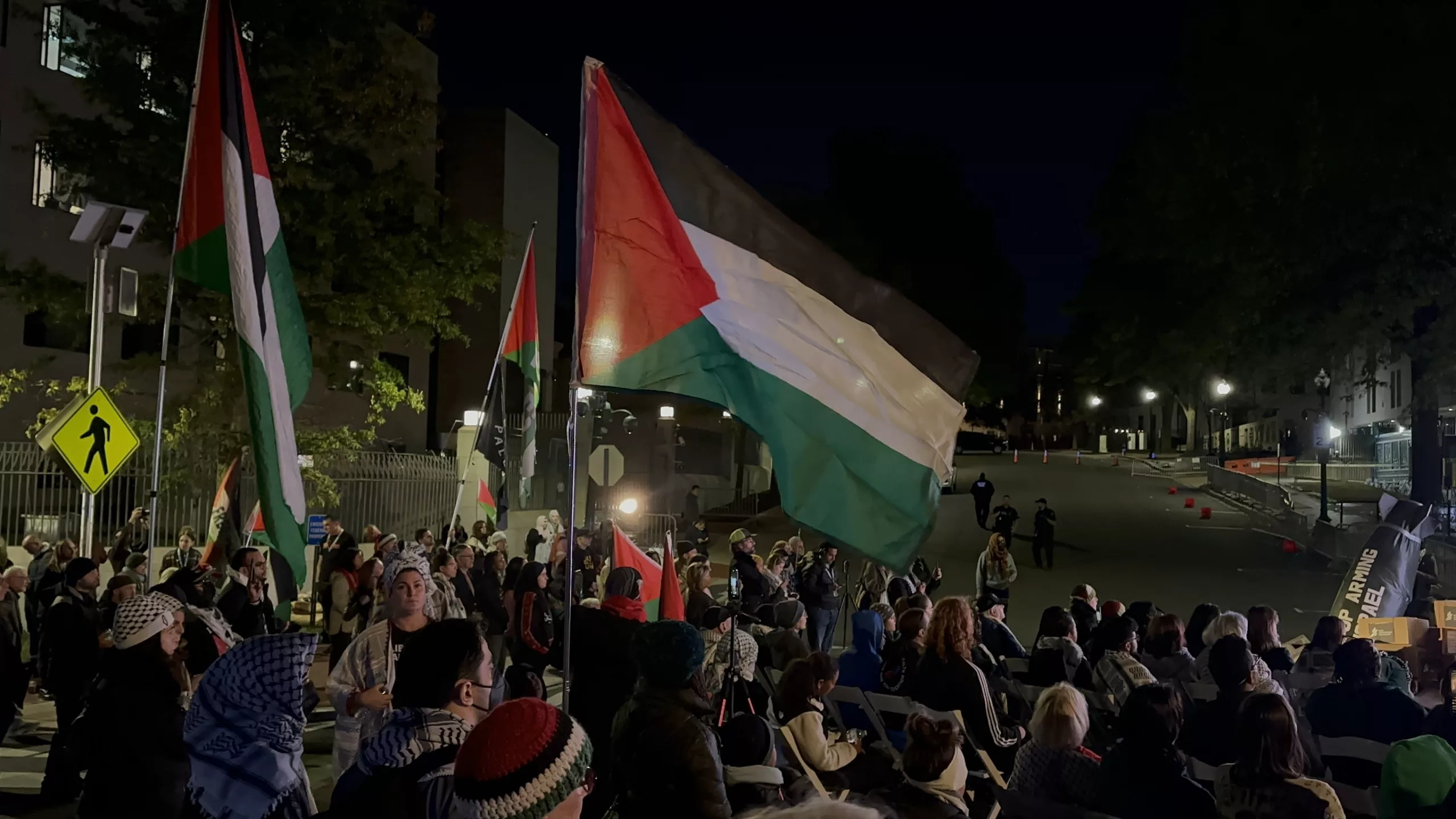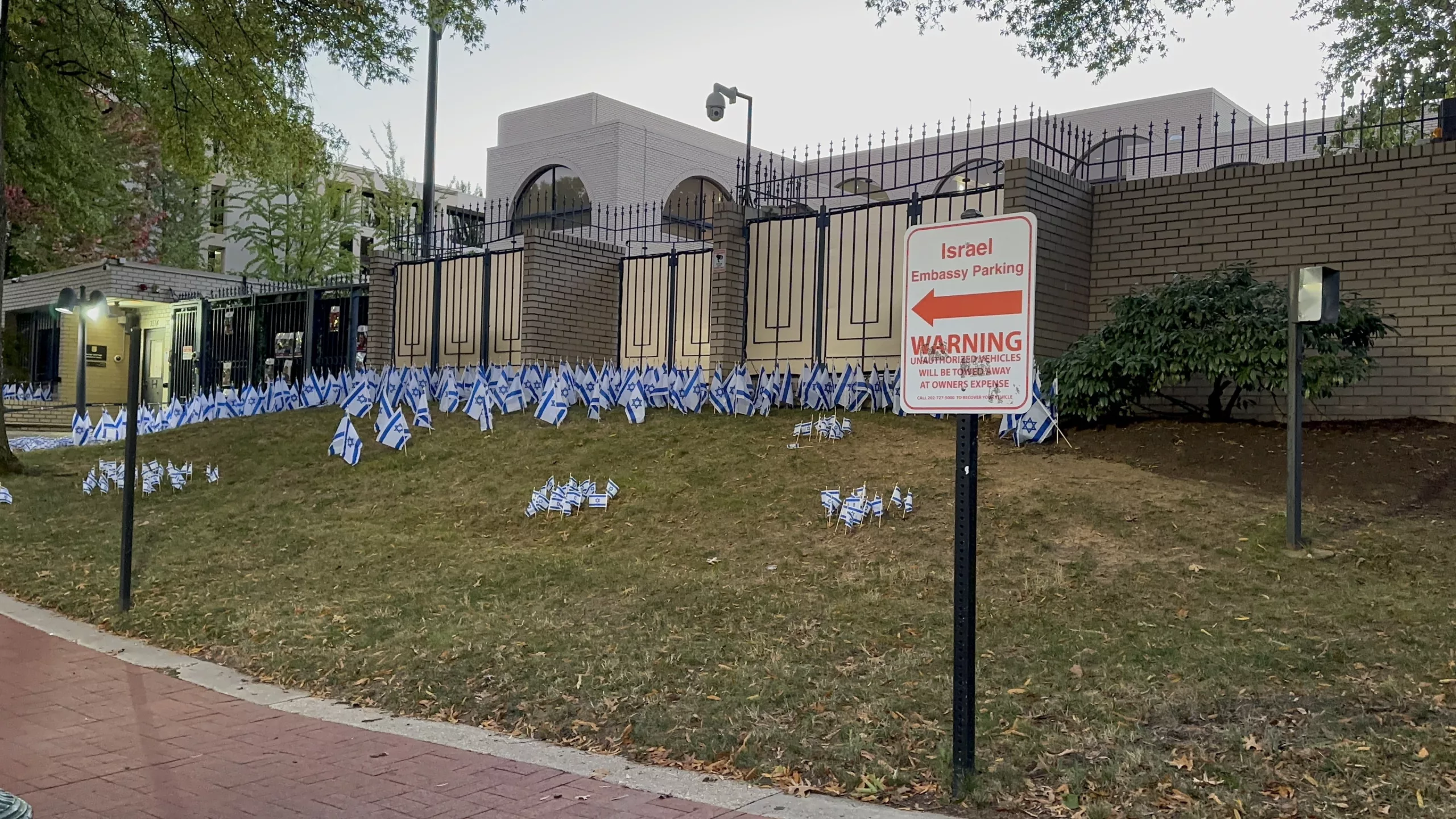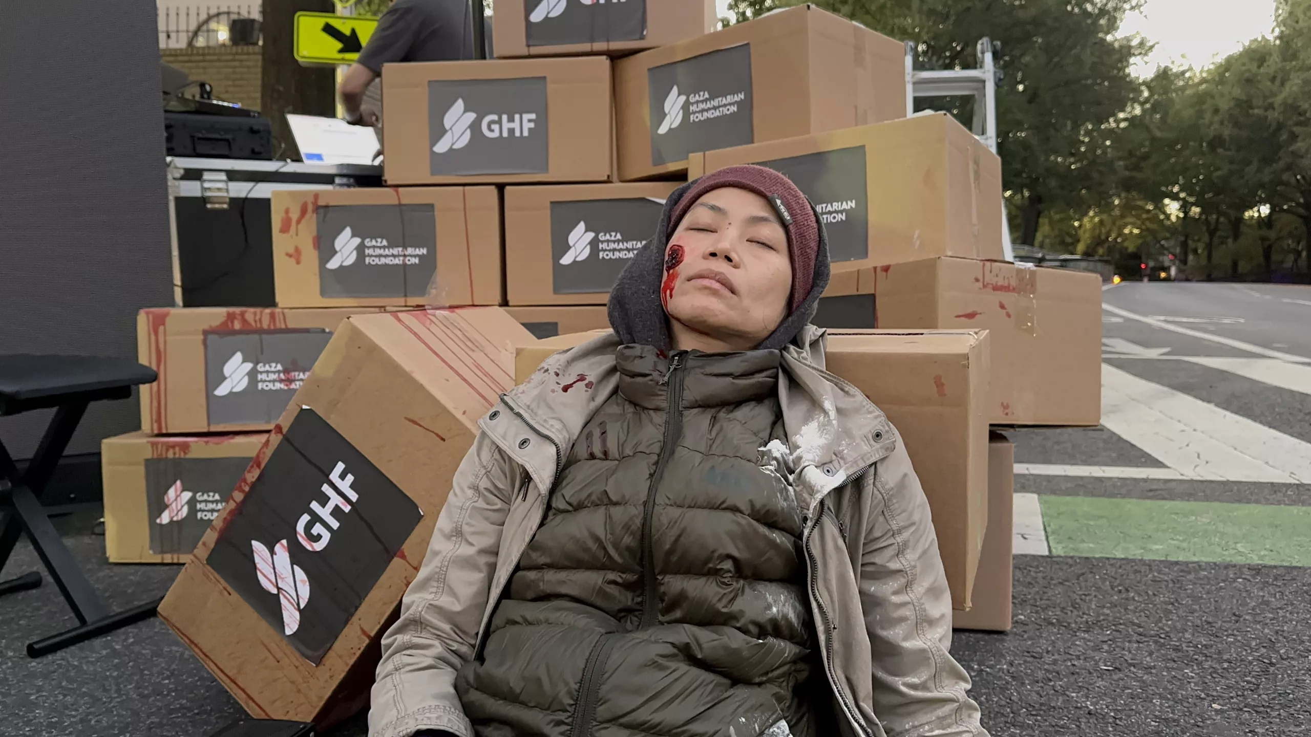 A group of activists gathered outside the Israeli Embassy in Washington, D.C., calling for an end to Israel’s blockade of Gaza. The protest, titled “From the Sea to DC,” included members of the Global Sumud flotilla, who were detained by Israeli forces in international waters while attempting to deliver aid to Gaza. Many of the flotilla members spoke publicly for the first time, recounting the torture they endured during their imprisonment by Israeli forces.