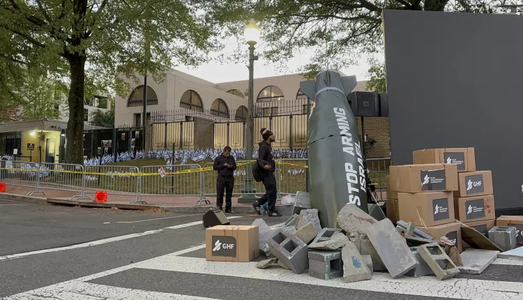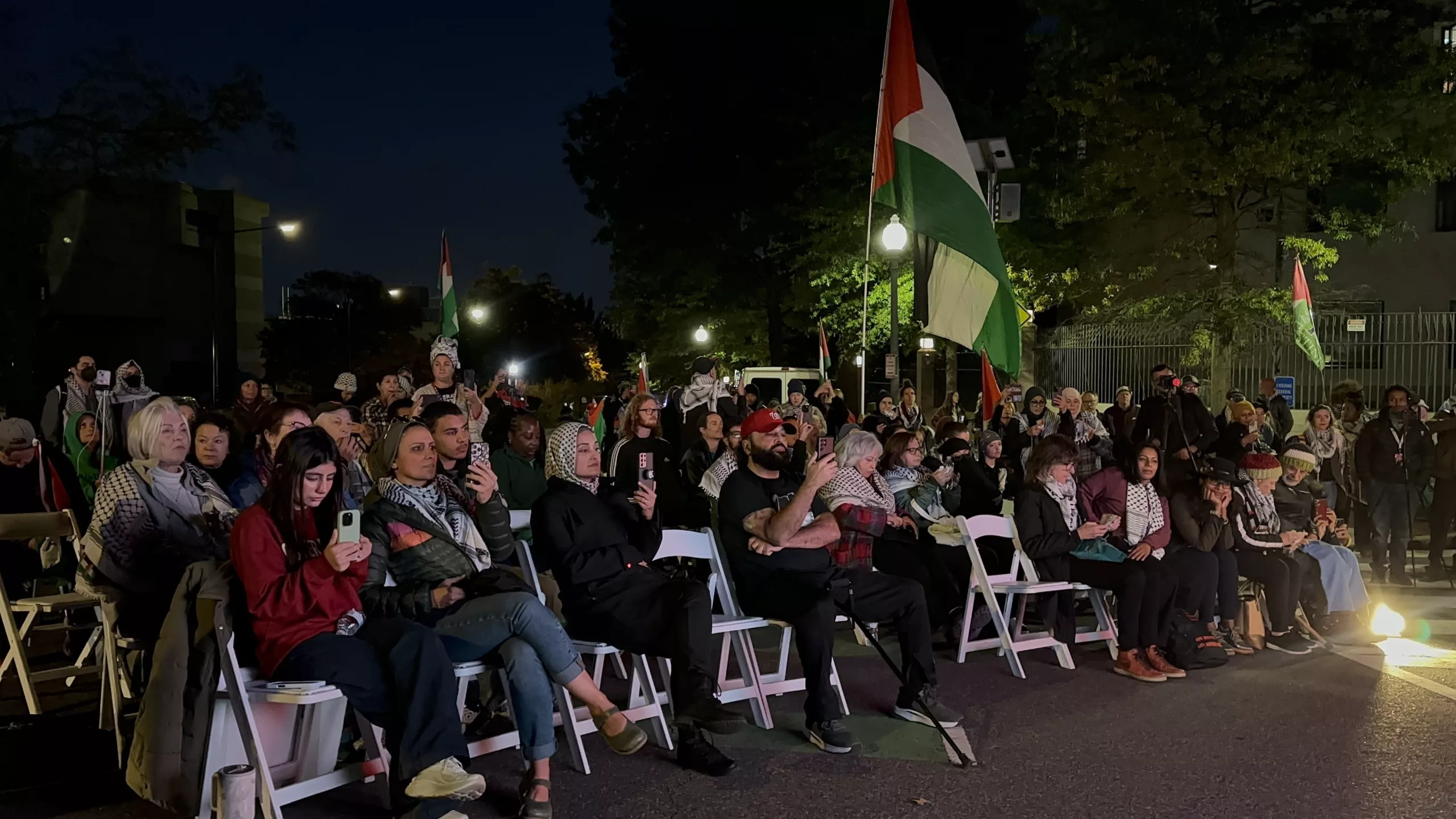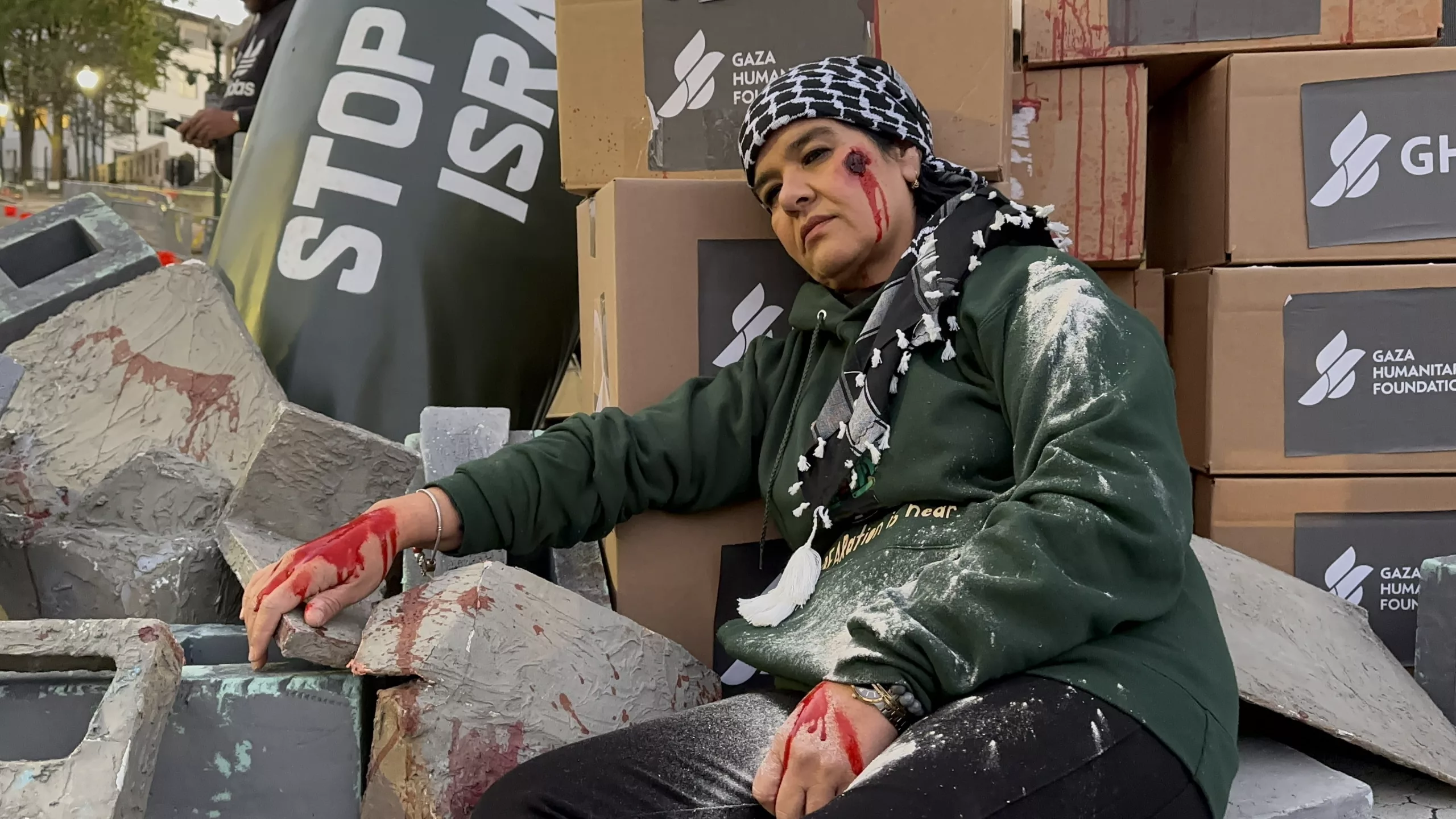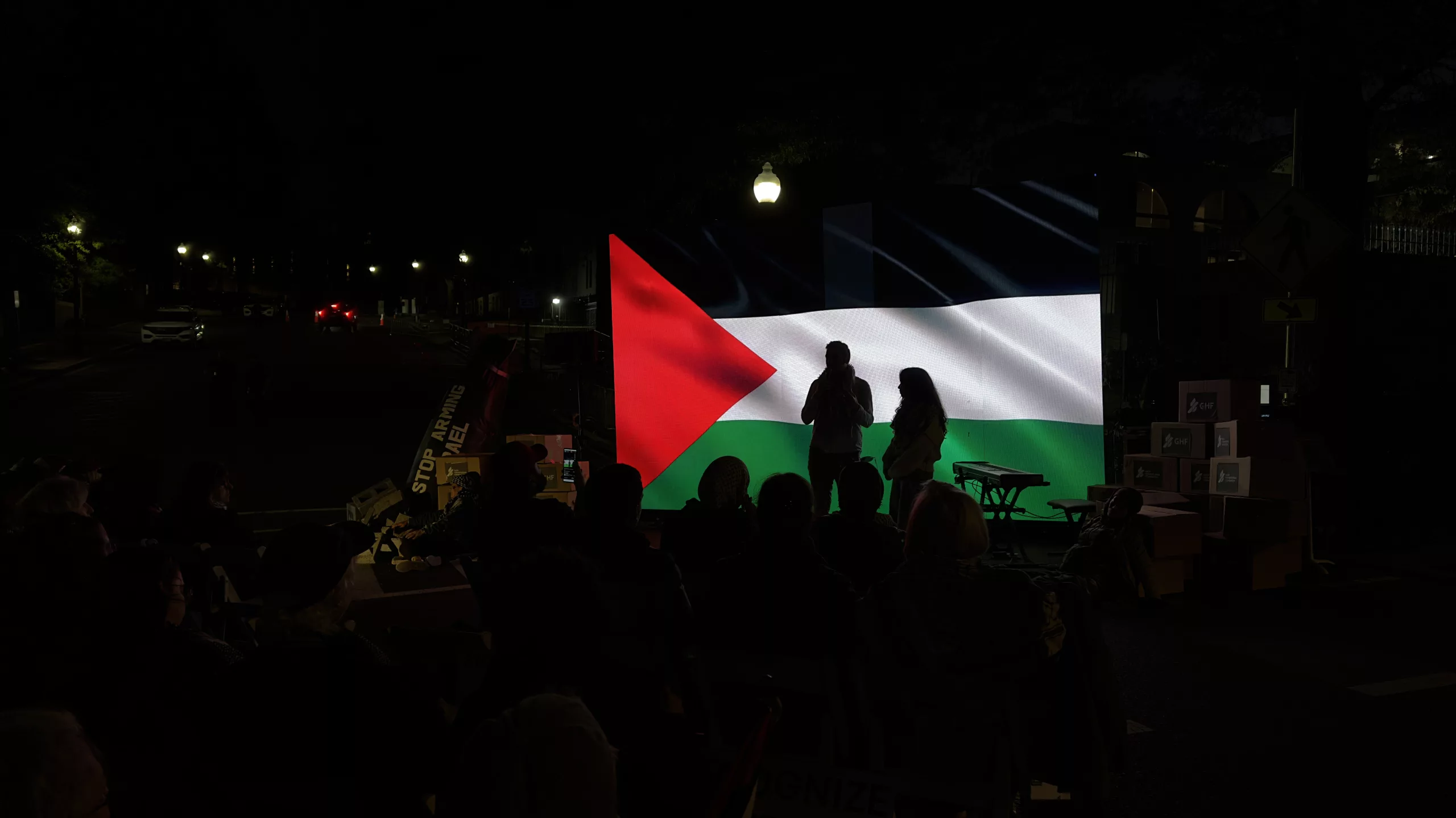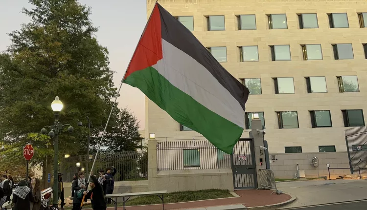 A group of activists gathered outside the Israeli Embassy in Washington, D.C., calling for an end to Israel’s blockade of Gaza. The protest, titled “From the Sea to DC,” included members of the Global Sumud flotilla, who were detained by Israeli forces in international waters while attempting to deliver aid to Gaza. Many of the flotilla members spoke publicly for the first time, recounting the torture they endured during their imprisonment by Israeli forces.