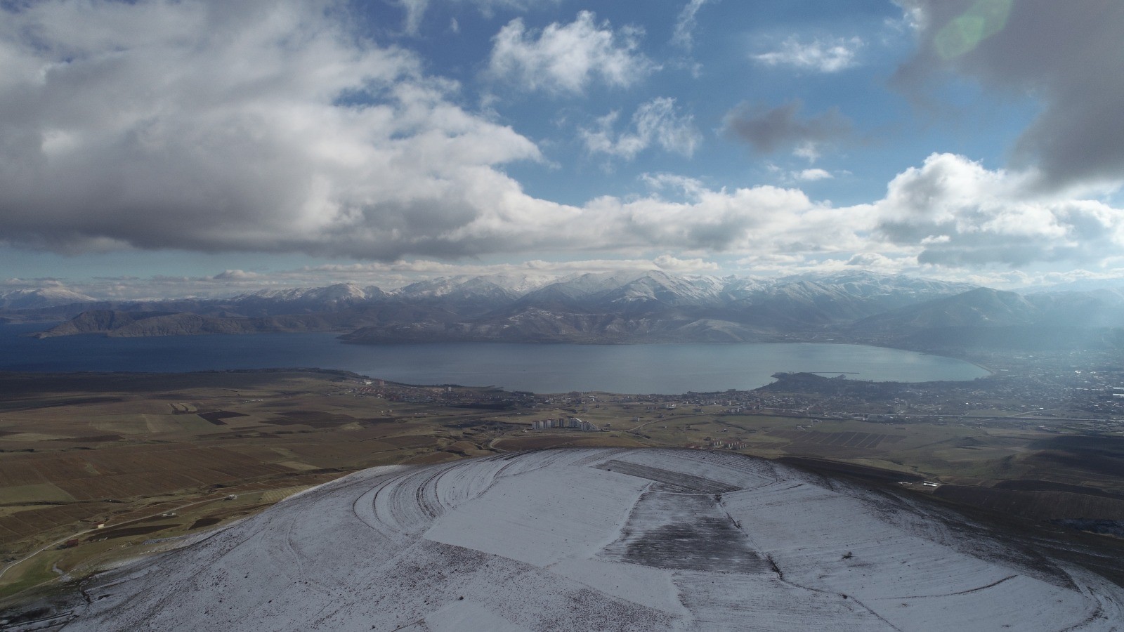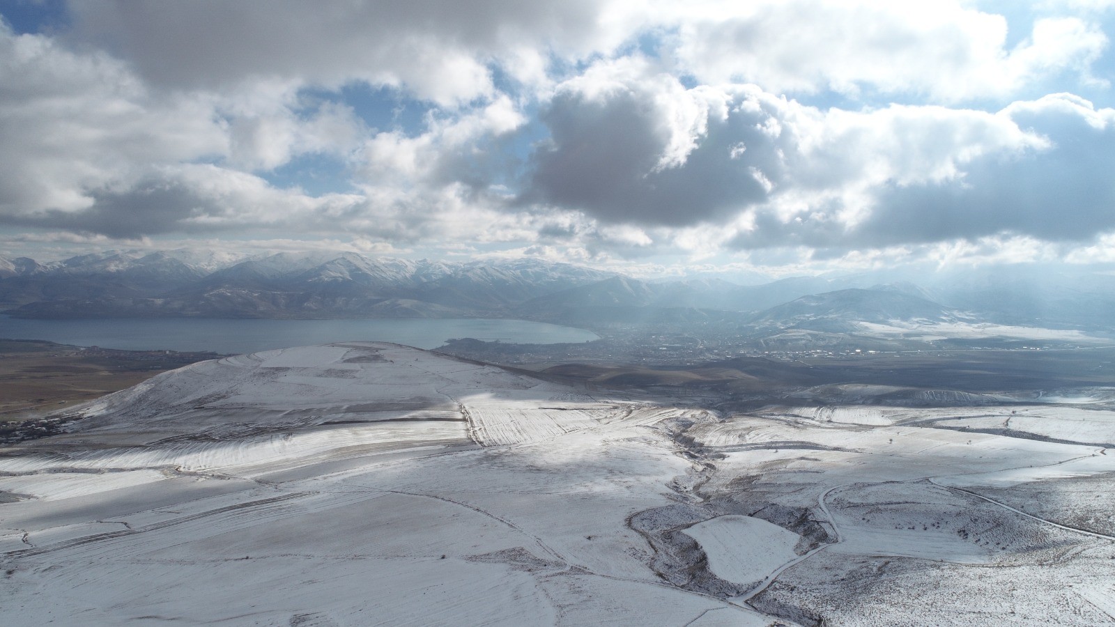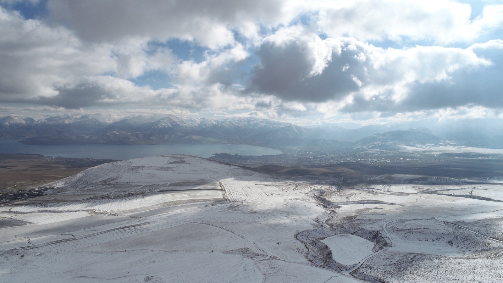 After snowfall in Tatvan district Bitlis city, high areas including Nemrut Mountain were covered in snow. The snow-capped Nemrut Mountain and its outskirts recorded by drone, which is one of the highest part of Bitlis city of Turkey. The integration of the trees with the snowy mountains and the walking of the sheep on the snow covered lands offered a unique view, while snow-capped peaks that offered postcard resembling visual feast to photographers.