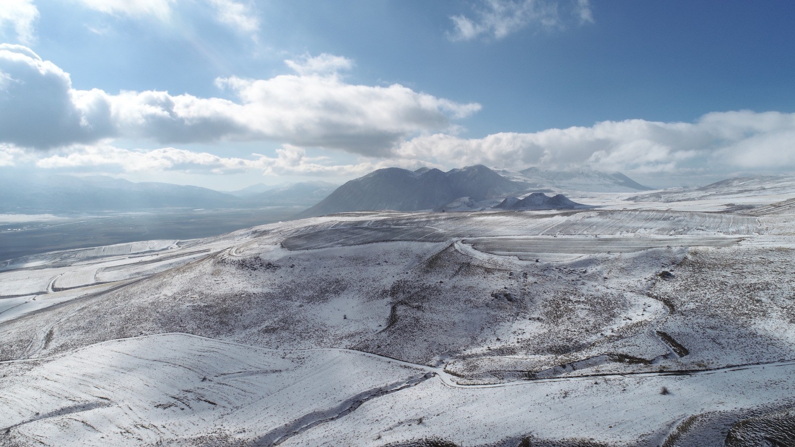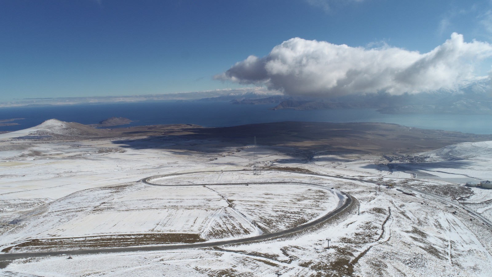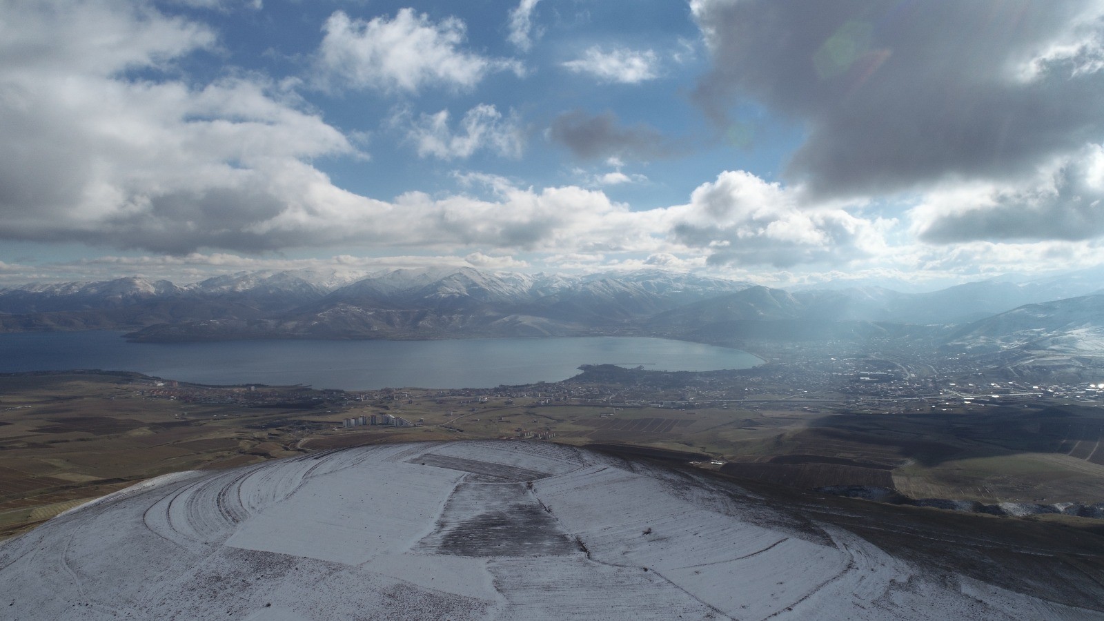 After snowfall in Tatvan district Bitlis city, high areas including Nemrut Mountain were covered in snow. The snow-capped Nemrut Mountain and its outskirts recorded by drone, which is one of the highest part of Bitlis city of Turkey. The integration of the trees with the snowy mountains and the walking of the sheep on the snow covered lands offered a unique view, while snow-capped peaks that offered postcard resembling visual feast to photographers.