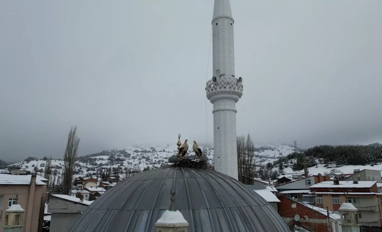 Unseasonal April snowfall has blanketed a resilient family of storks in the Başçiftlik district of Tokat province, Türkiye. These iconic birds, traditionally celebrated as the harbingers of spring, had just recently returned to the area to nest after a 25-year absence. Drone footage captured a picturesque scene of the storks refusing to abandon their newly built home atop a local mosque dome, even as the freezing weather persisted. Locals have been captivated by the birds’ dedication, viewing the striking images as a rare and beautiful collision of winter and spring.