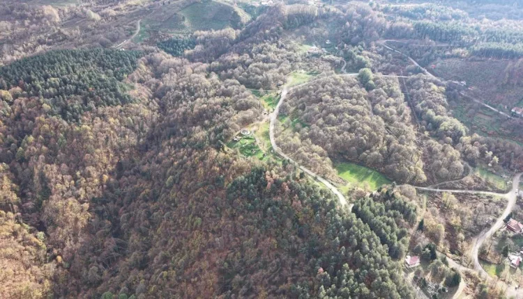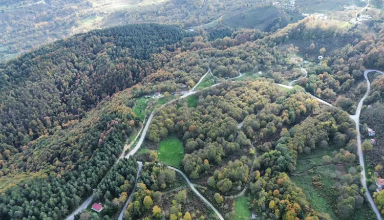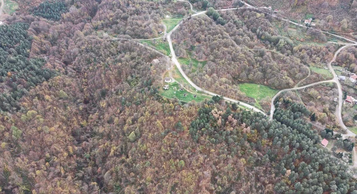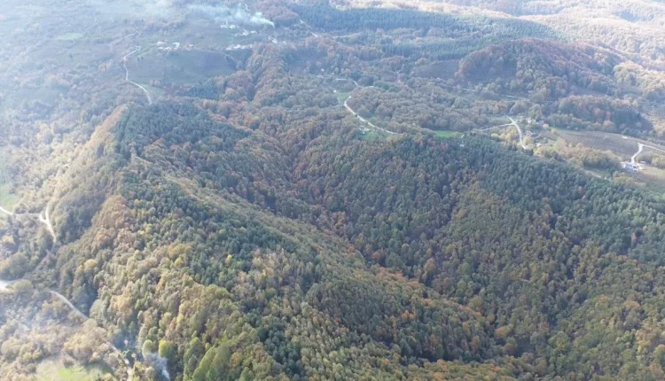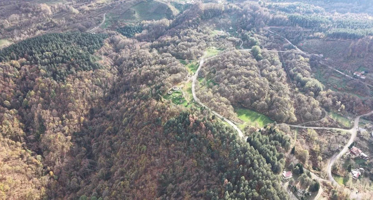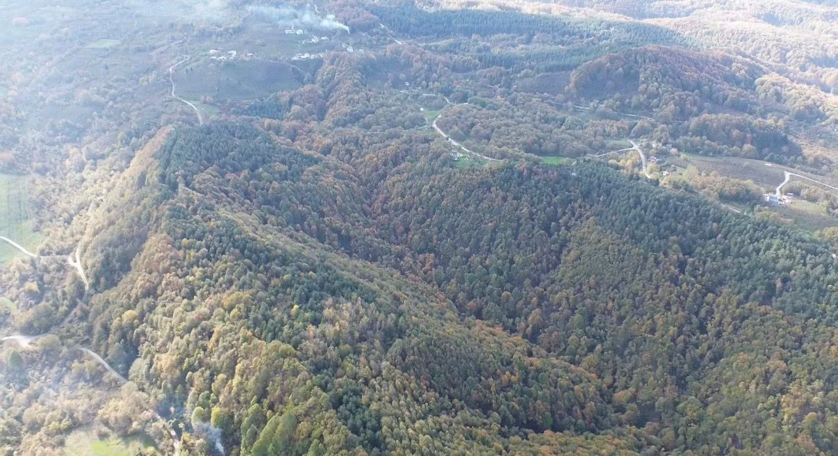 Düzce in northwestern Türkiye is displaying vibrant autumn colors, captured from the air as the season nears its end. Forested areas at higher elevations have turned shades of yellow, red, and brown, creating striking landscapes.