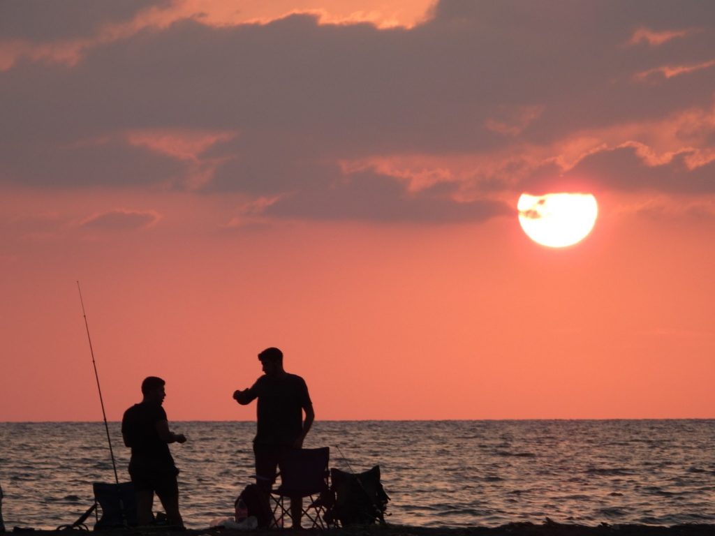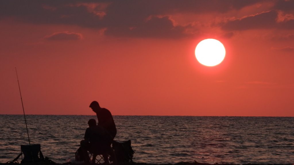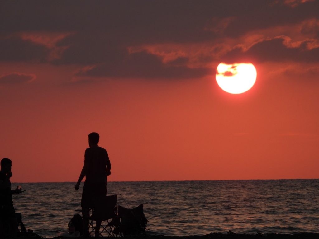 The sunset in the Samandağ district of Hatay, one of the provinces most affected by the Kahramanmaraş earthquake in Türkiye, enchanted the audience with its beauty. The combination of the red of the sun and the sea created postcard-like images.