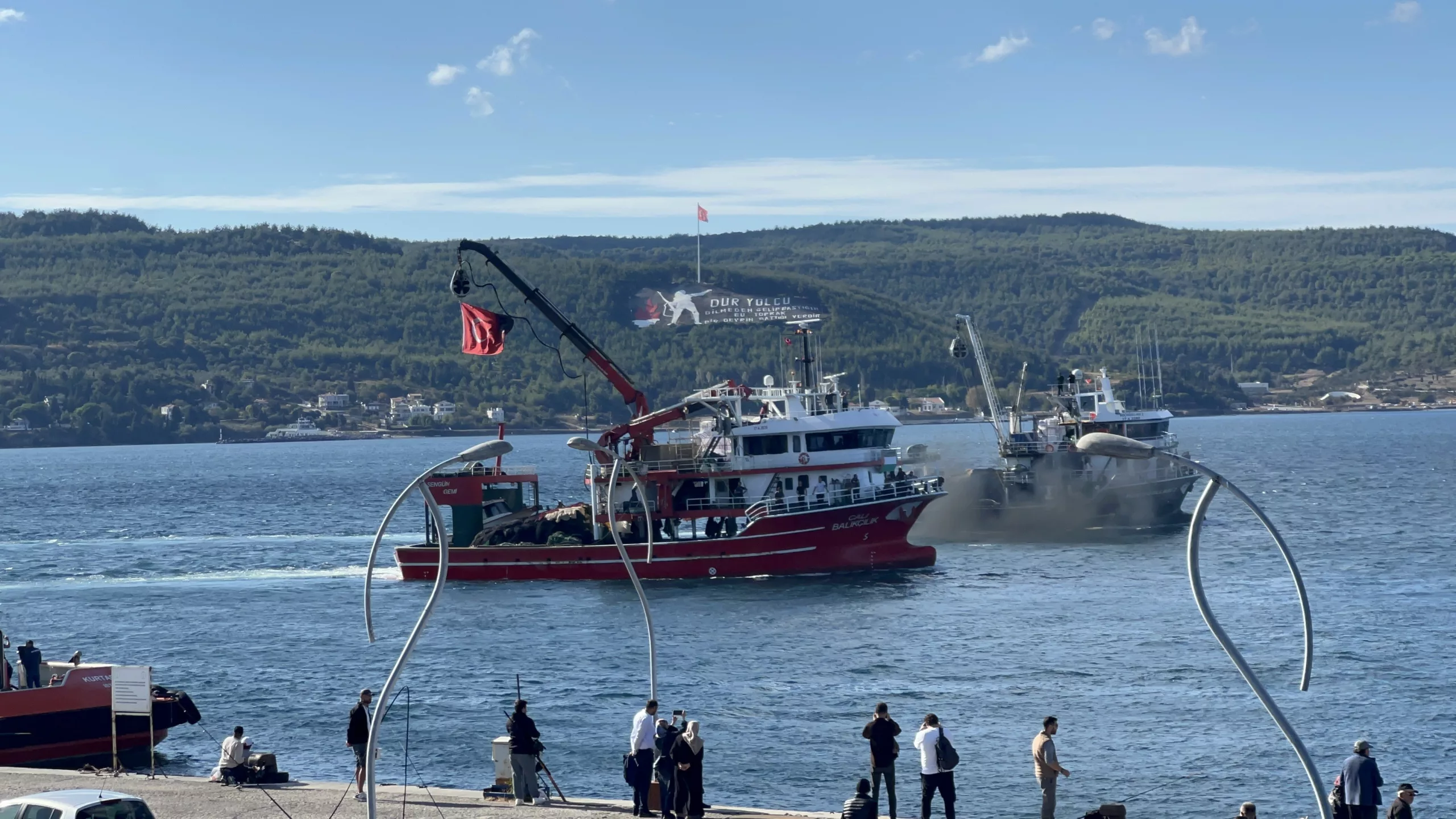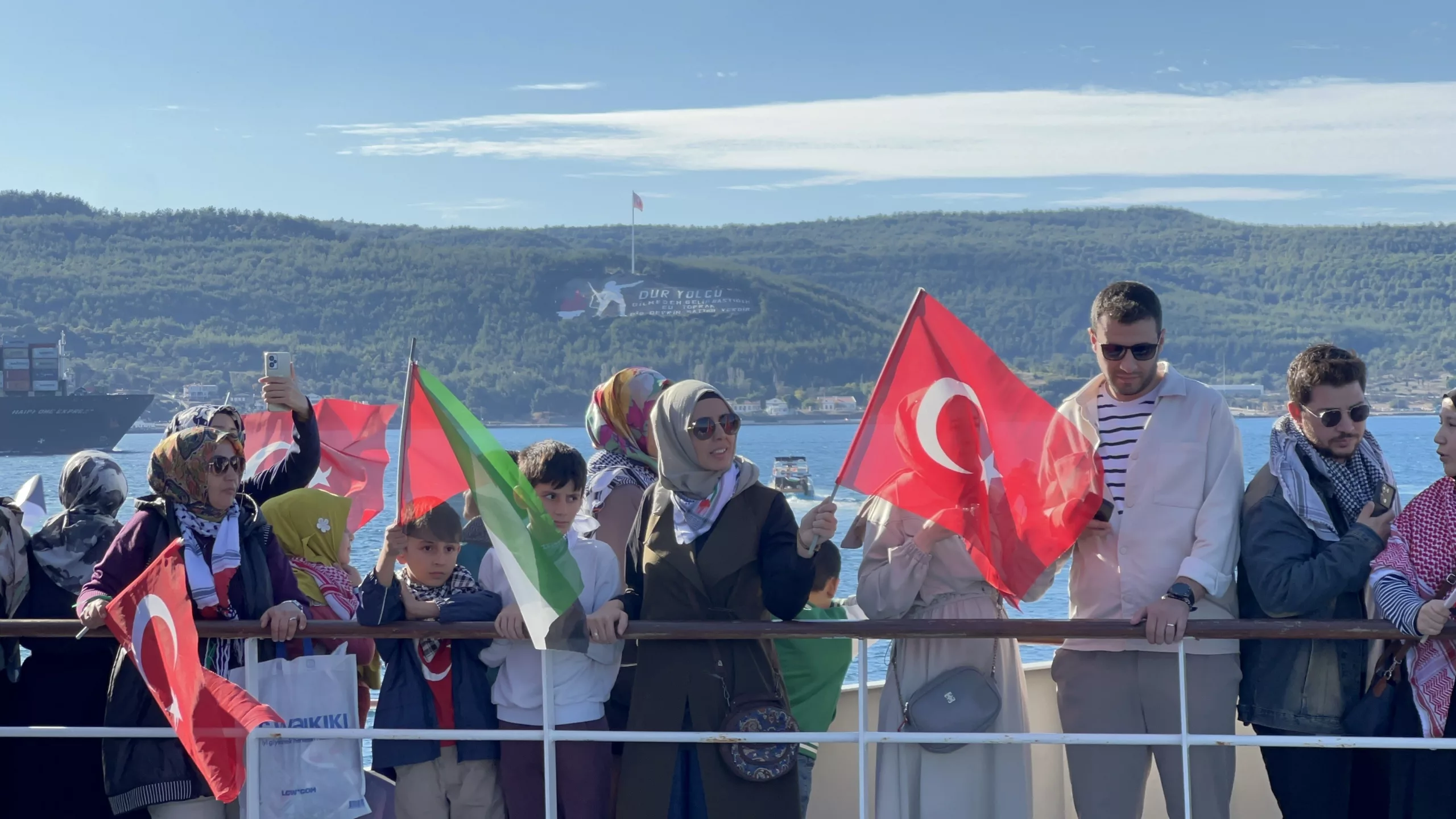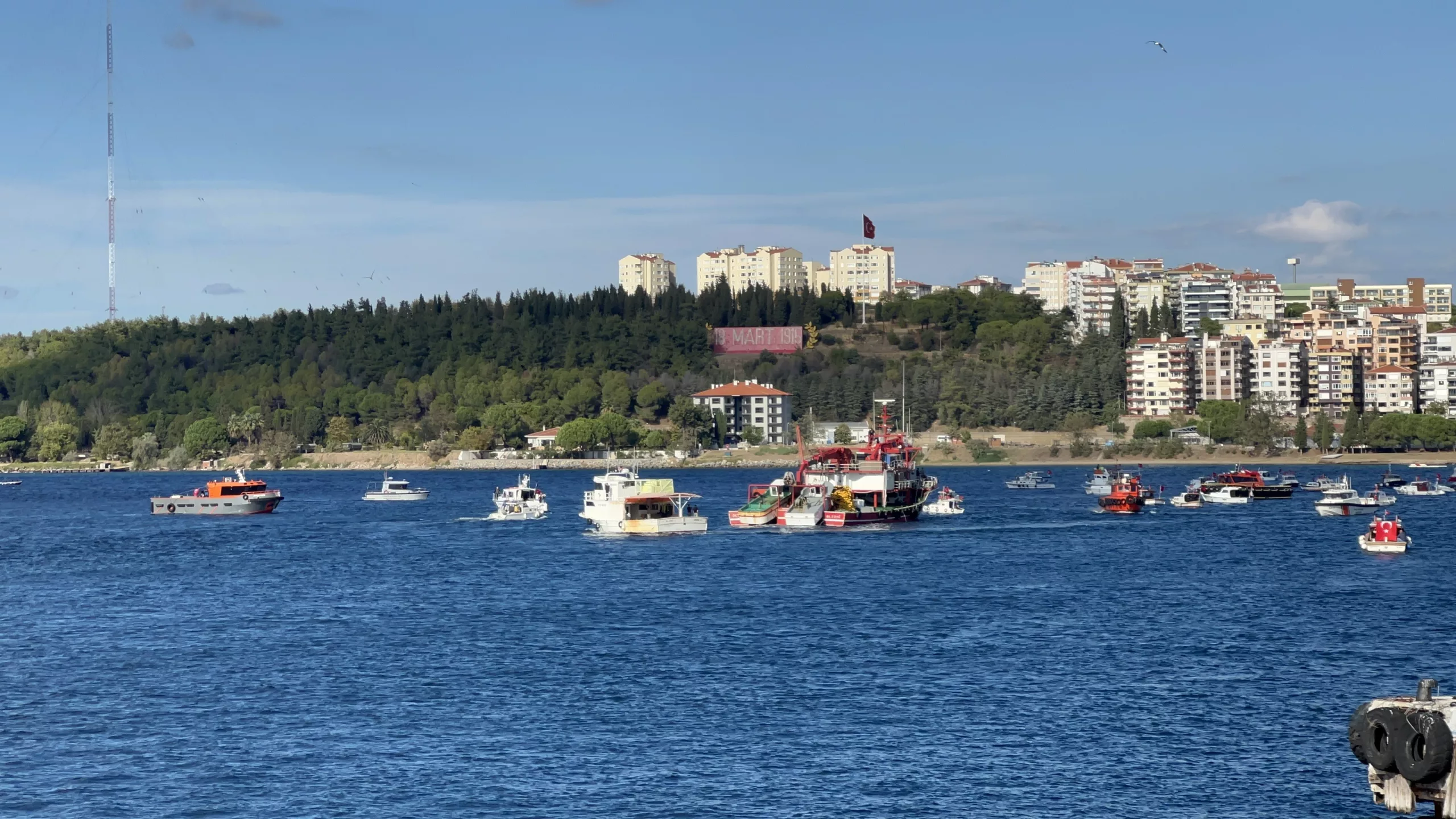 Boats decorated with Turkish and Palestinian flags toured the strait in Çanakkale to show support for the Global Sumud Flotilla, which was attacked by Israel while carrying humanitarian aid to Gaza.