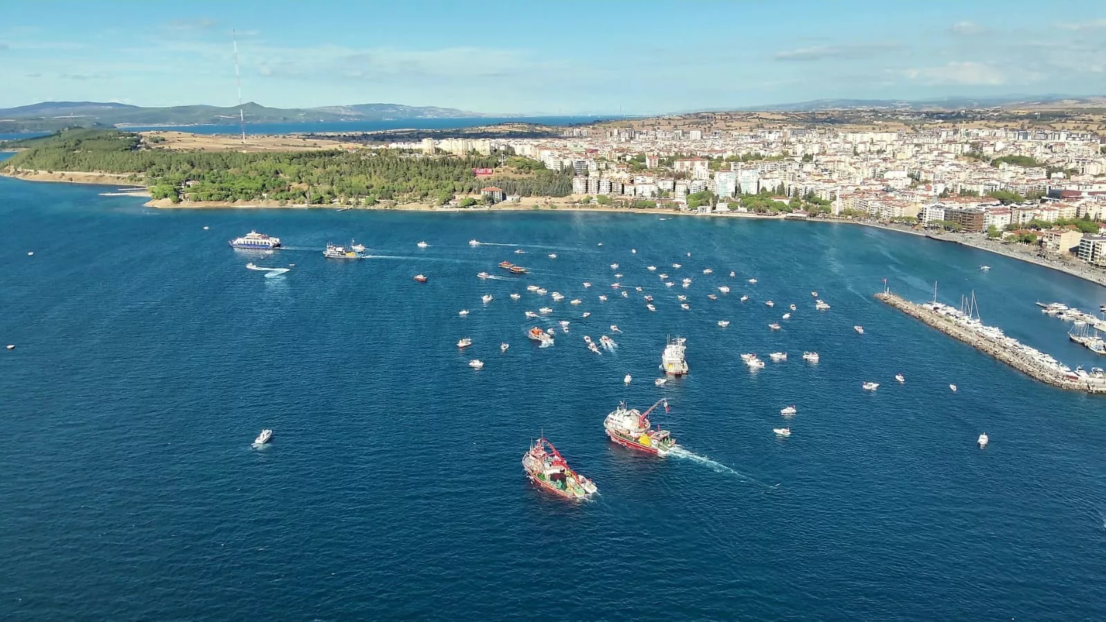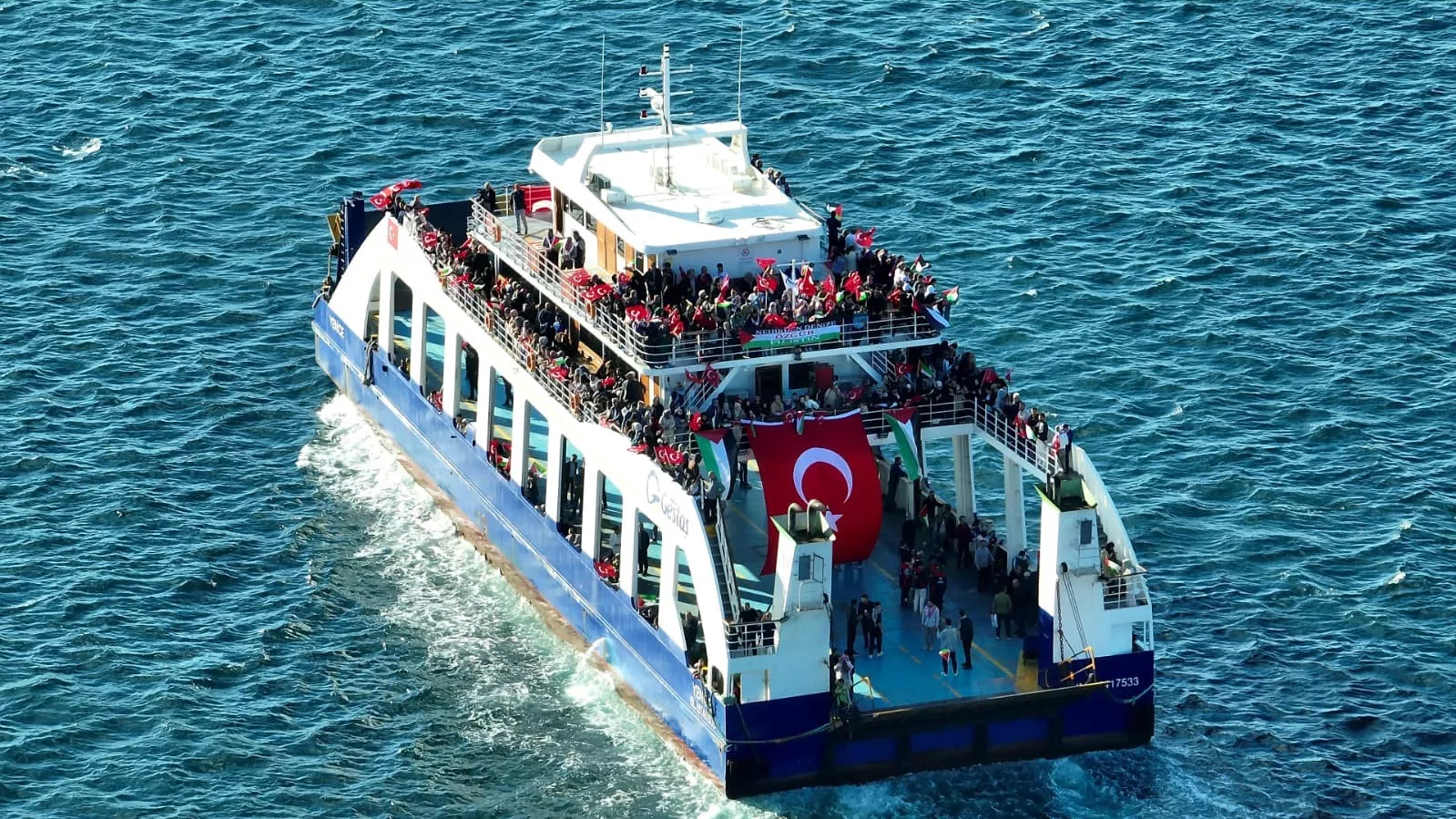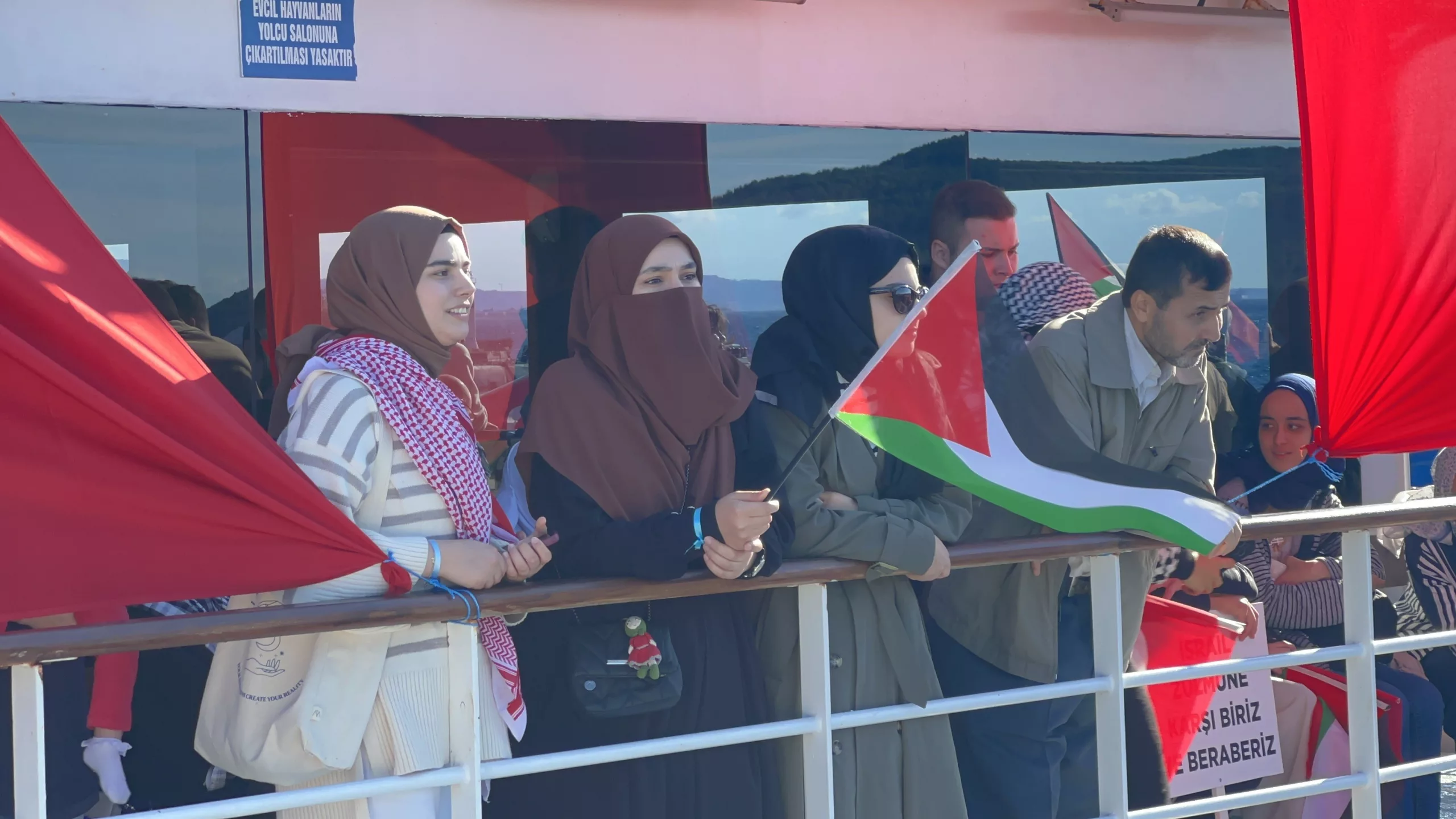 Boats decorated with Turkish and Palestinian flags toured the strait in Çanakkale to show support for the Global Sumud Flotilla, which was attacked by Israel while carrying humanitarian aid to Gaza.