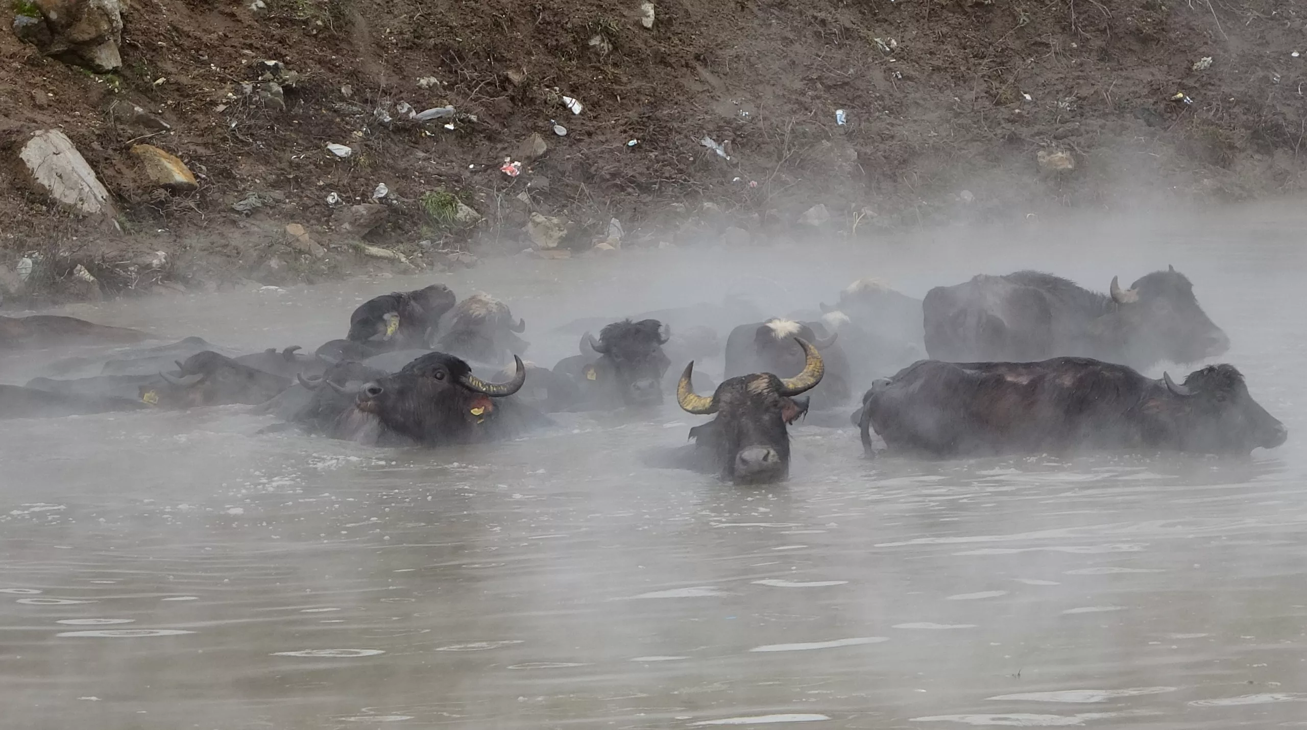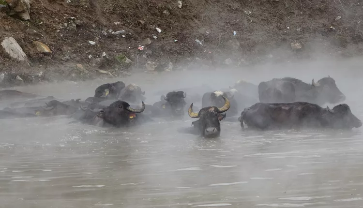 Buffaloes Bathe in Hot Springs in Bitlis, Türkiye
