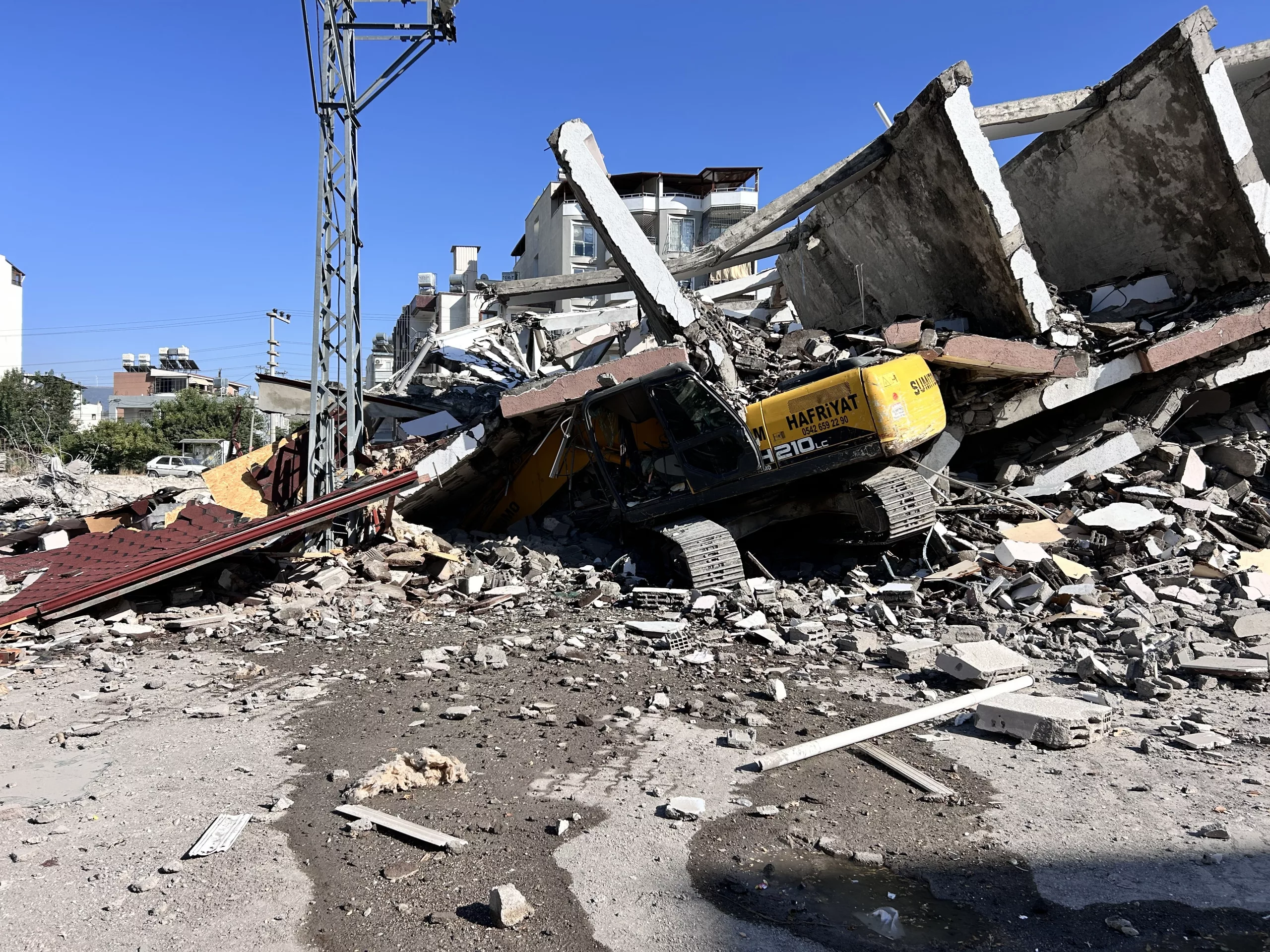 During a controlled demolition in Hatay, Türkiye, a 7-storey earthquake-damaged building collapsed onto a construction vehicle. The operator was injured and taken to hospital but is not in life-threatening condition.