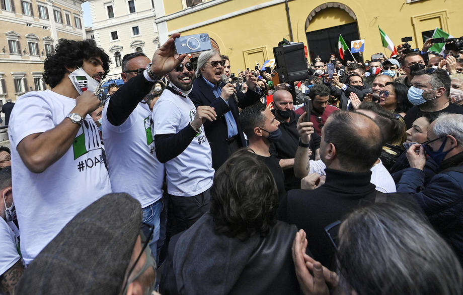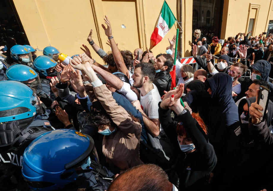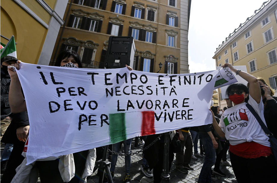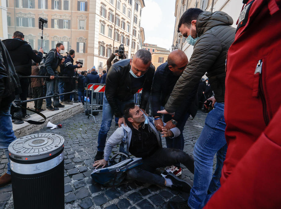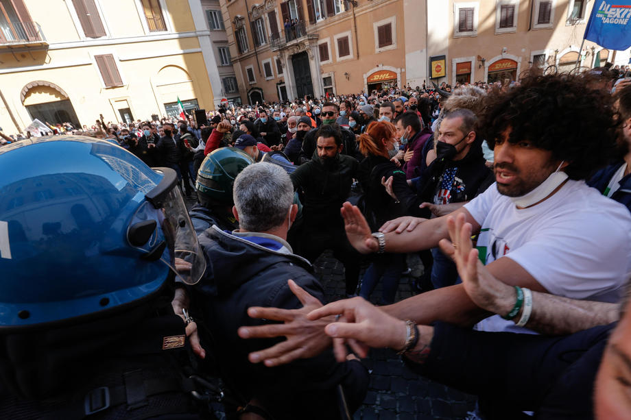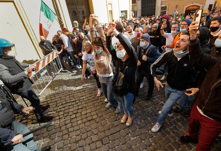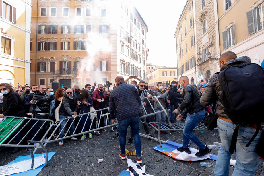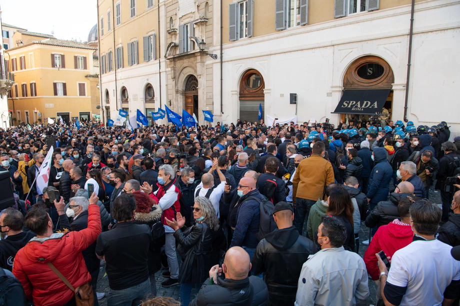 Traders, shopkeepers and Restaurant owners protested against coronavirus restrictions in Rome, Italy. Protesters clashed with police and demanded reopening of their shops and restaurants. They chanted “Work” and “Freedom” slogans during the demonstration outside Parliament. One officer was injured and 7 protesters have been arrested.