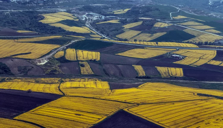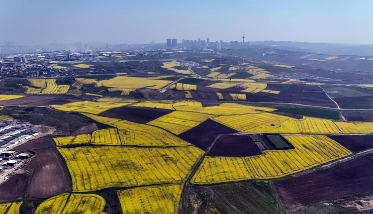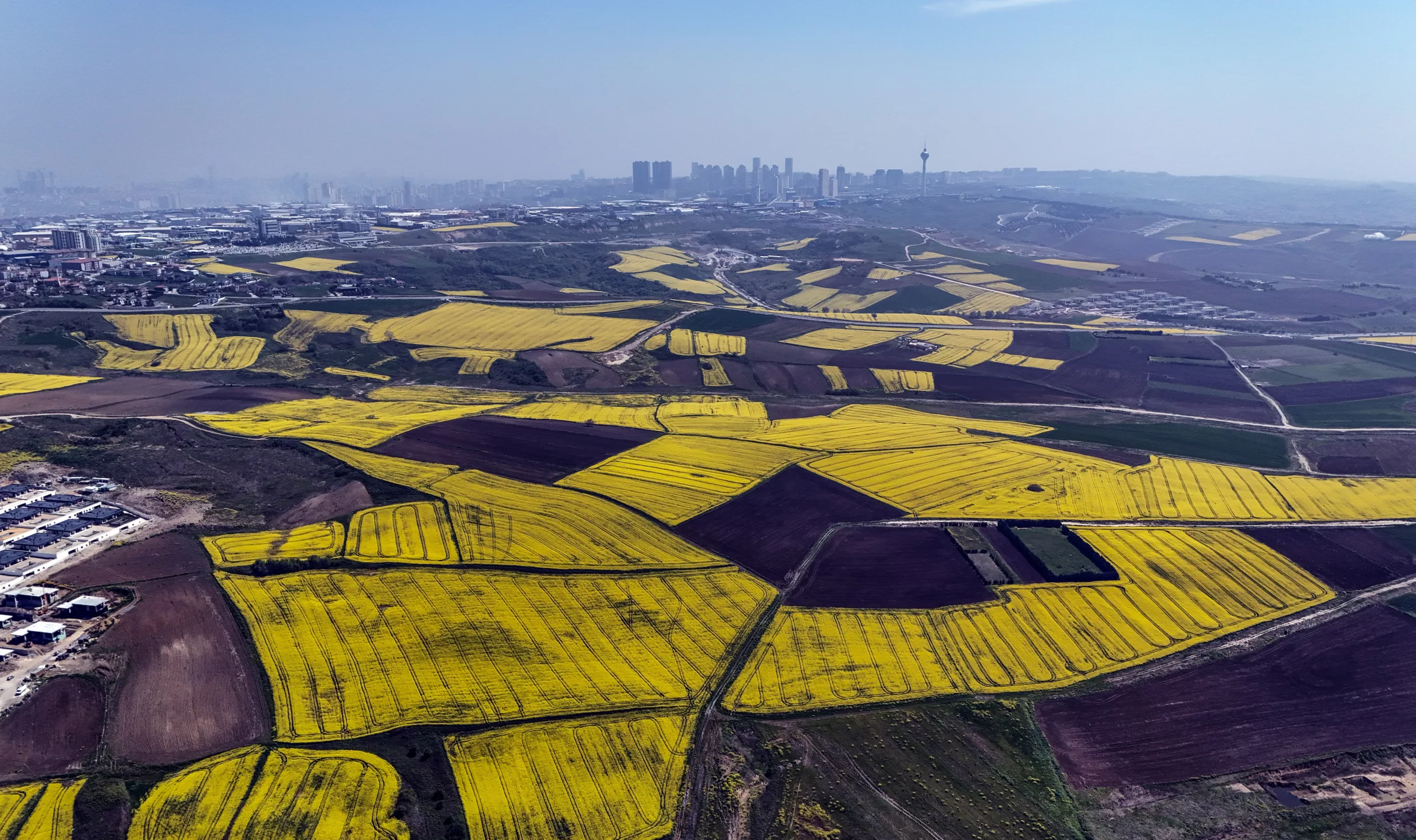 Canola fields in Istanbul’s Büyükçekmece district have burst into bloom, creating a striking yellow landscape around Lake Büyükçekmece. Aerial images show vast fields of the oilseed plant, known for its use in vegetable oil, contrasting with the city’s urban sprawl. The blooming season has drawn locals to stop and photograph the vibrant scene, offering a rare blend of agriculture and nature in the metropolis.