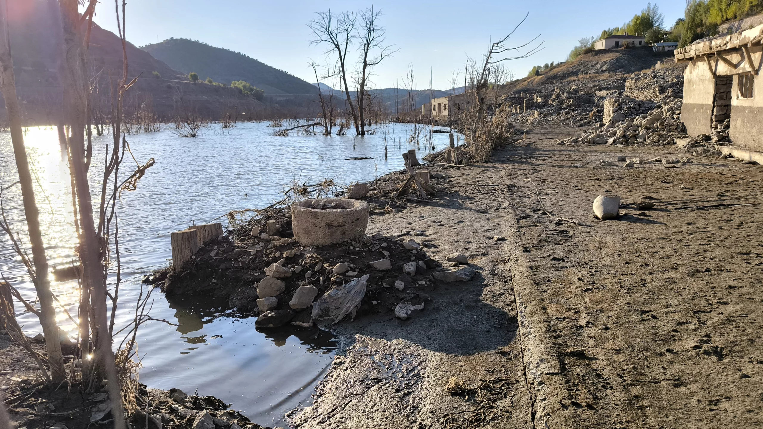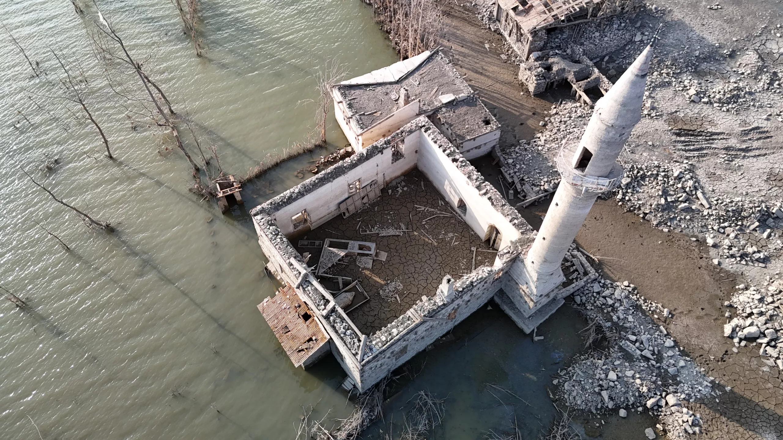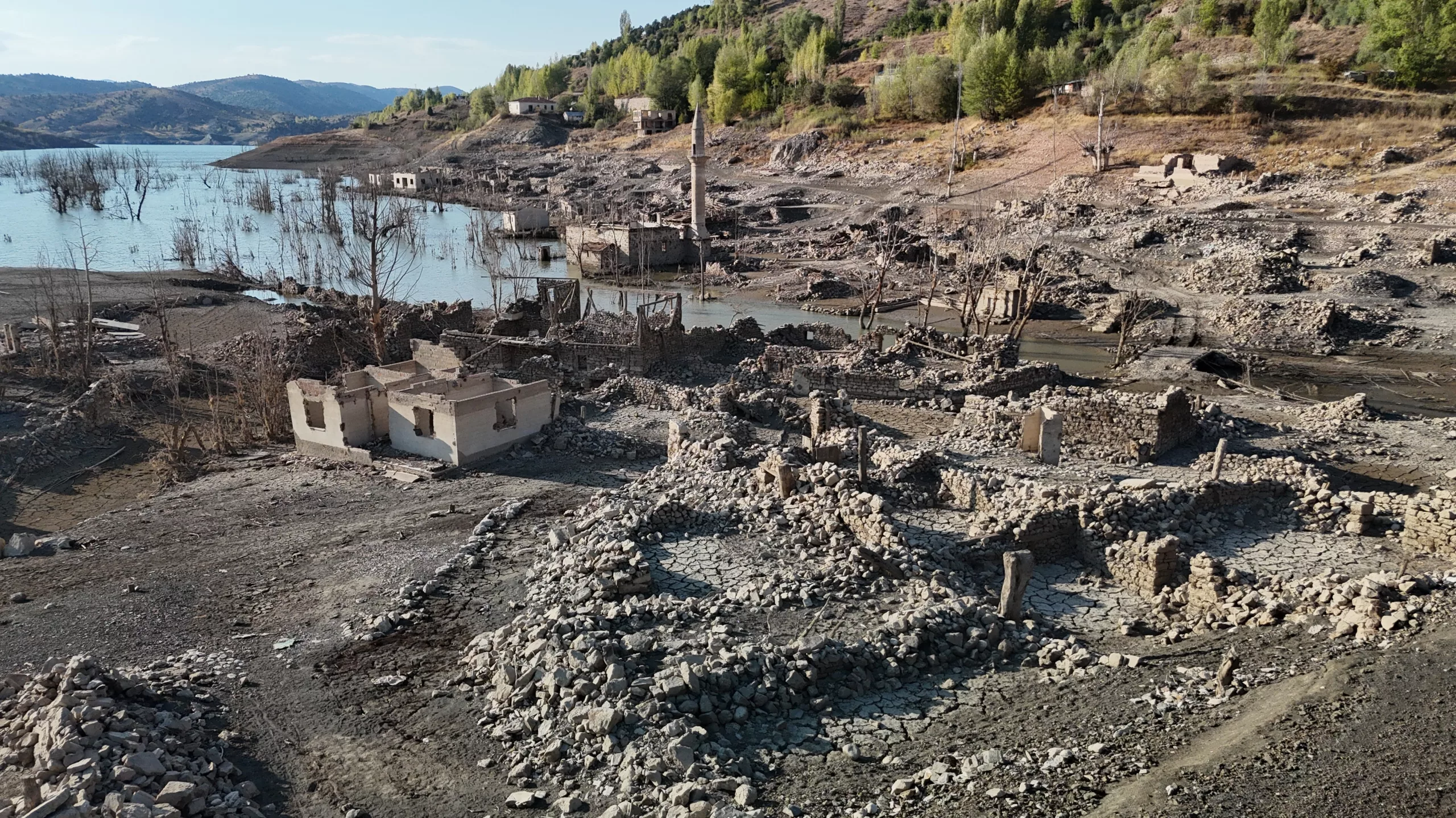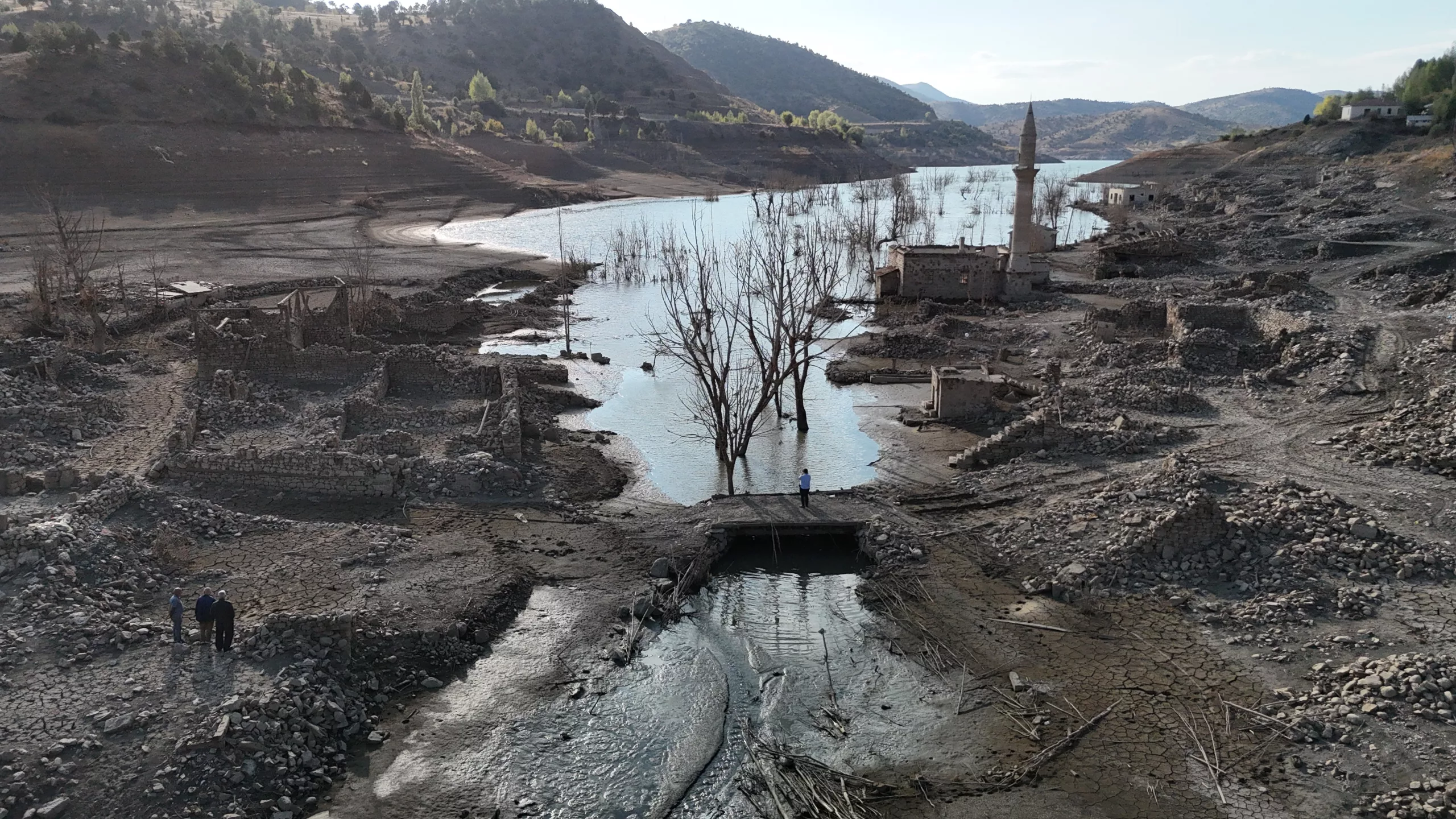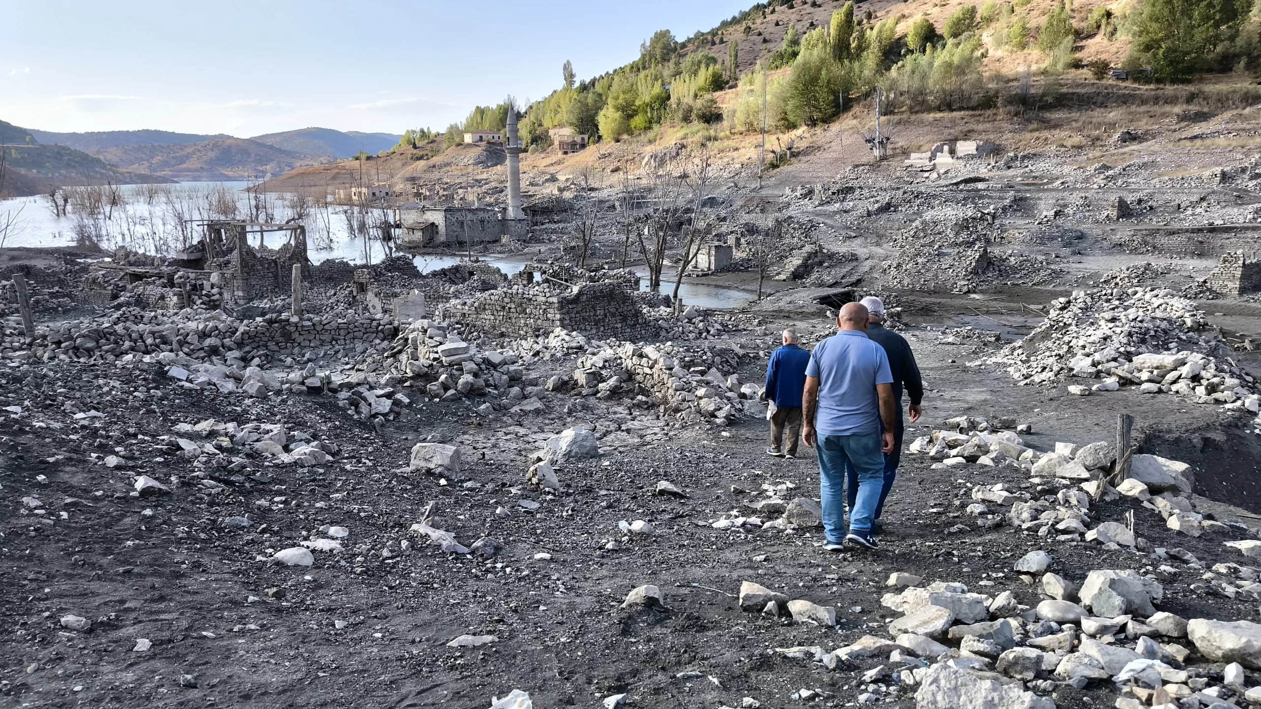 A century-old village that was submerged under water with the construction of the Pusat-Özen Dam in the Hafik district of Sivas has resurfaced due to drought and that its water was partially transfered to another dam. Locals who previously lived in the village and came back to visit had emotional moments when they saw the ruins of their homes that emerged years later.