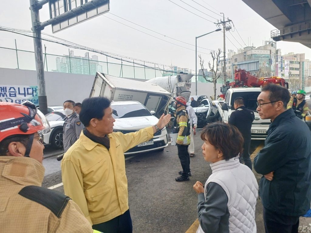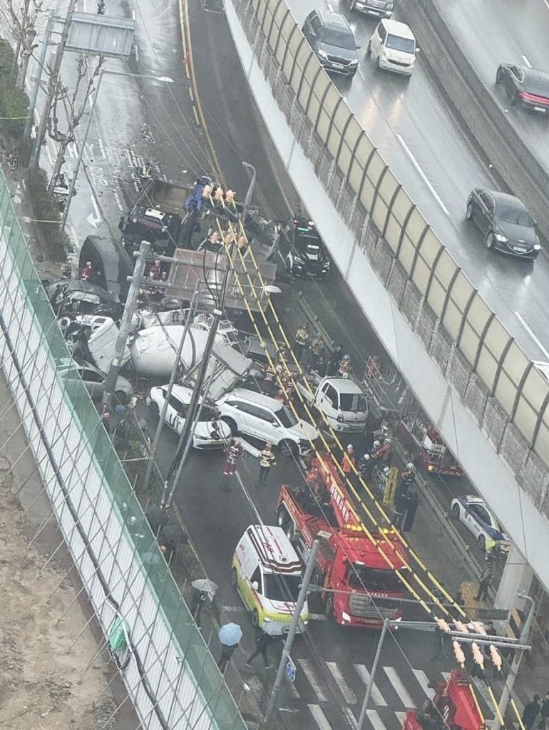 A chain-reaction car accident occurred after a concrete mixer hit truck crashed into another truck from behind at 09.21 local time in the Seongbuk district of Seoul, the capital of South Korea. Thirteen vehicles, including a motorcycle, involved in the accident and 17 people were injured, reported the police. Two people were in serious condition, said officials.