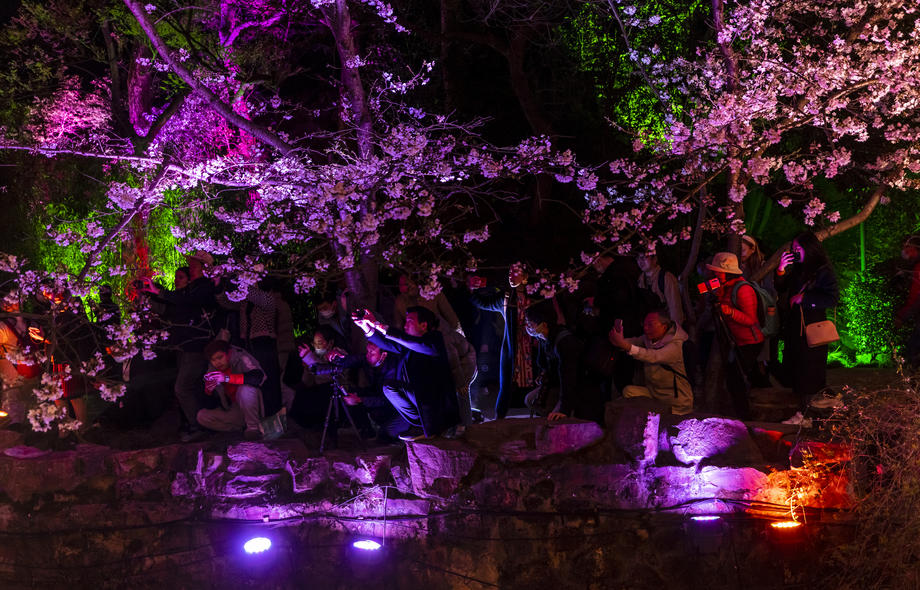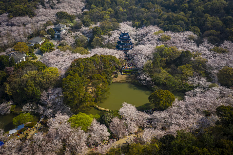 Cherry Blossom Festival kicked off on mid March and will continue to mid-April. Thousands of cherry blossom trees bloomed in in the Turtle Head Park in Wuxi city, Jiangsu Province, China. People take pictures of cherry blossoms in the Park. There are more than 30,000 cherry blossom trees, covering an area of 200,000 square meters in the Turtle Head Park. More than 110,000 people visited the park during the last weekend.