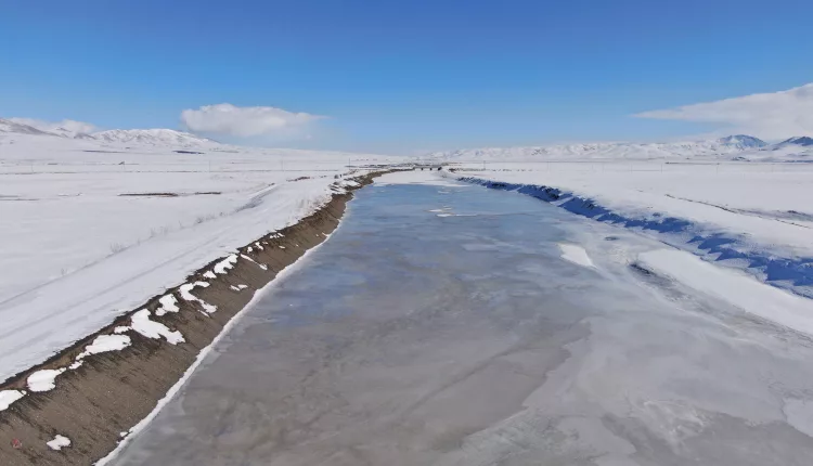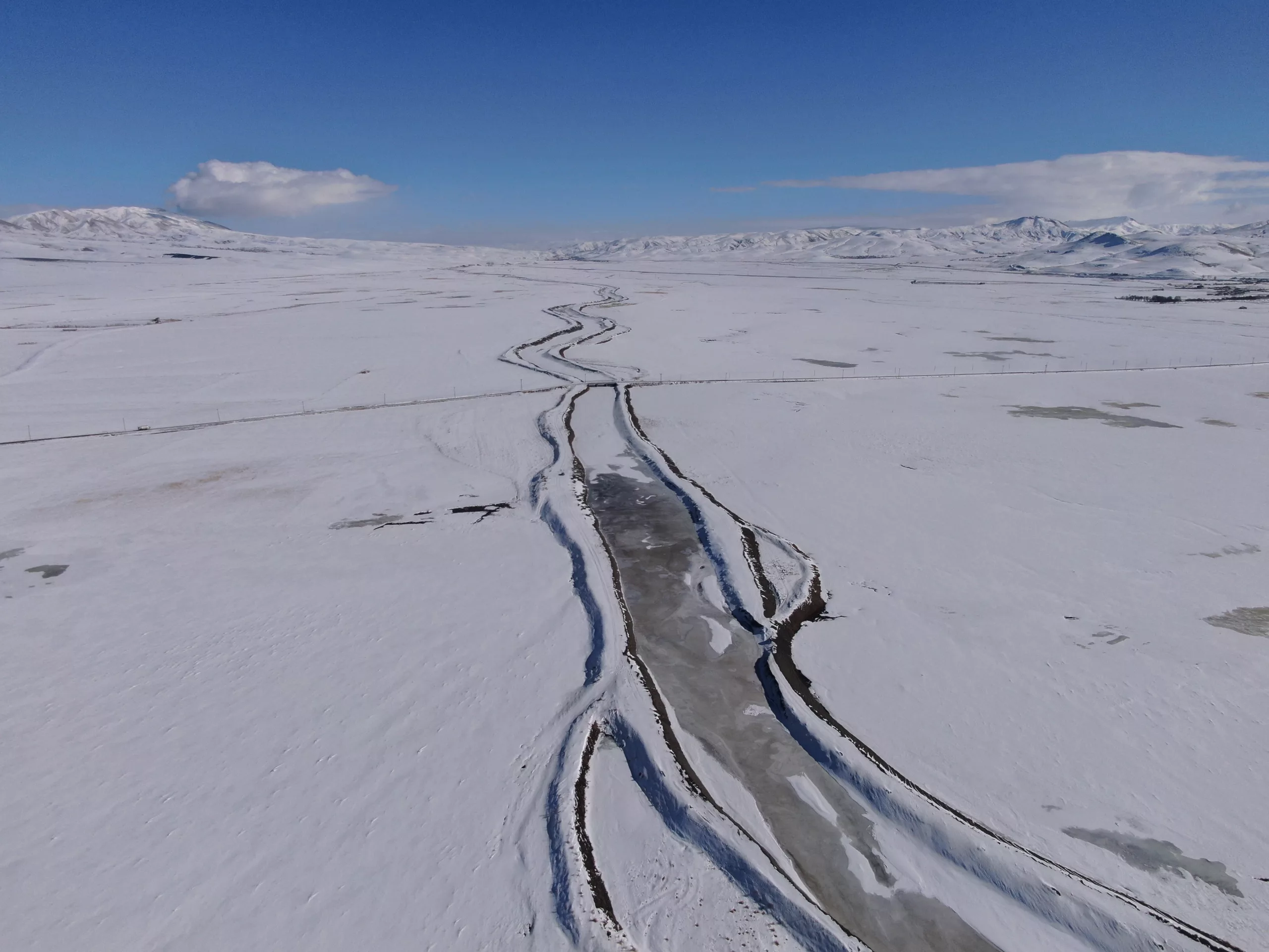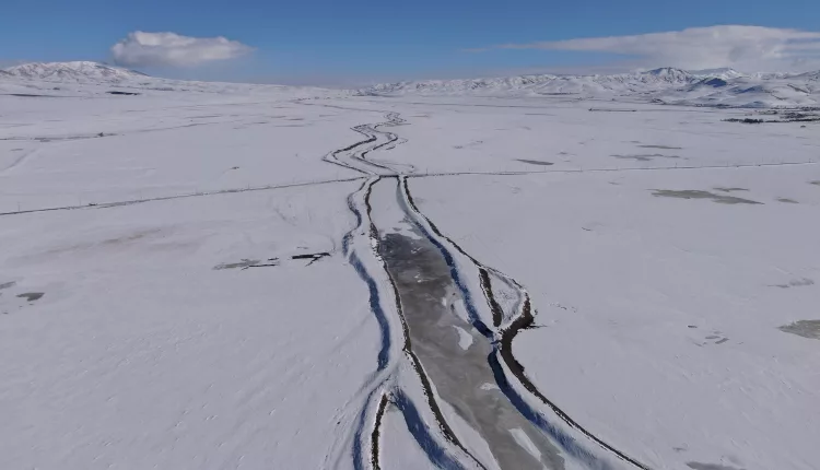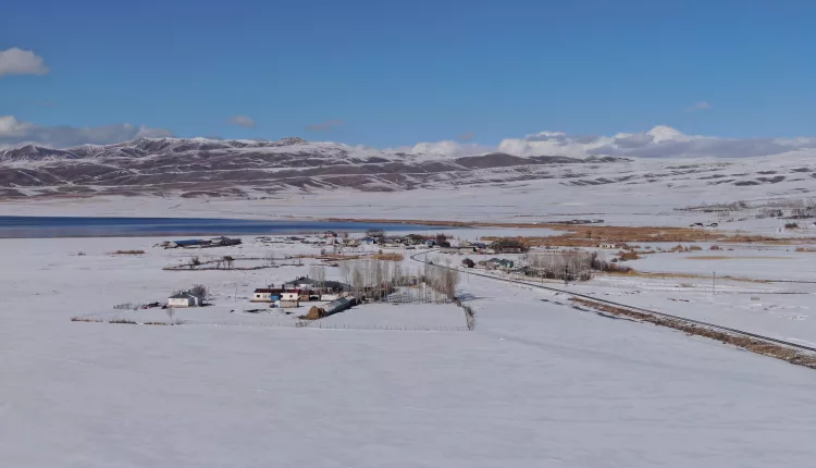 Snow-covered mountains and frozen Lake Erçek, engulfed by fog, have created unique landscapes in the İpekyolu district of Van province in Türkiye.