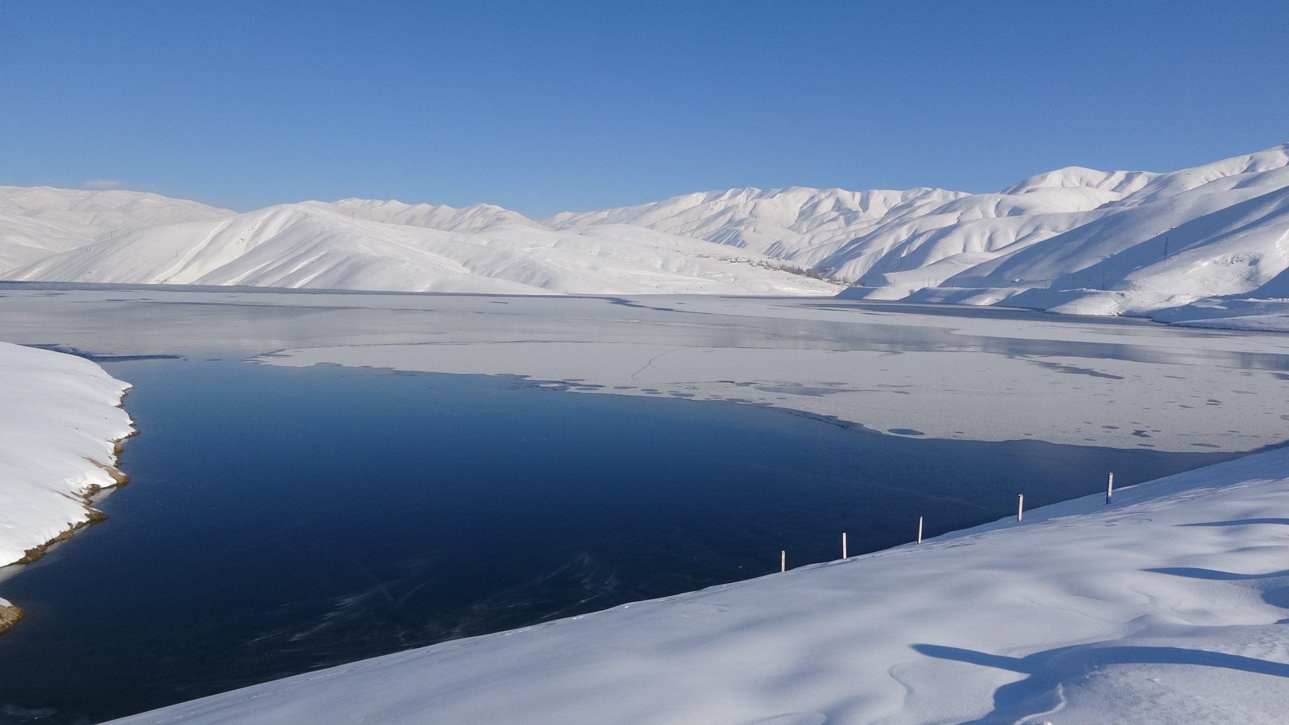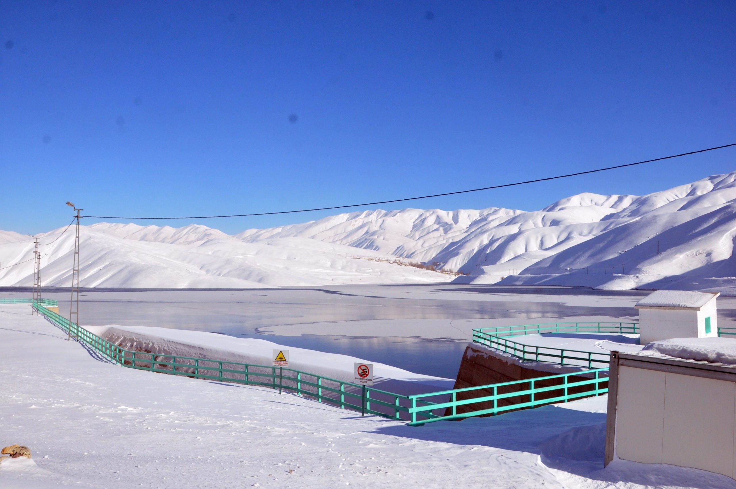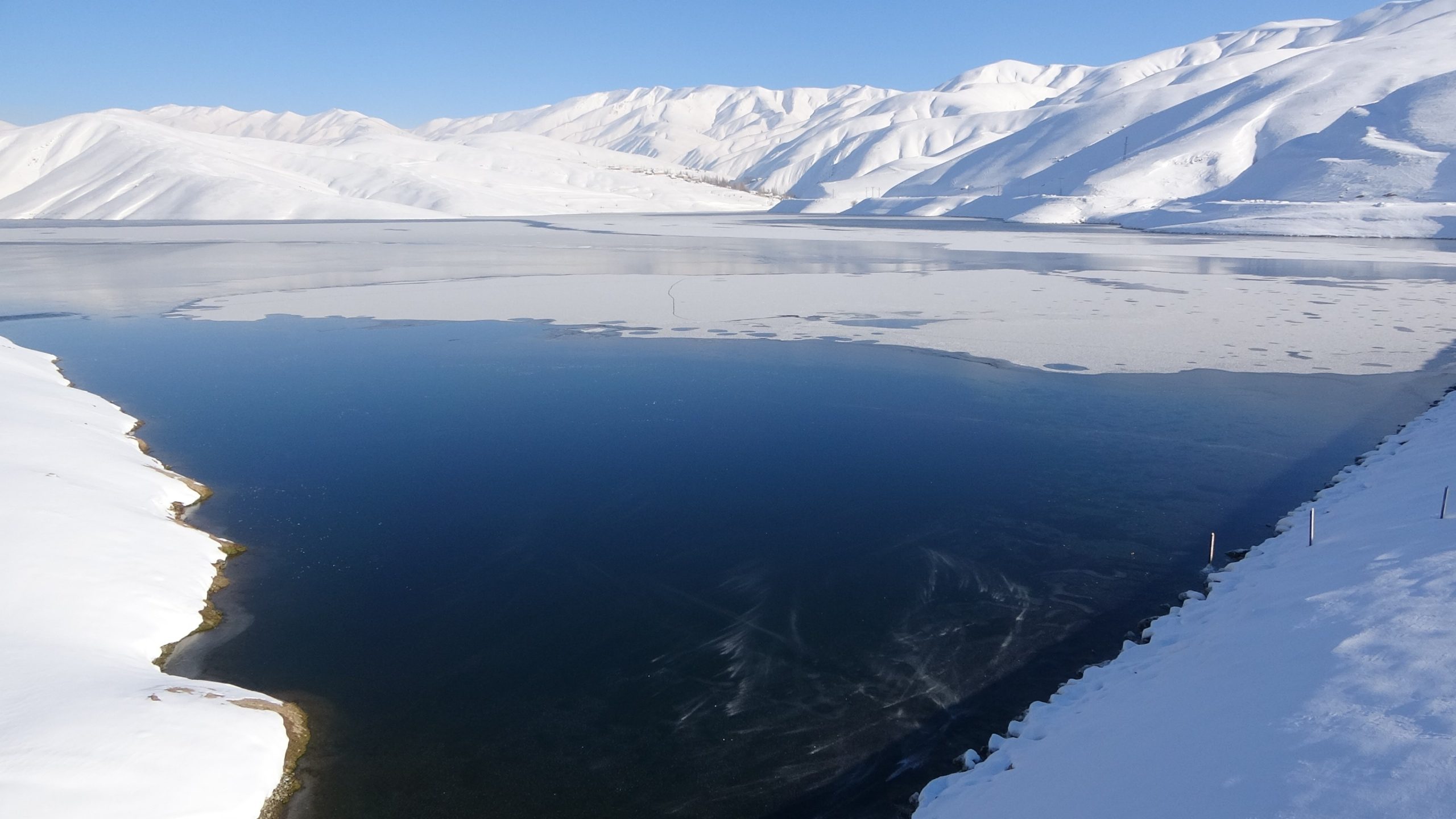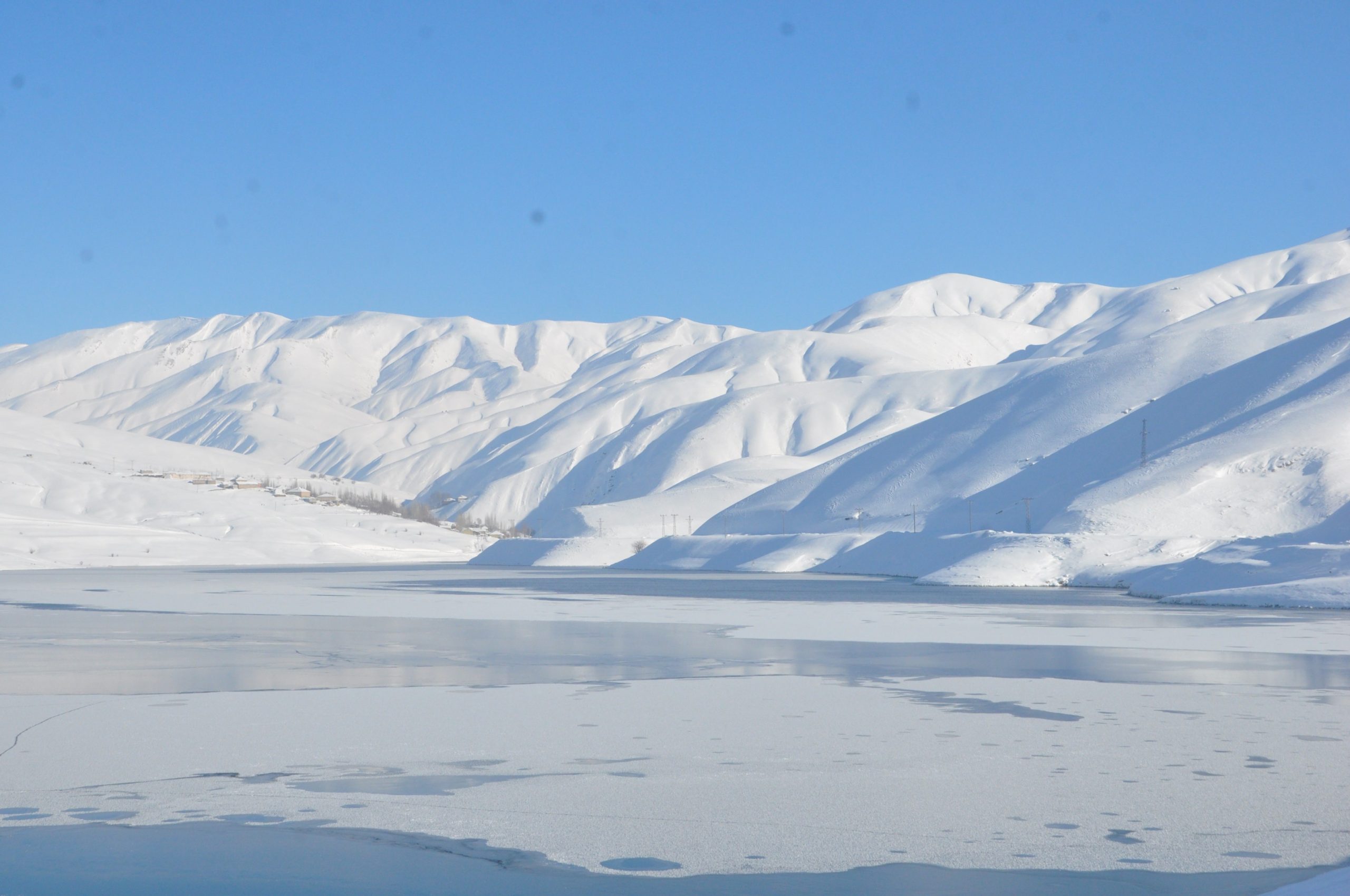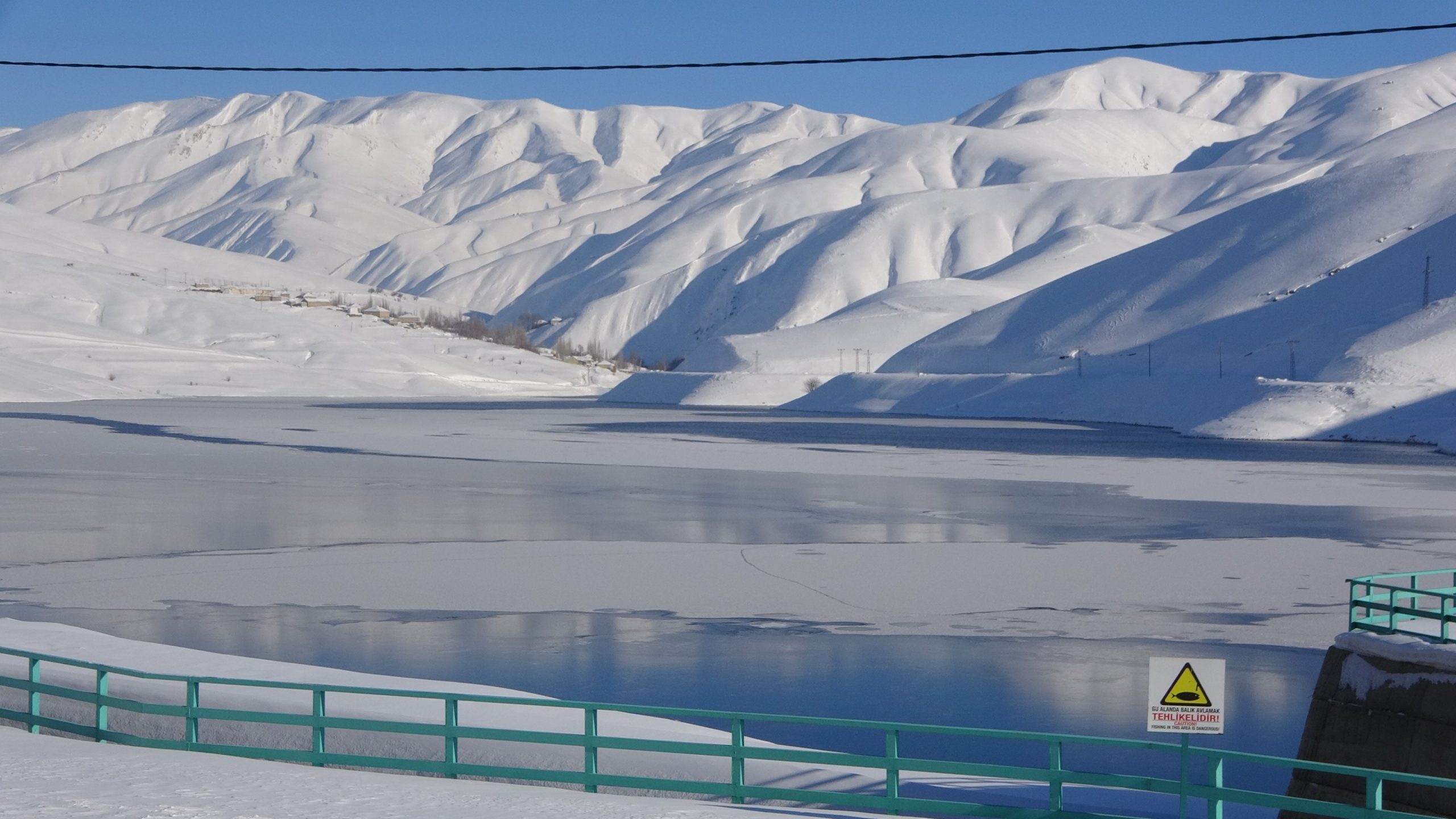 Severe cold after heavy snowfall in Yüksekova district in Turkey’s city of Hakkari, affects life negatively. The surface of the Dilimli Dam, where 9 kilometers from the district center and on an area of approximately 2.5 kilometers, was frozen after the air temperature dropped 30 degree Celsius below zero. In addition to that, the Dilimli Dam and the snowy mountains surrounding it created a wonderful landscape.