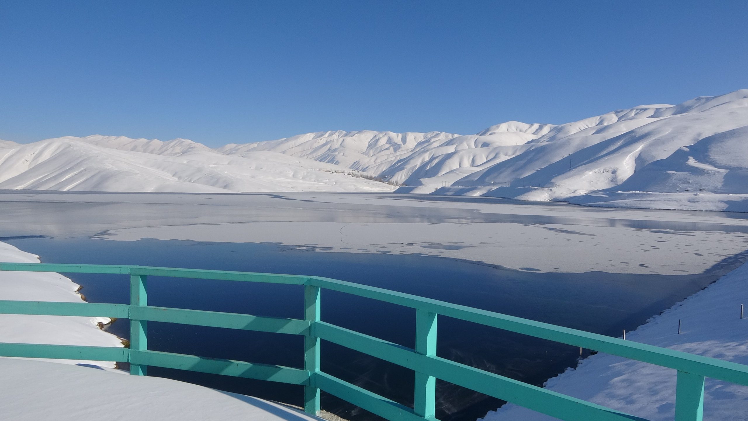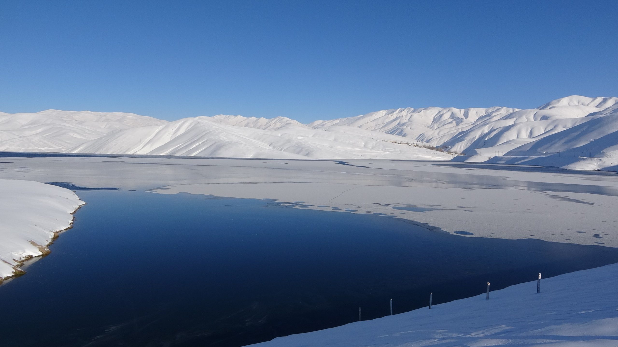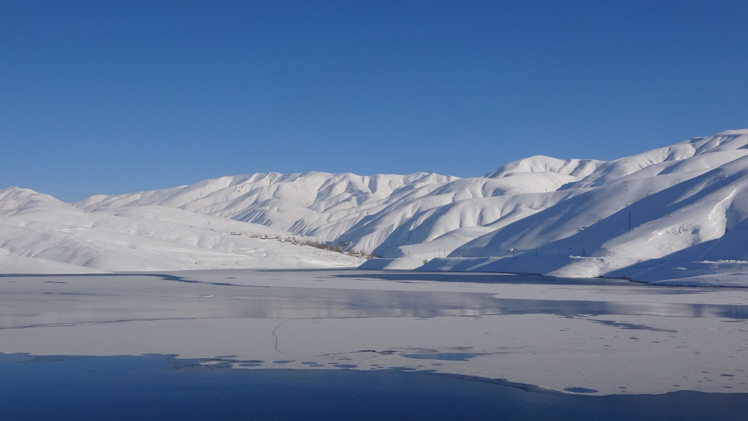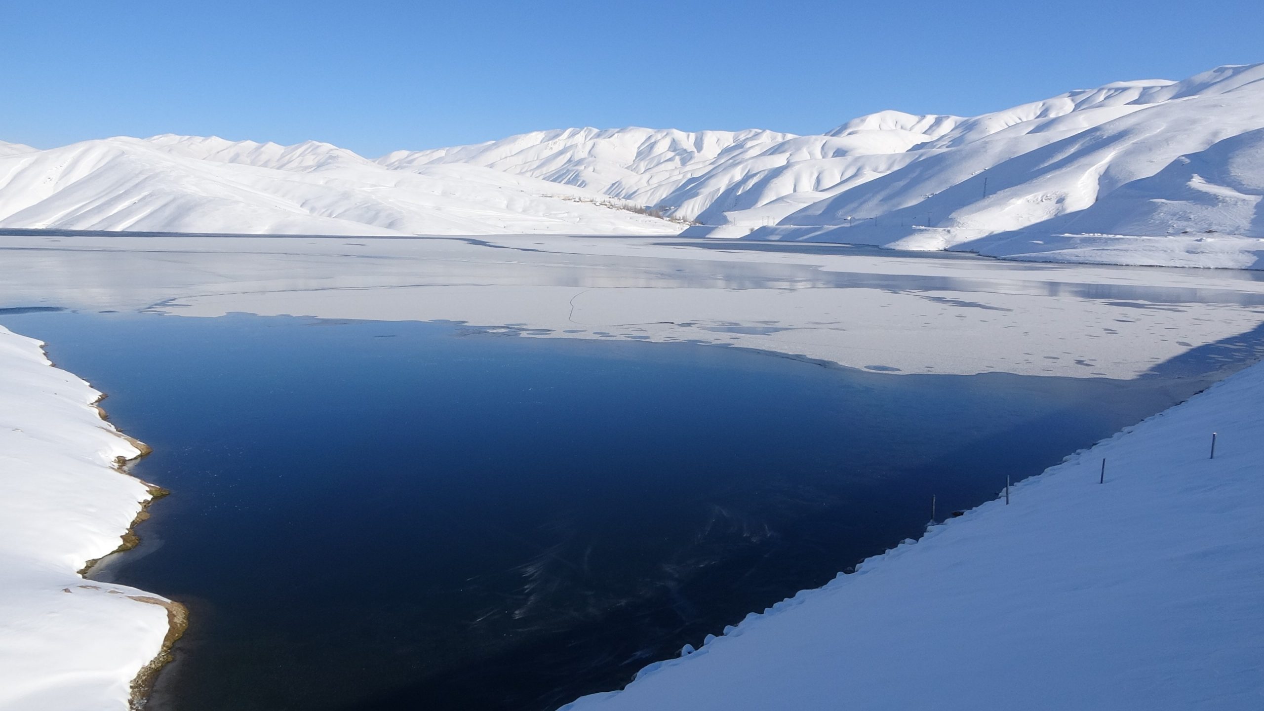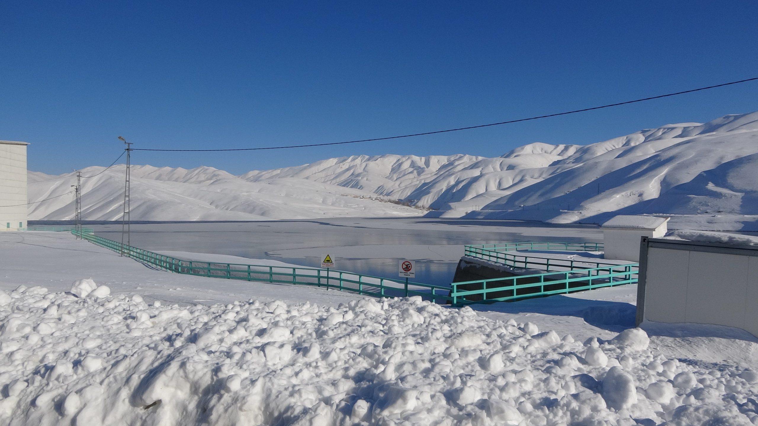 Severe cold after heavy snowfall in Yüksekova district in Turkey’s city of Hakkari, affects life negatively. The surface of the Dilimli Dam, where 9 kilometers from the district center and on an area of approximately 2.5 kilometers, was frozen after the air temperature dropped 30 degree Celsius below zero. In addition to that, the Dilimli Dam and the snowy mountains surrounding it created a wonderful landscape.