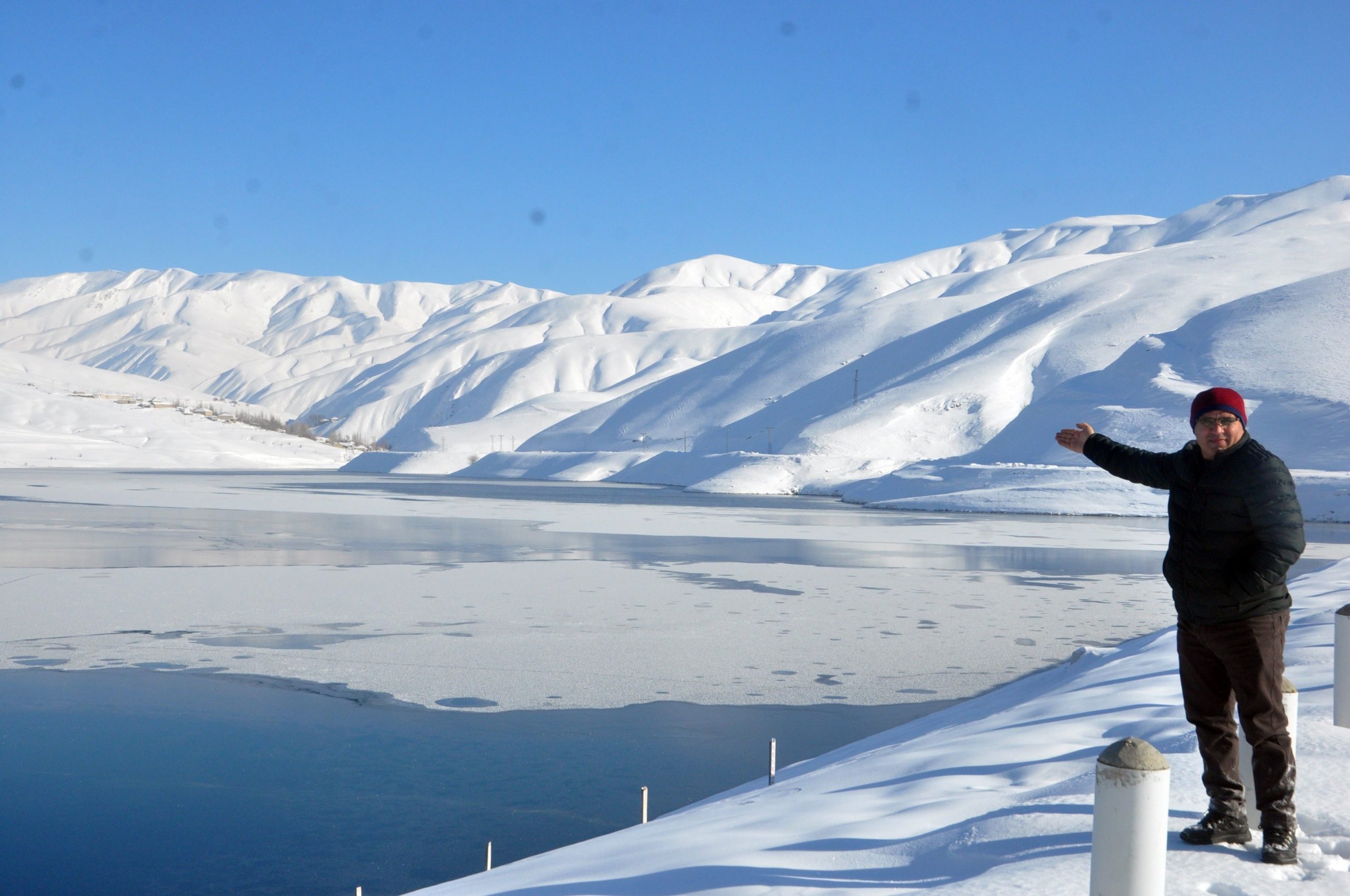 “We have seen that the dam has been frozen for 2 years. The winter season in Yüksekova is very harsh. The air temperature exceeds 30 degrees below zero. The cold lasts for about 4 months. We took pictures while we were crossing the road so we wouldn’t miss this opportunity, but our hands froze while we took it,” Mehmet Durna said while photographing the snowy landscape of the frozen dam.