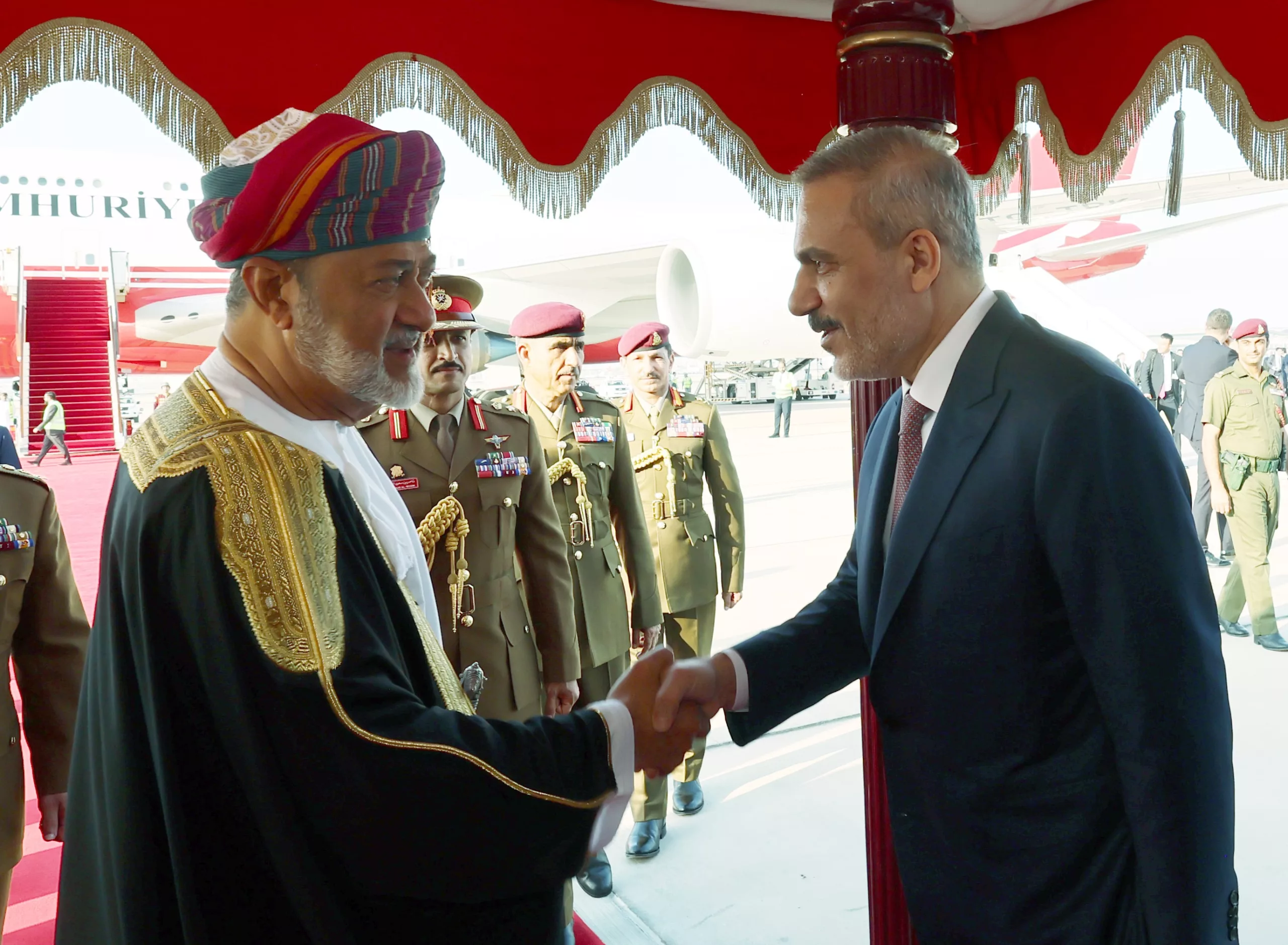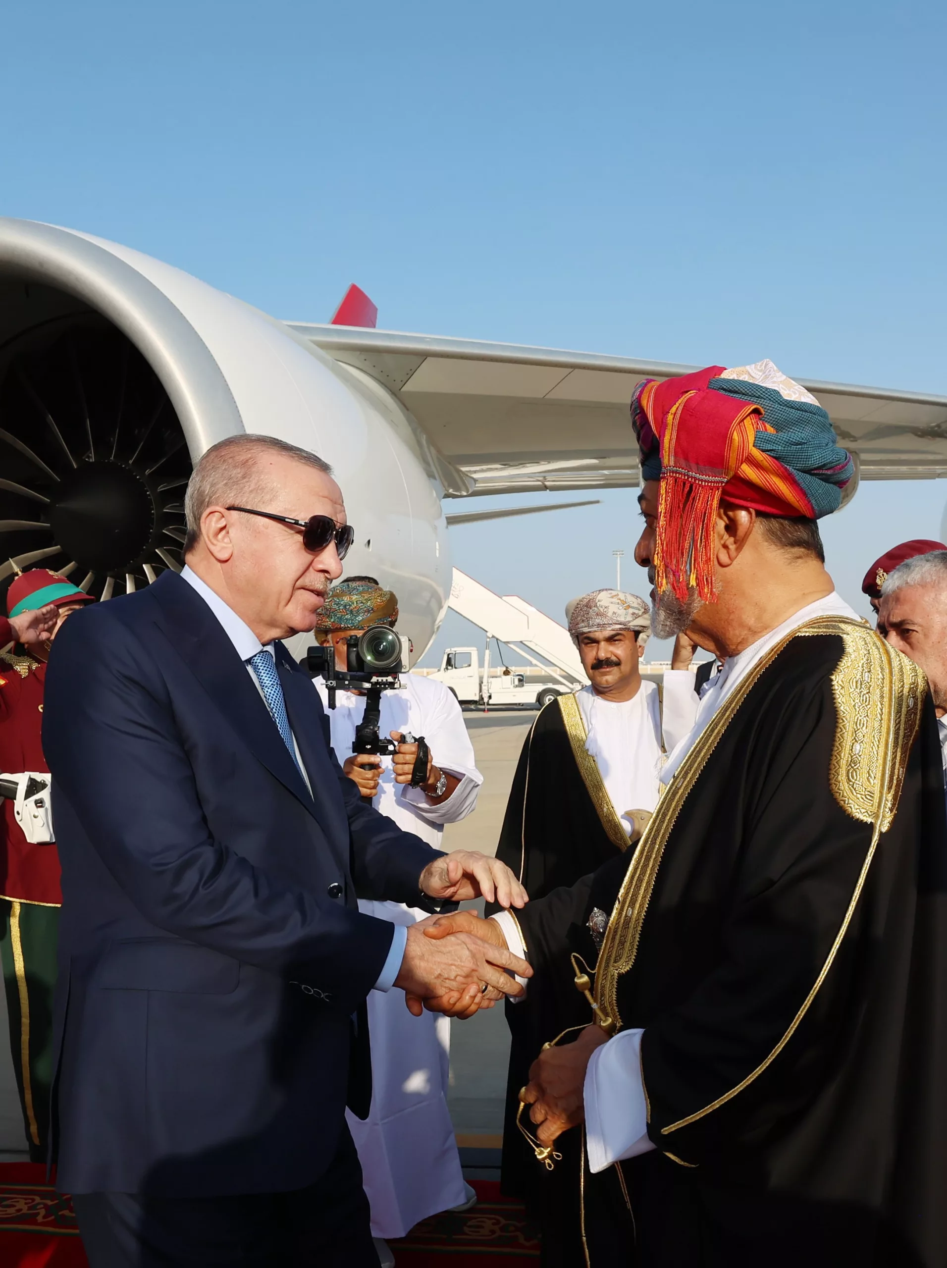Omani Air Force F-16s escorted Erdoğan’s plane as it landed. He was welcomed by Sultan Haitham bin Tariq and is scheduled to attend a state dinner before returning to Türkiye tomorrow.