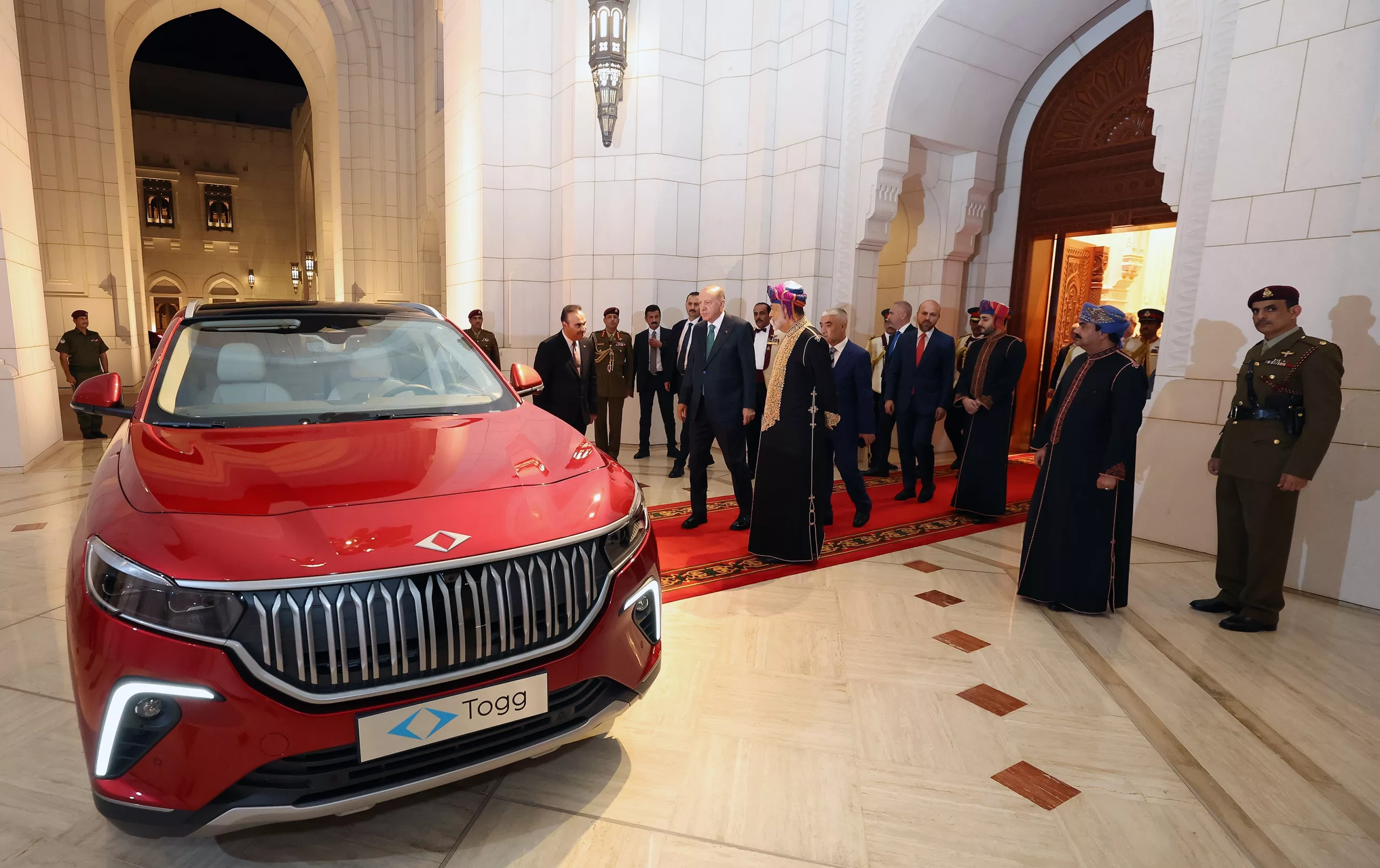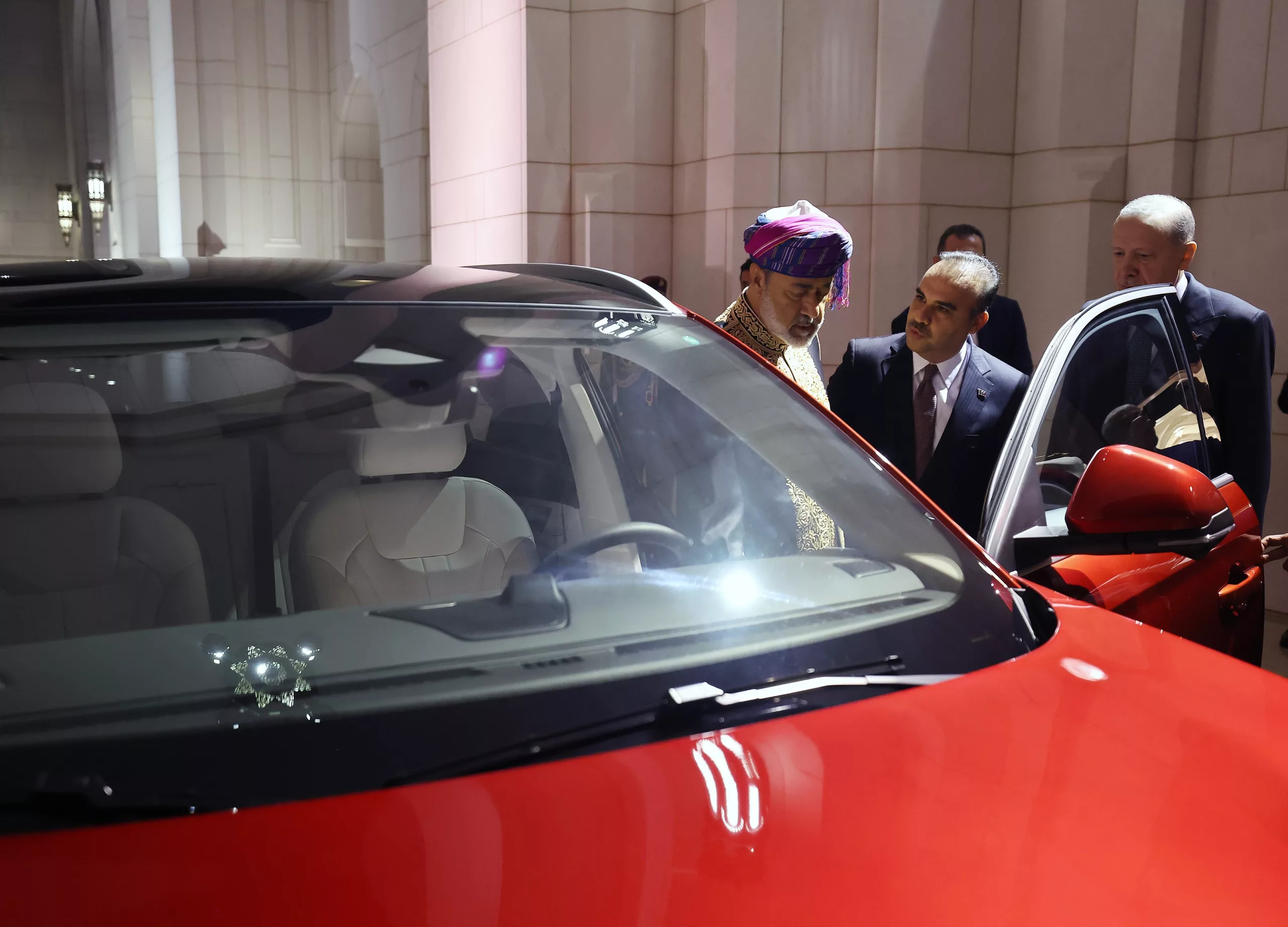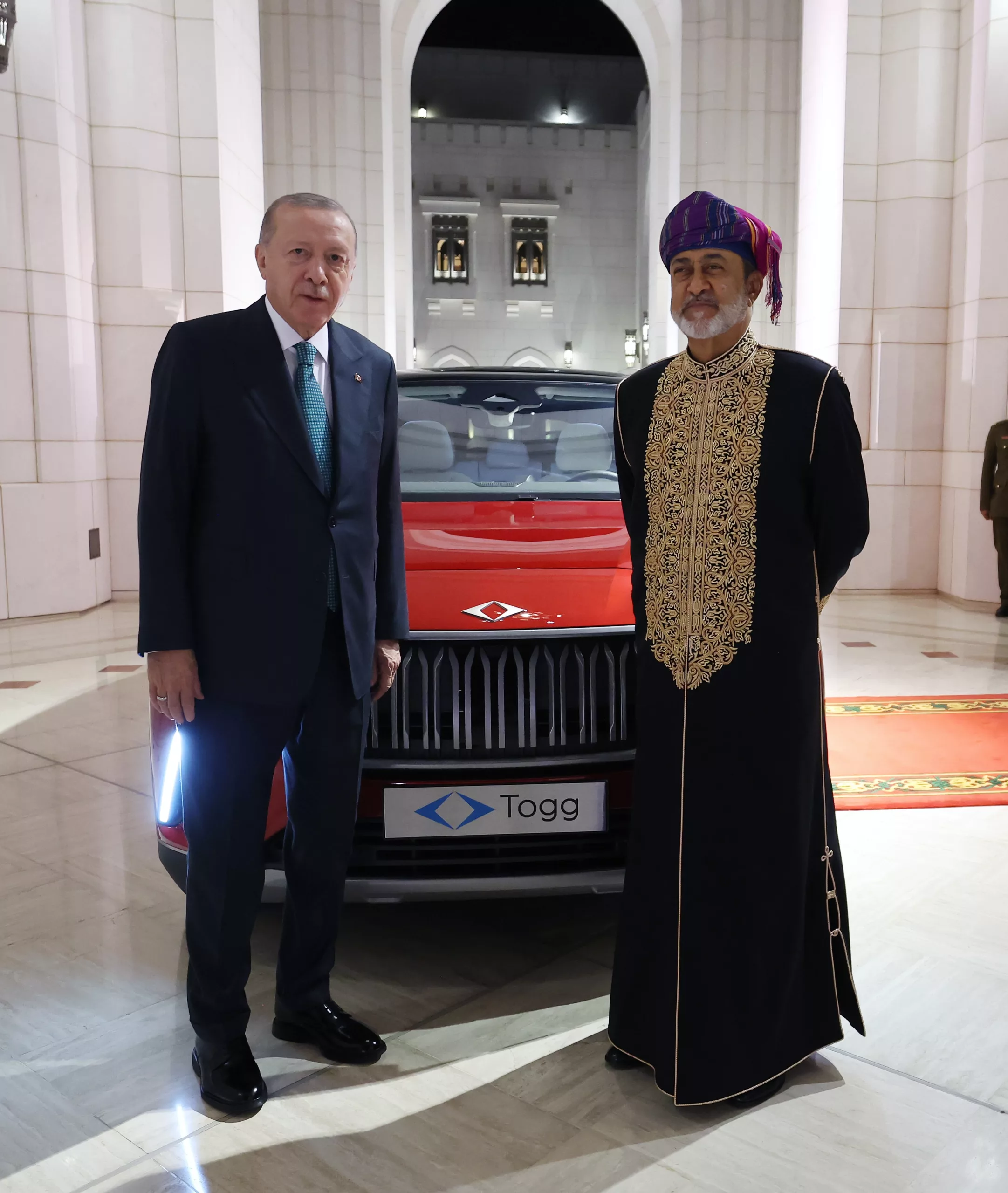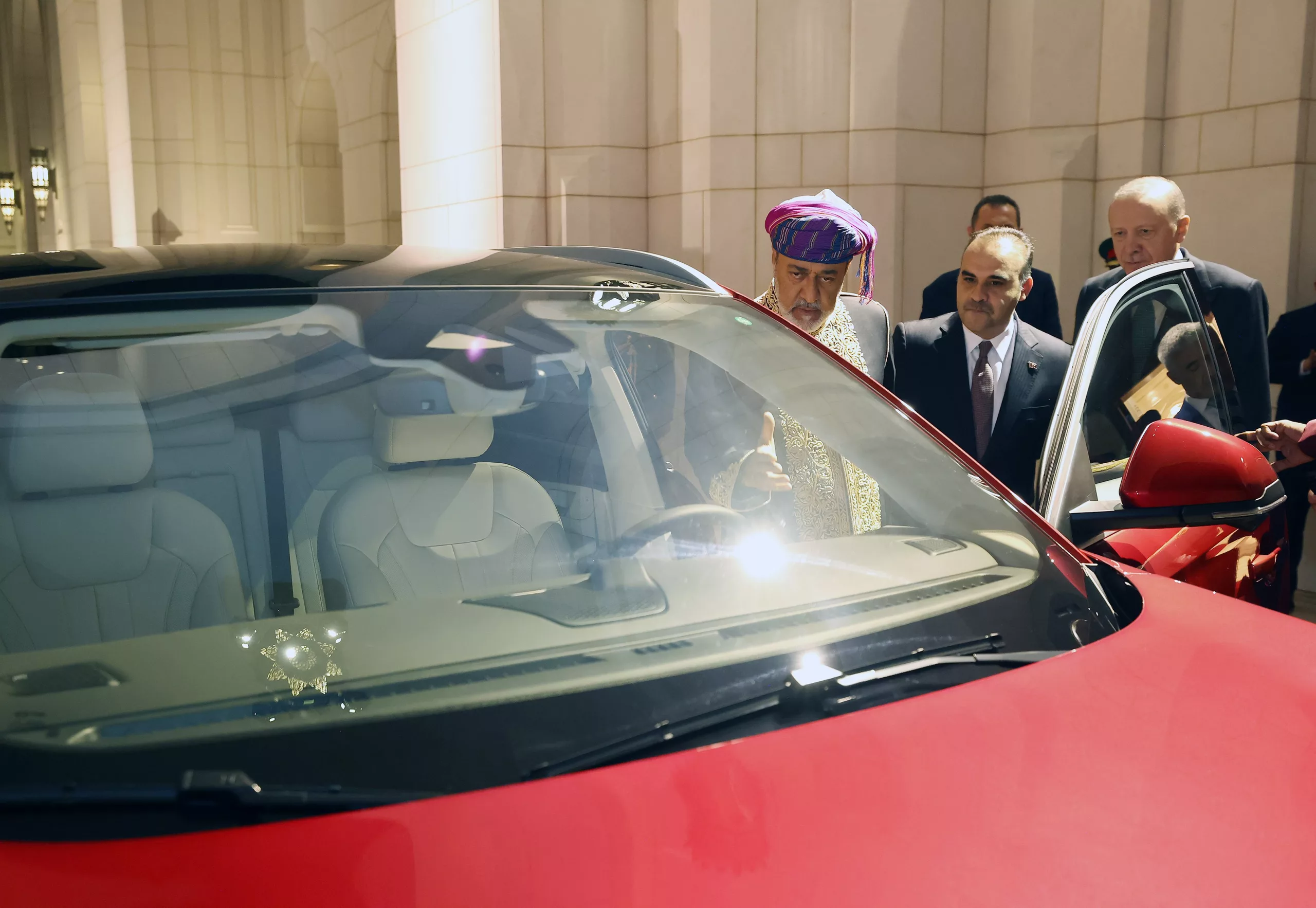 During his visit to Oman, President Recep Tayyip Erdoğan presented a red Togg, Türkiye’s domestically produced electric car, to Sultan Haitham bin Tariq Al Said following their meeting in Muscat. Prev 1 of 5 Next Haitham bin Tariq Al SaidOmanRecep Tayyip ErdoğanTOGG 0 Share