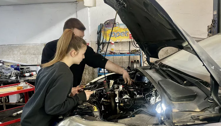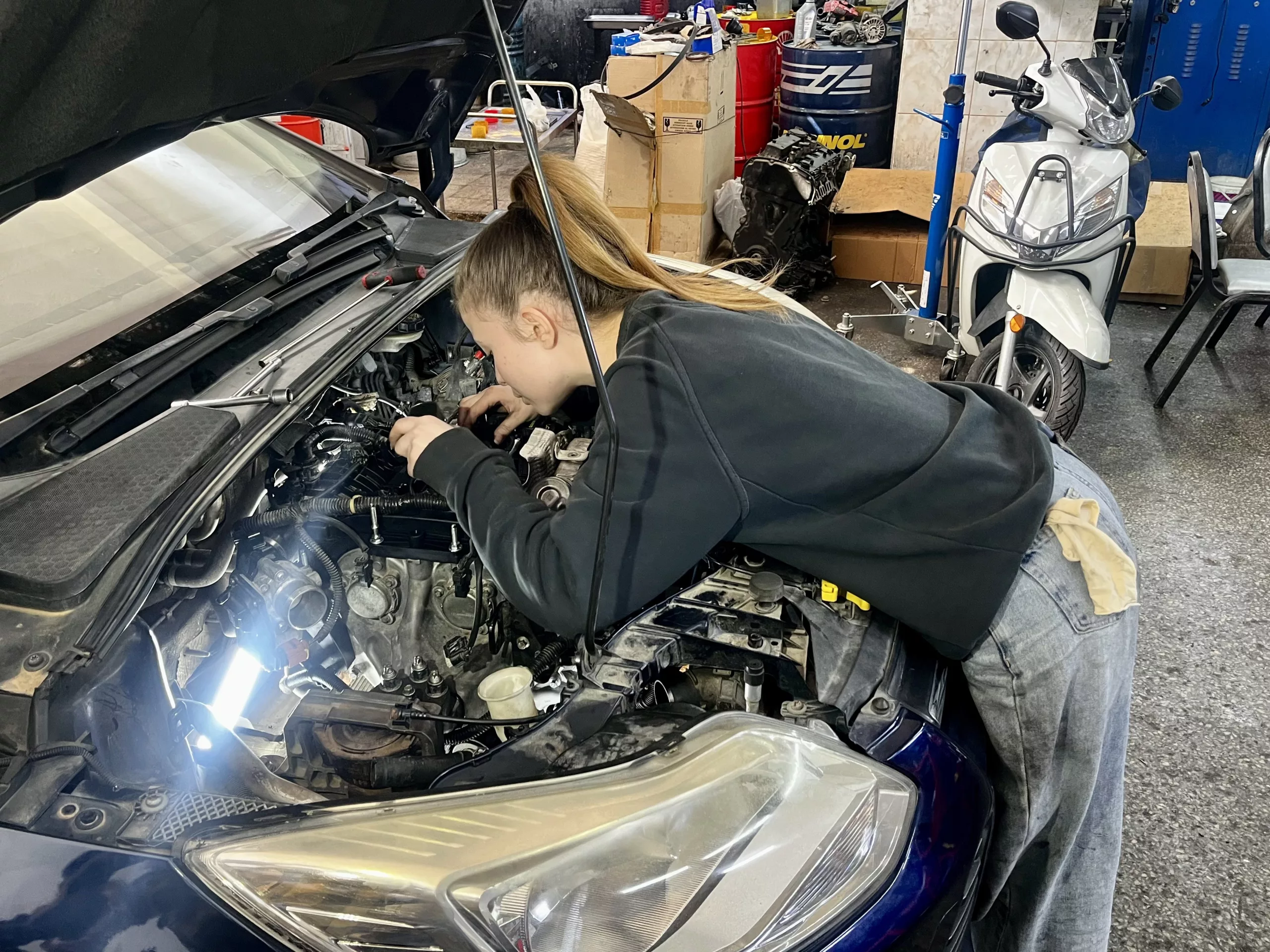 Selen Tıraşoğlu, a 17-year-old vocational high school student in Antalya, Türkiye, works as a mechanic alongside her father in the city’s industrial zone. Having grown up in the workshop, she now performs tasks from vehicle maintenance to removing and reinstalling transmissions.