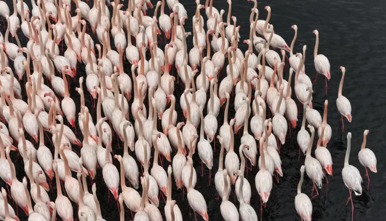 Flamingos have created striking views in Izmit Bay in Kocaeli, northwestern Türkiye, a key wetland hosting around 168 bird species. The birds, known locally as “pink cranes,” gather in the bay during winter, attracting photographers and birdwatchers.