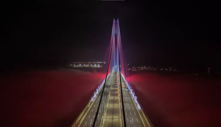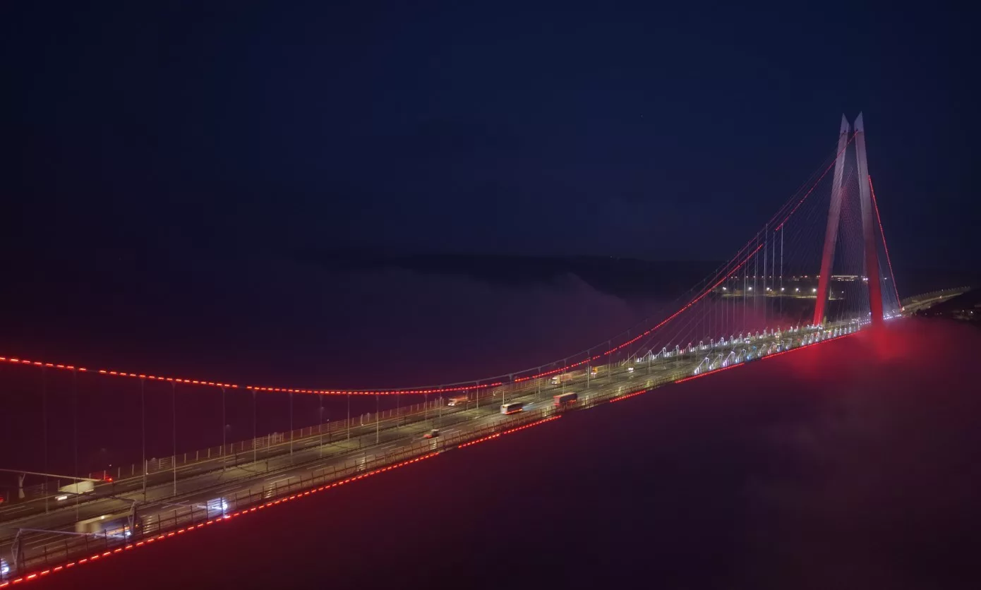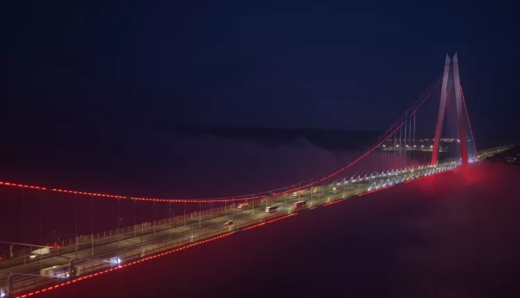 Dense evening fog enveloped Istanbul’s iconic Yavuz Sultan Selim Bridge, creating a breathtaking and captivating atmosphere across the city’s skyline. As the mist blended with the blue hues of the evening, large sections of the bridge, particularly its towering structures, vanished entirely from view.