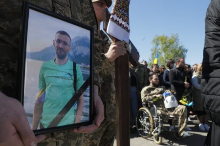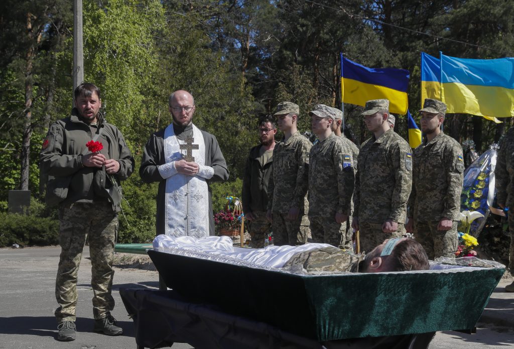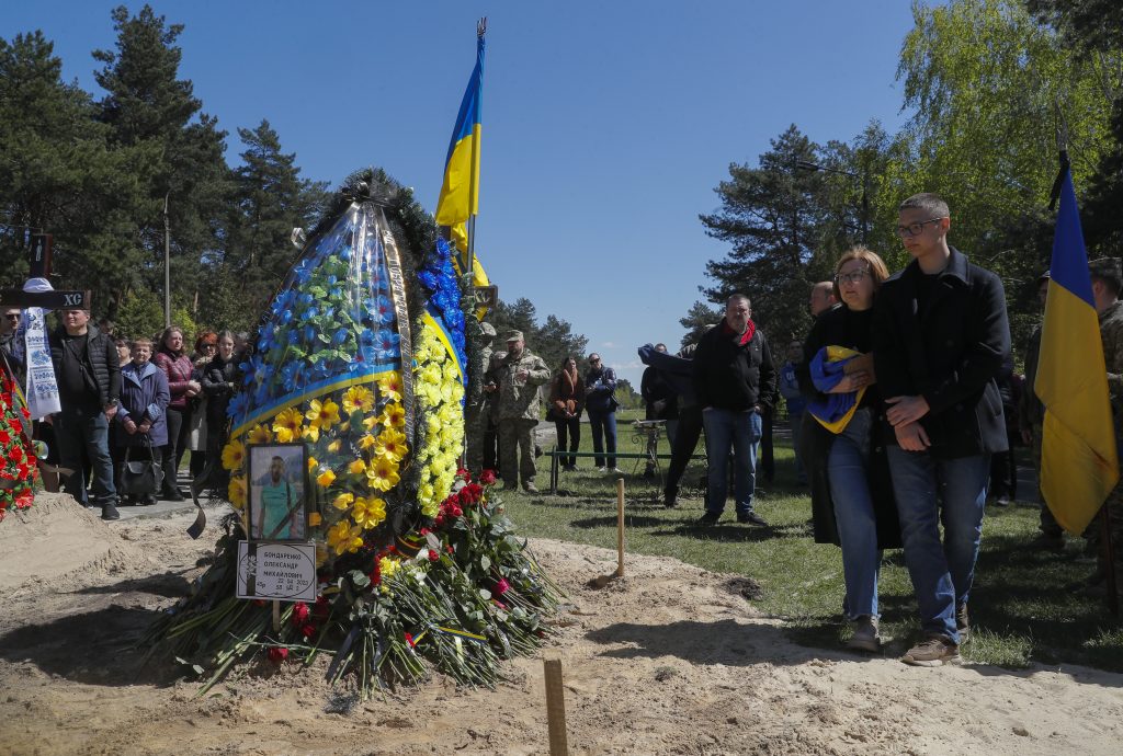 Ukrainians attended the funeral ceremony at the cemetery of Ukrainian late serviceman Oleksandr Bondarenko in Kyiv, Ukraine. The former journalist, who worked for BBC Ukraine and other local media, was killed in the early stages of the Russian invasion in 2022, near Kreminna in the Luhansk area.