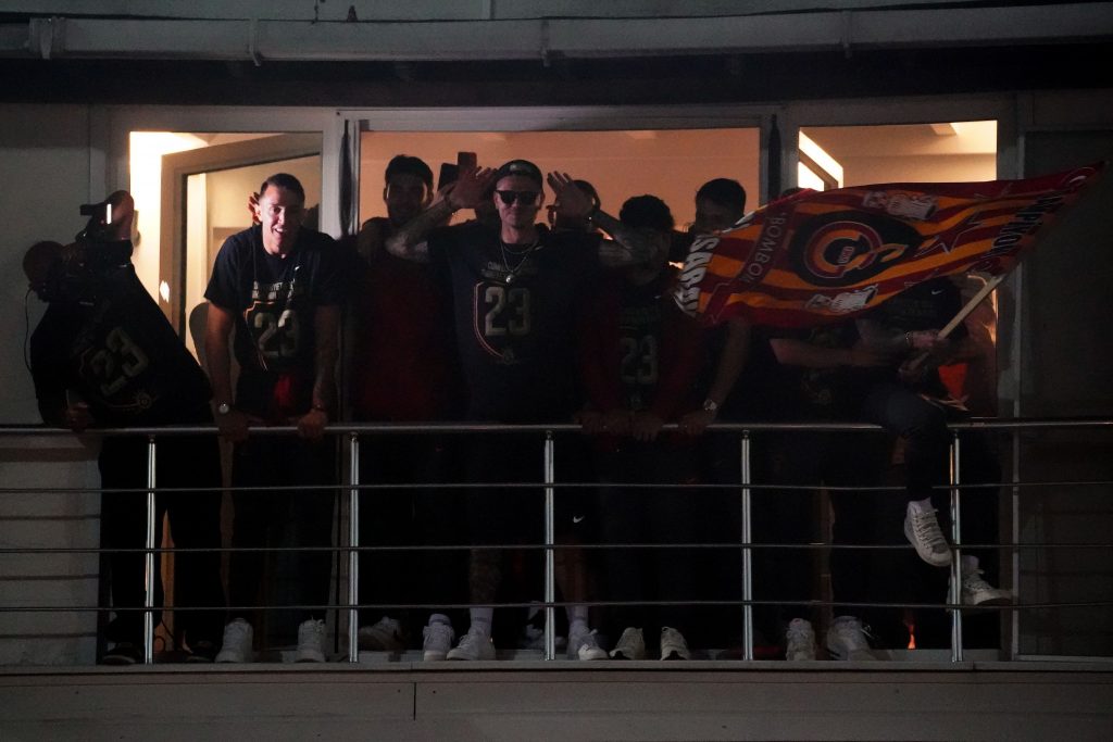 Following their victory against MKE Ankaragücü in the 36th week of the Spor Toto Super League, the Turkish football team Galatasaray ensured their 23rd Super League championship. After returning to Istanbul, the team celebrated until late with the fans at the Florya Metin Oktay Facilities. The celebrations also took place all over the country with songs, marches, and convoys.
