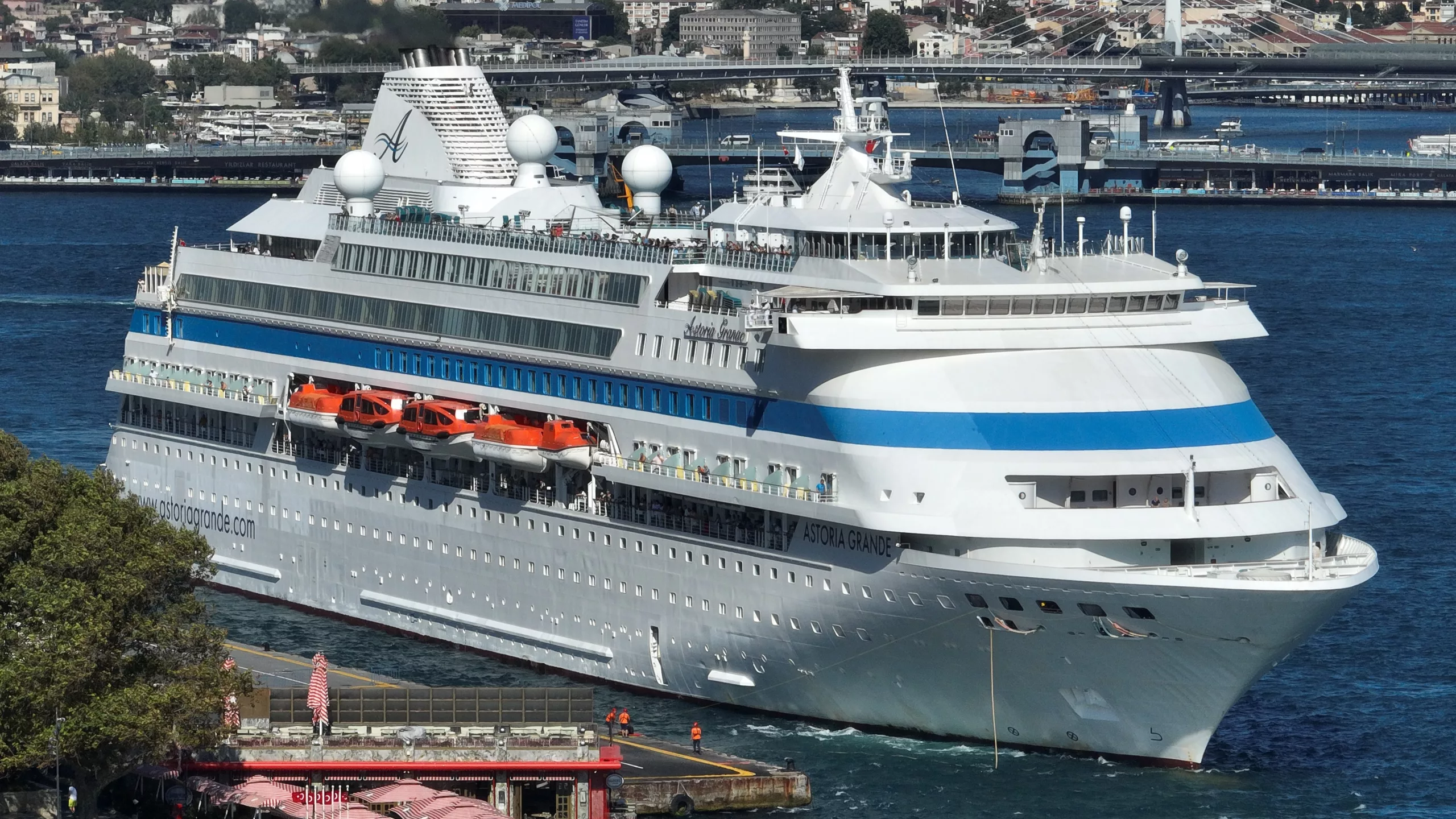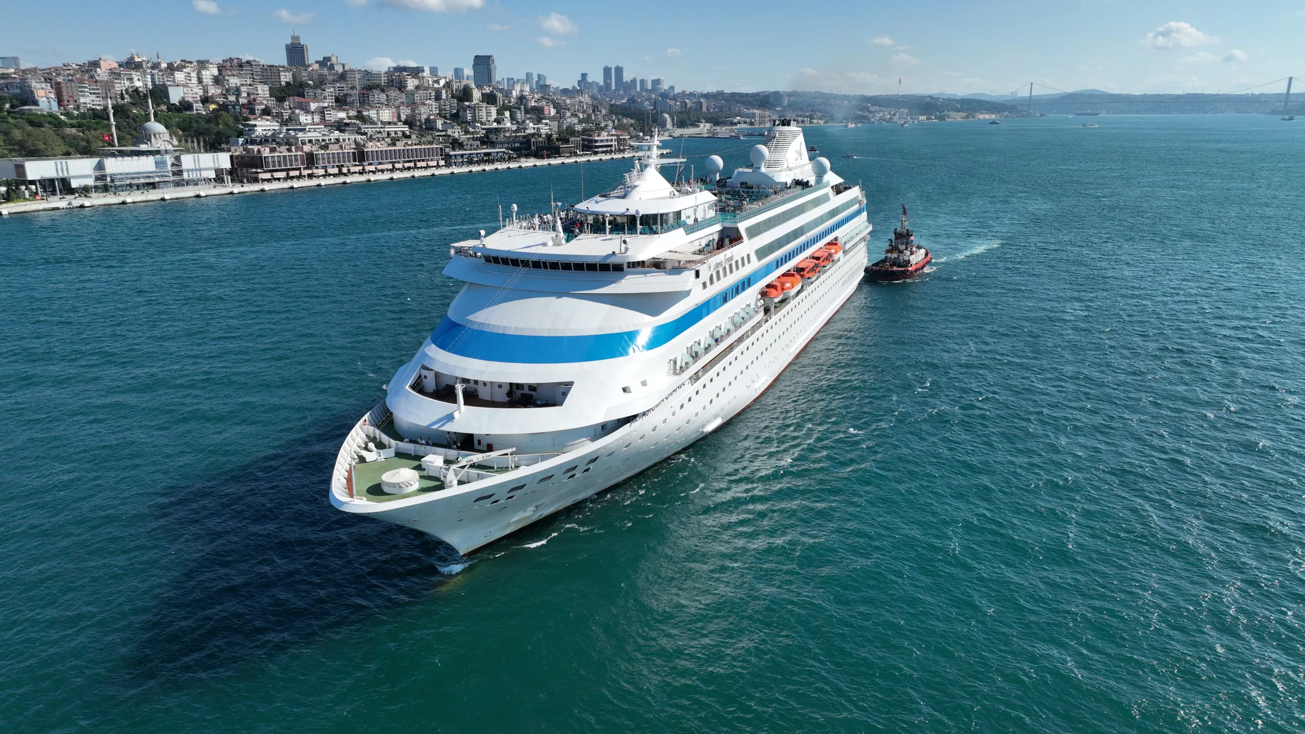 The 193-meter-long Astoria Grande cruise ship, with a capacity of 1,186 passengers, docked at Istanbul’s Sarayburnu Port. The ship, which departed from Samsun, is now operated by a Russian shipping company. A tugboat from the Coast Guard accompanied the vessel as it arrived. Tourists disembark to enjoy city tours to iconic spots like the Grand Bazaar.