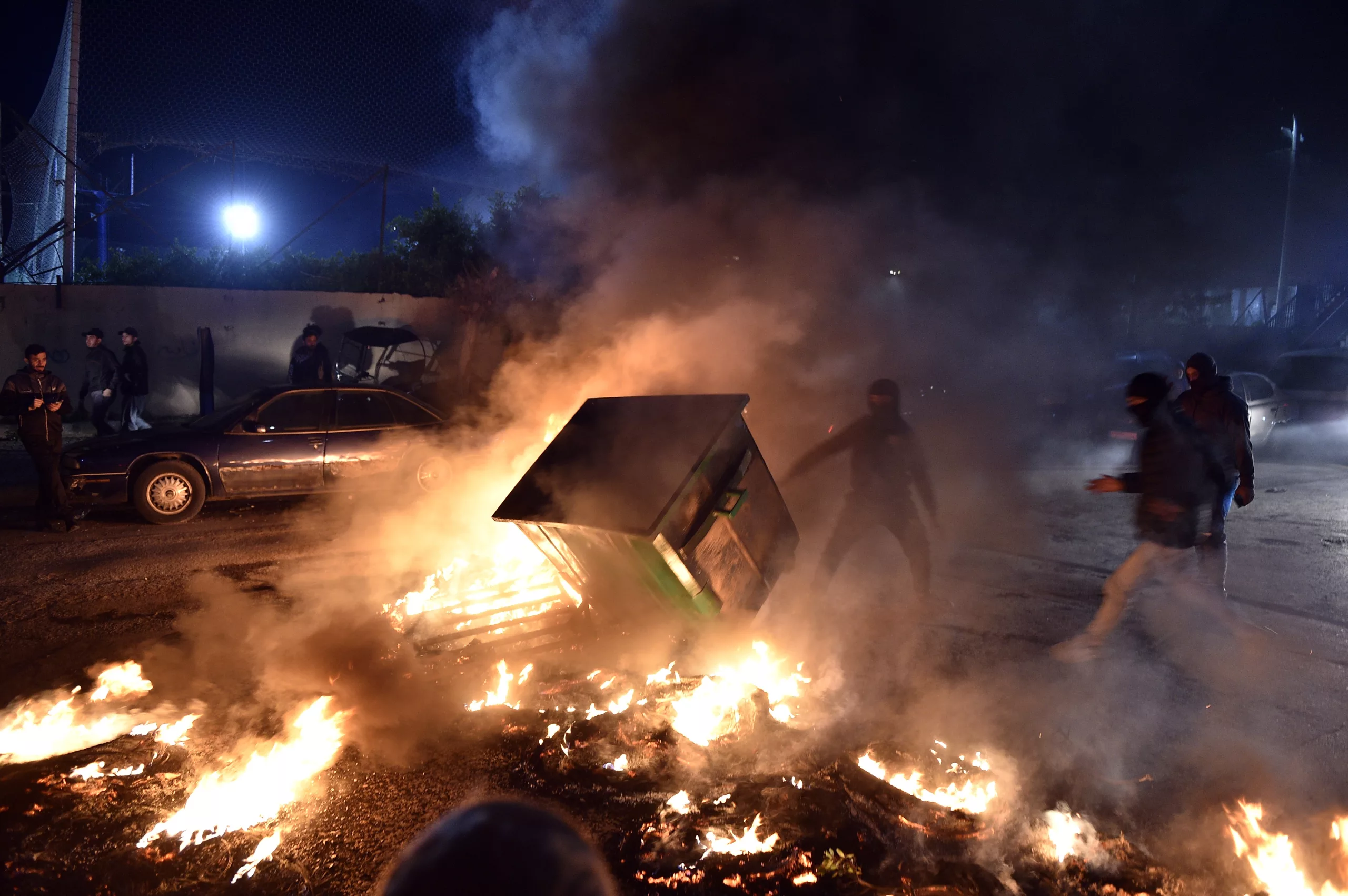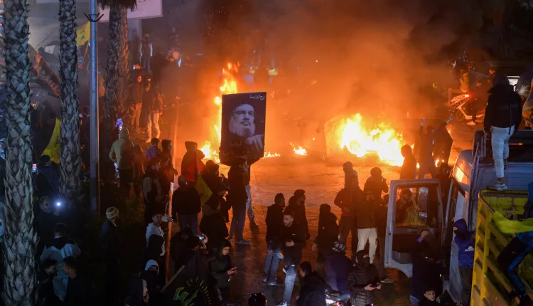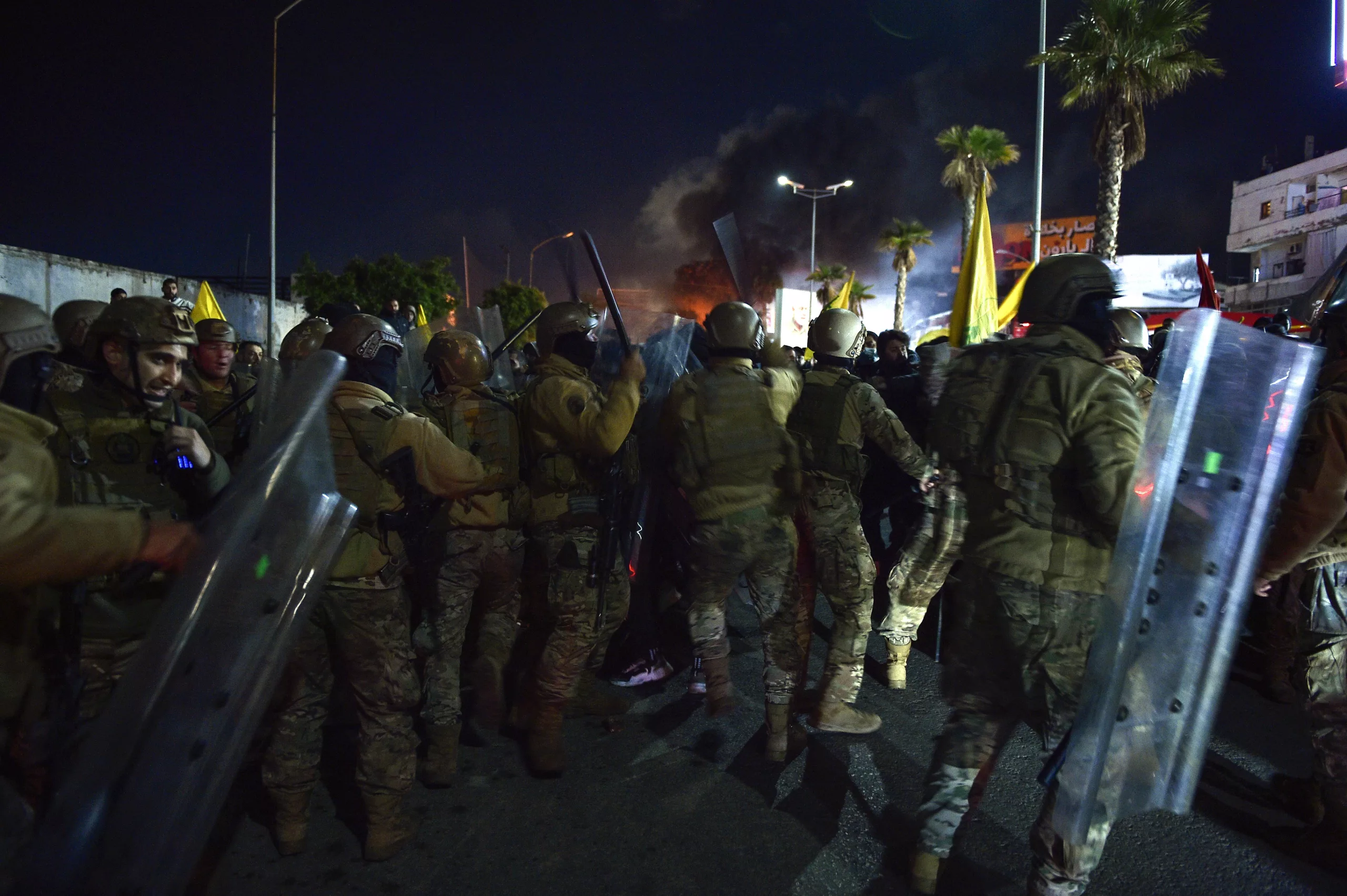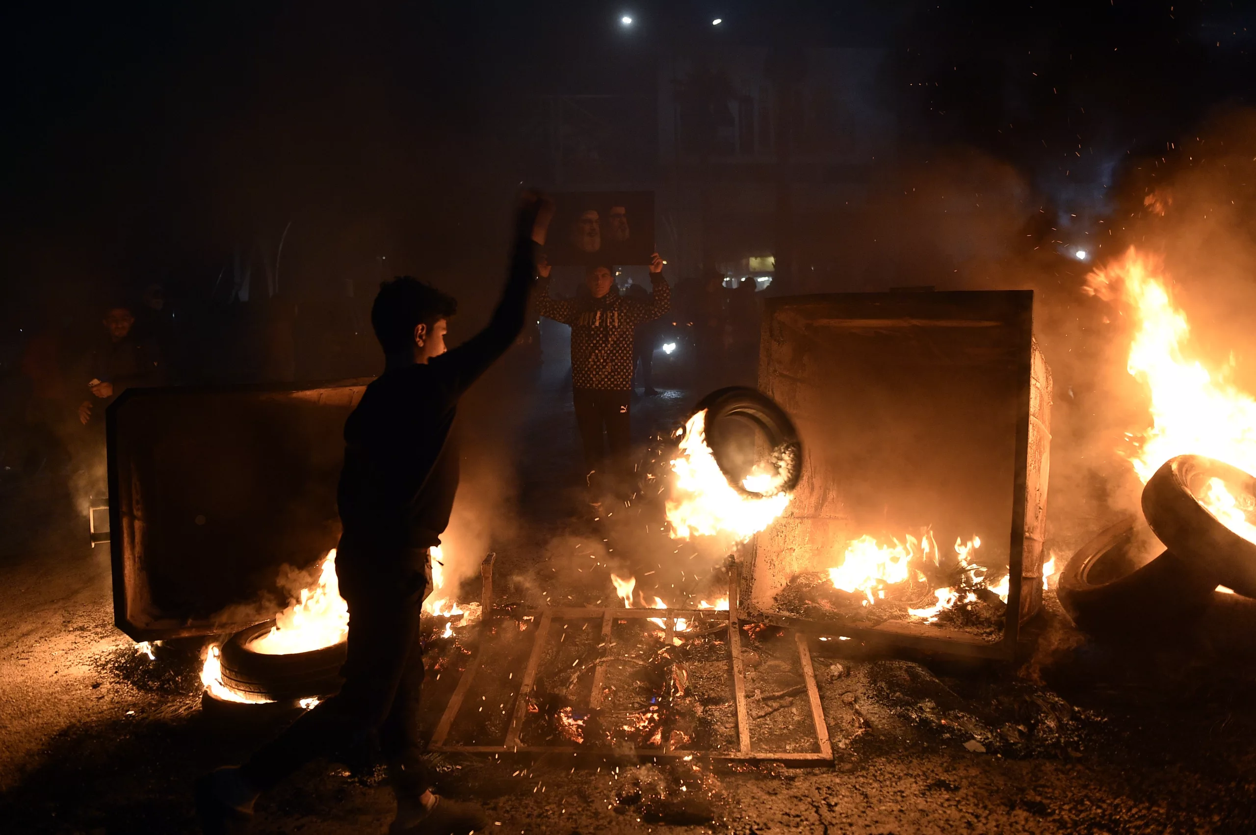 Hezbollah supporters blocked the main road to Rafik Hariri International Airport in Beirut and set tires on fire after Lebanon denied landing permission for an Iranian Mahan Airlines plane. The flight, scheduled from Tehran, was canceled, leaving dozens of Lebanese passengers stranded.