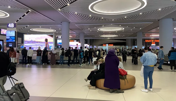 Istanbul Airport saw heavy crowds as travelers returned from the Ramadan holiday. Passengers arriving from domestic and international destinations caused congestion at the airport. Authorities, including İGA and airline staff, took measures to manage the influx, while police kept passport control points fully operational to reduce wait times. Airport personnel also assisted passengers in baggage claim and exit areas.