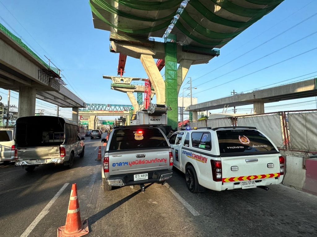 A huge concrete slab fell on a highway from the elevated expressway that was being built upon the road in Bangkok, the capital of Thailand. A construction worker was killed and another was injured. Eight vehicles were damaged. Expressway Authority of Thailand Chairman Surachet Laopoolsuk expressed his condolences to the family of Worawut Pannon, 54, who lost his life, and said that the company in charge of the construction was to be held responsible for the accident.
