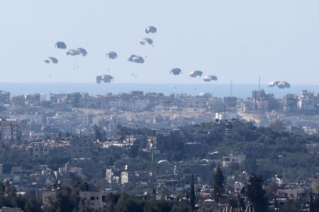 Royal Moroccan Air Force aircraft delivered humanitarian aid to the northern Gaza Strip by air.