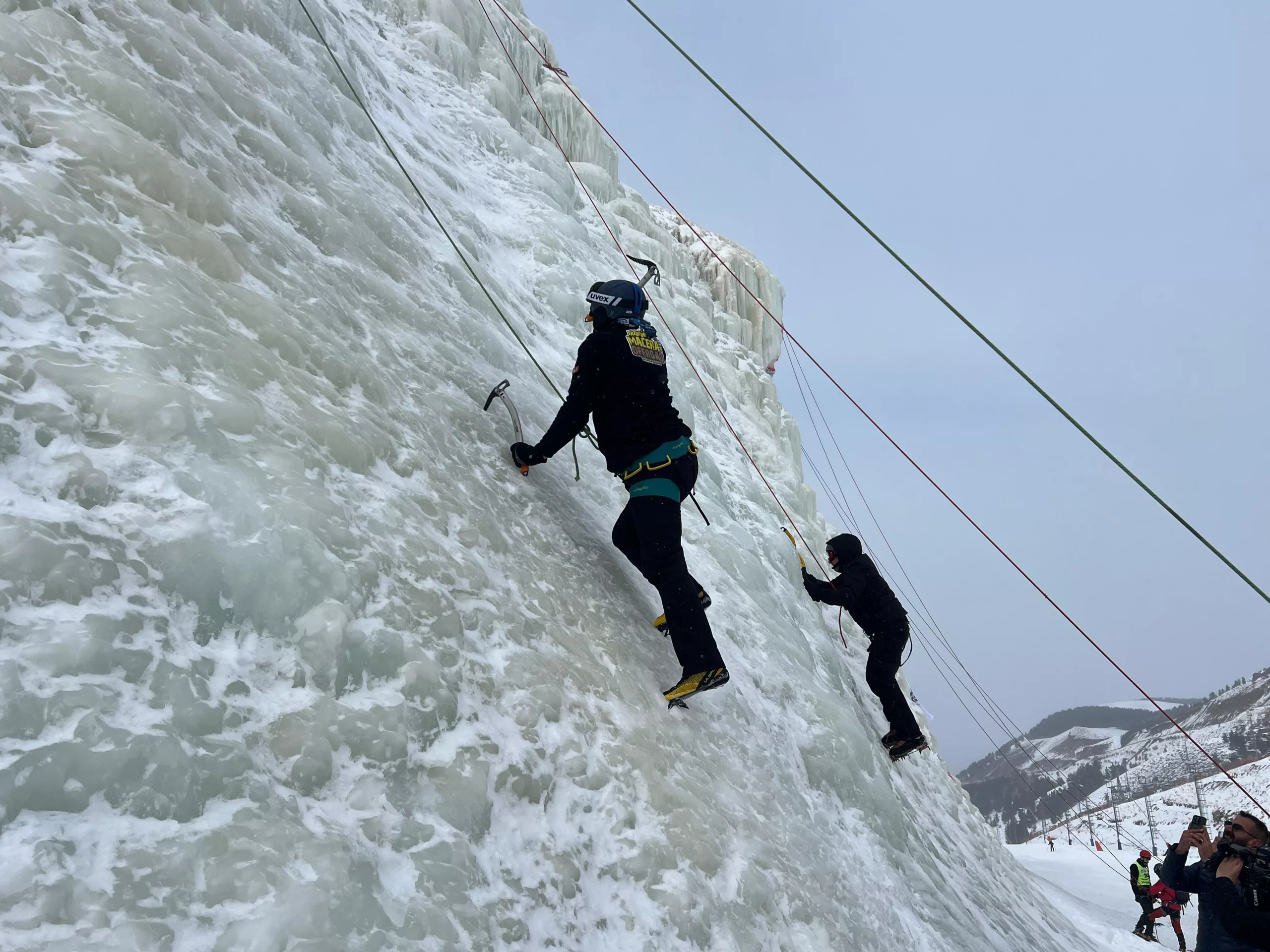 The two-day Ice Park Ice Climbing Türkiye Championship started today at Erzurum Palandöken Ski Center, where dozens of climbing enthusiasts attempted to climb Türkiye’s only artificial ice wall, which is 20 meters tall and 150 meters wide. Prev 1 of 12 Next ice climbingPalandöken Ski Center 0 Share
