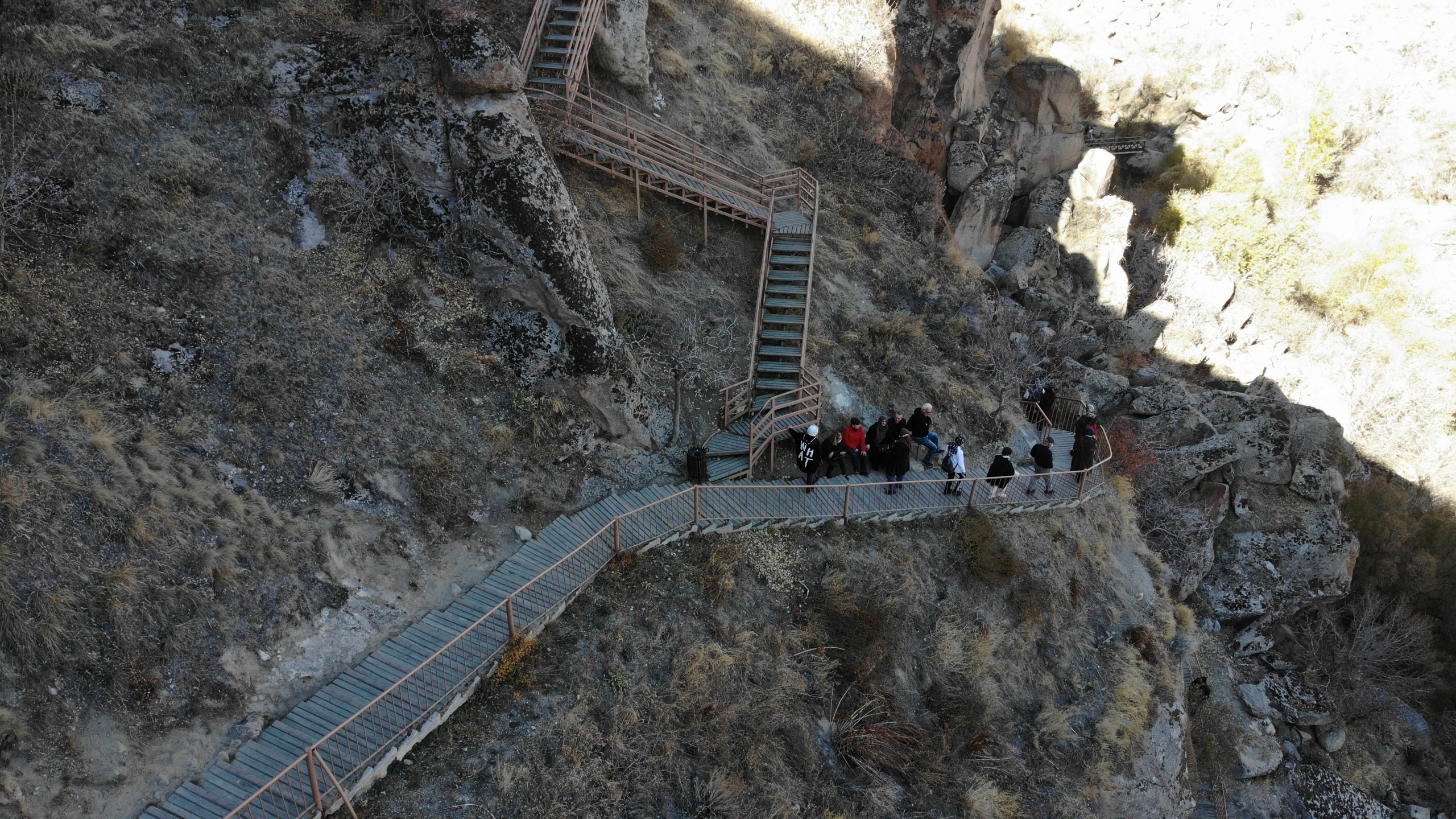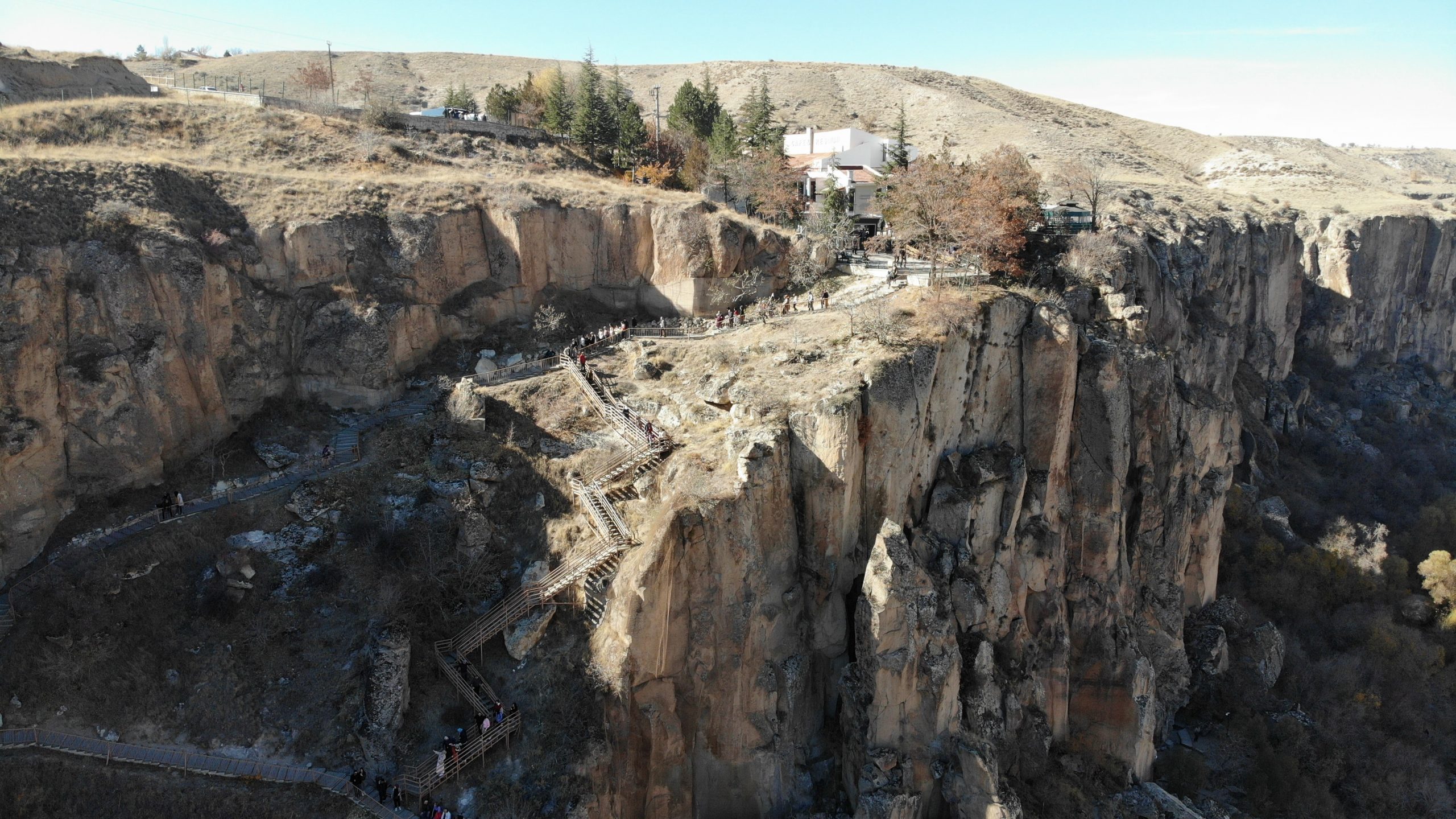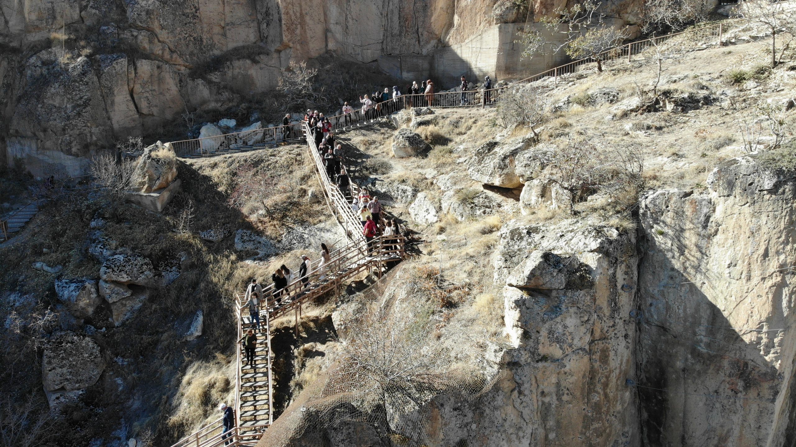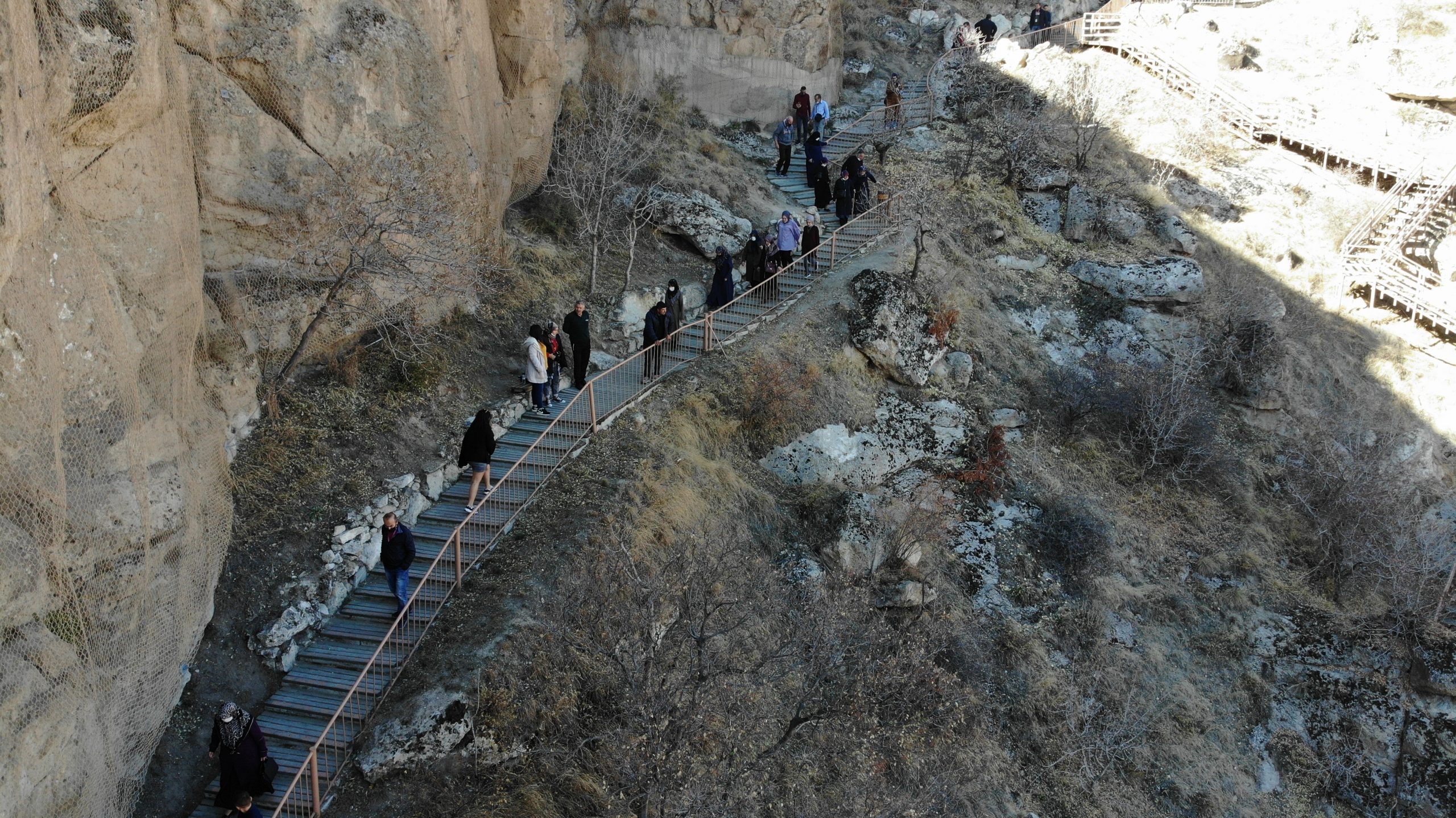 Ihlara Valley, the world’s second largest canyon valley in Aksaray city, has become the focus of attention of local and foreign tourists. This year, local and foreign tourists show great interest to Ihlara Valley, which is located at the entrance of Cappadocia and is one of the most important ruins of the region. There are hundreds of carved rock living places with caves and churches in the Ihlara Valley, which being 14 kilometers long natural canyon structure and can be reached by going down 394 step stairway. In addition to its natural beauties, Ihlara Valley welcomes hundreds of thousands of visitors every year with its many churches, chapels and monasteries carved into the rocks due to being a religious center in the early periods of Christianity. After going down the stairway consisting of 394 steps to the floor of Ihlara Valley, which Melendiz Stream passes through, local and foreign tourists have the opportunity to stroll on the 14 kilometers long walking paths on both sides of the Melendiz Stream. Since January 2021, nearly 400 thousand tourist visit Ihlara Valley, whose number of visitors has increased rapidly, especially with normalization process after Corona virus (Covid-19) pandemic. Moreover, Ihlara Valley became one of the most visited ruins in 2021 with the rapidly increasing number of visitors.