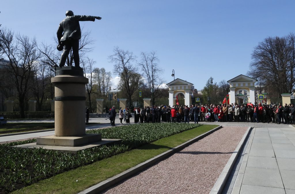 Members of the Russian Communist Party carried red flowers during traditional May Day celebrations at the Lenin monument in St. Petersburg, Russia.