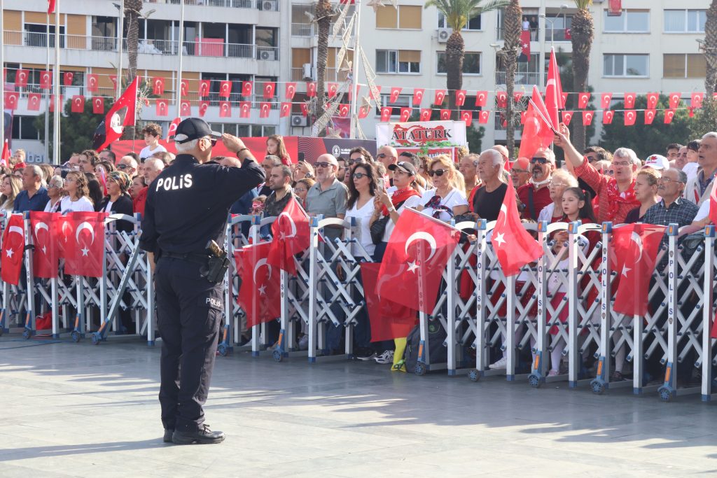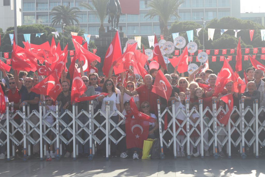 Türkiye’s Izmir Province celebrated the 100th anniversary of Turkish Republic in Republic Square. Following the singing of the National Anthem and holding of a moment of silence and the Turkish flag was raised the celebrations began with the opening speech of Izmir Governor Süleyman Elban. The celebrations, which numerous citizens attended, included traditional folklore dances and flight shows.