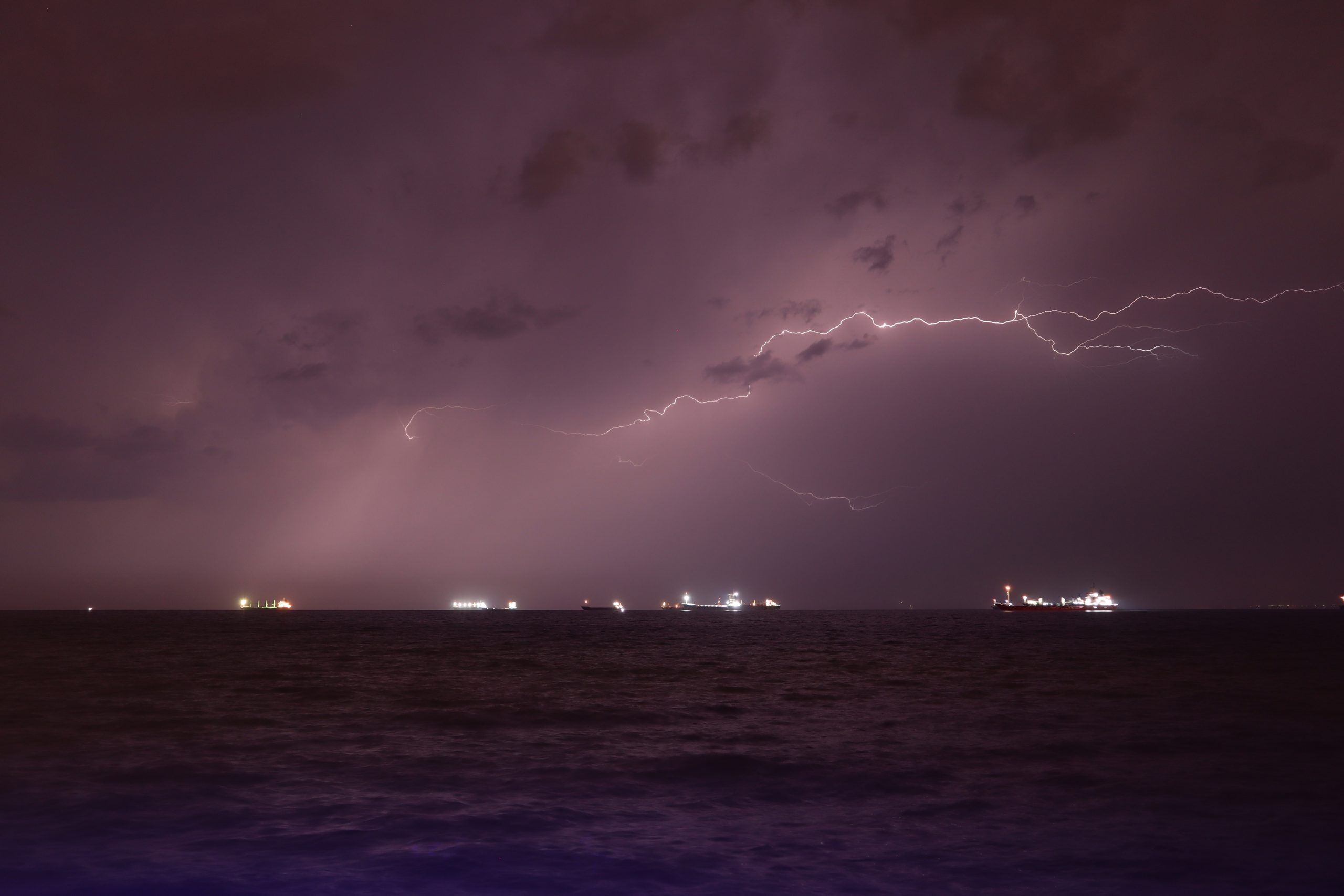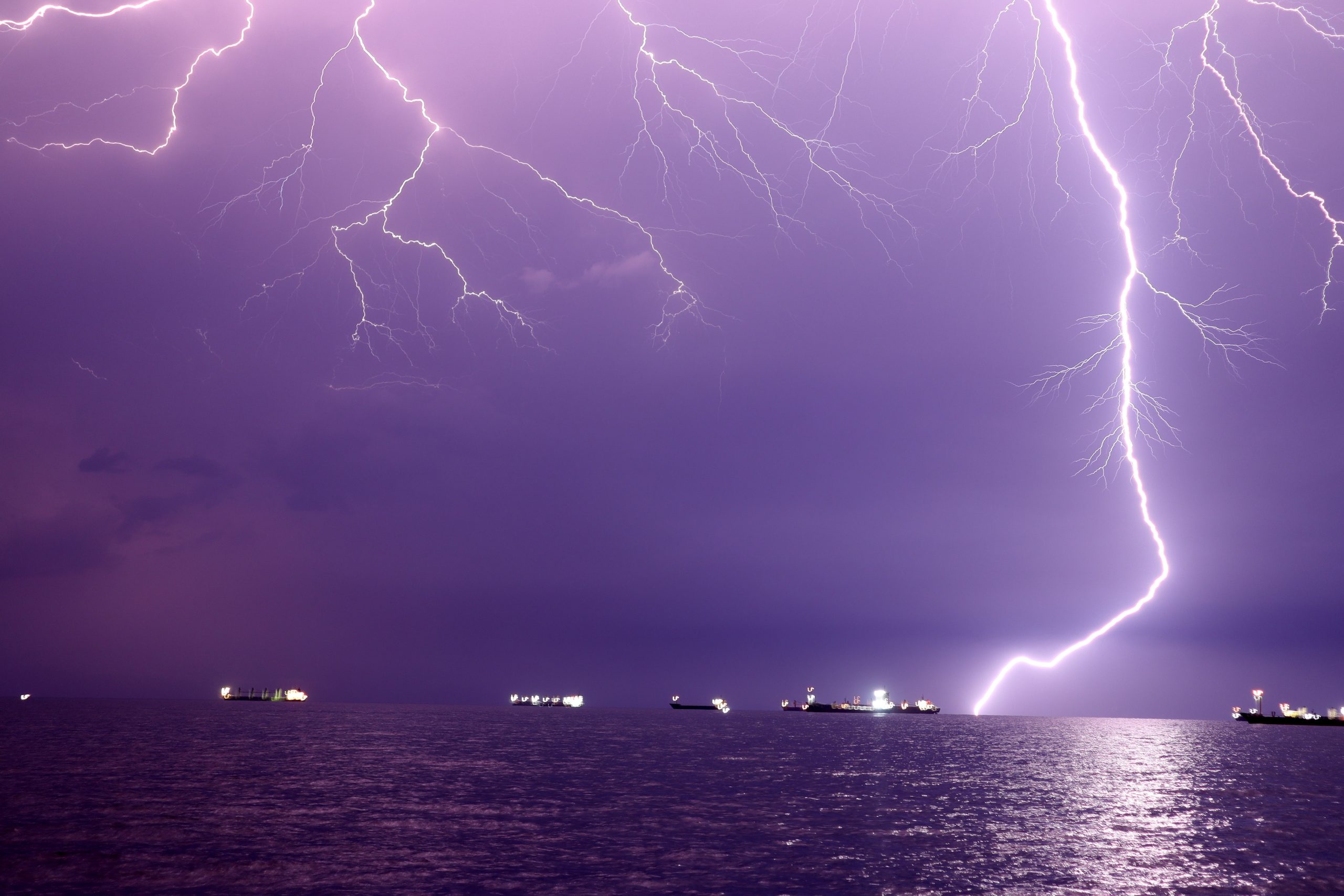The lightning strikes in the gulf of İskenderun, Turkey, served up visual feast on the sky. The images showing lightning flashing on the ships off the coastal Iskenderun were taken with time-lapse and slow-motion techniques. The lightings illuminated the sky throughout the night in the area, where torrential rain reduced the air temperature.