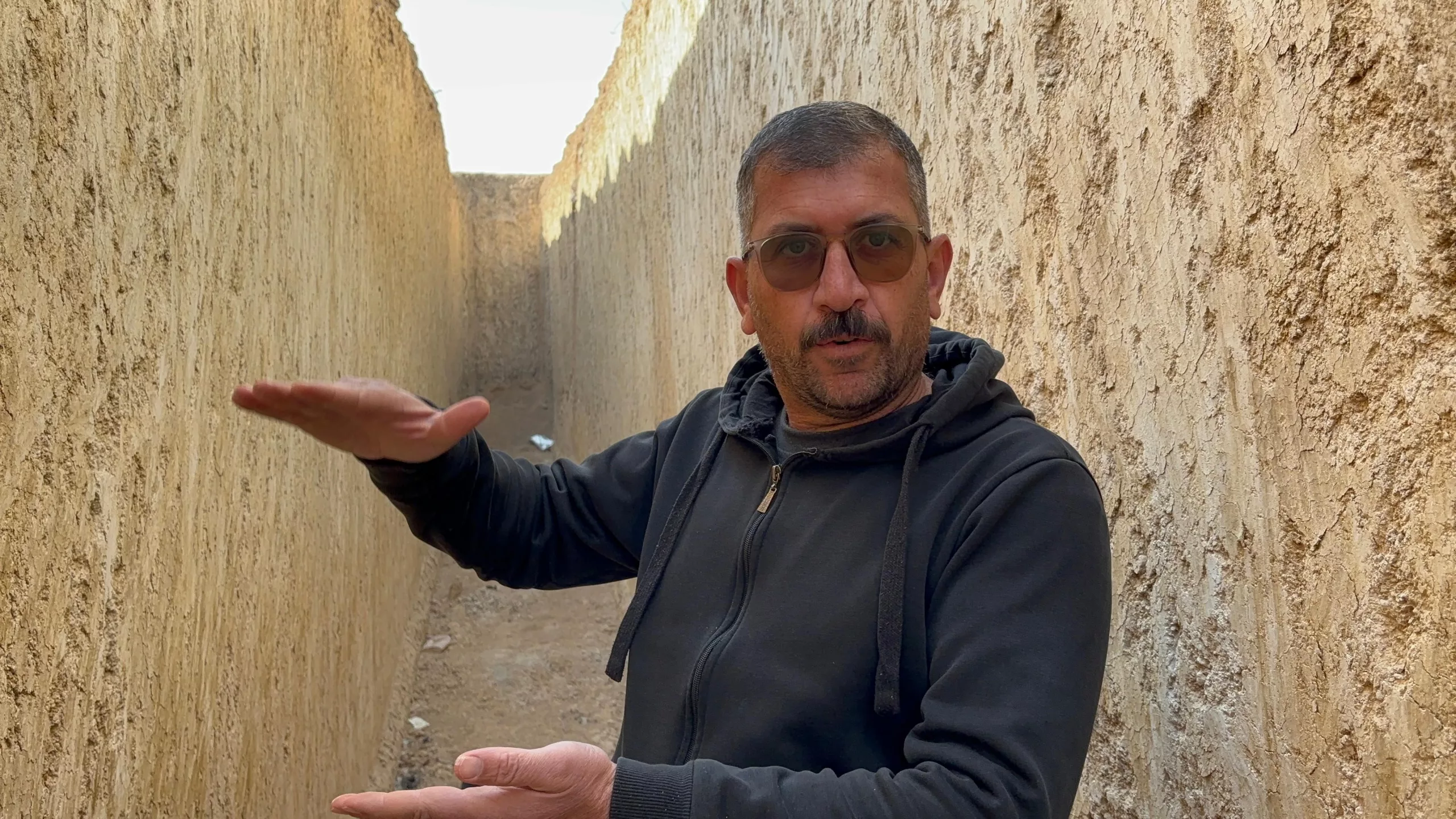 “I went to visit my brother in Sednaya Prison. They brought 400 people in two vehicles and buried them here. I saw it with my own eyes. The martyrs are not terrorists; Assad is a terrorist. The human bone in my hand,” said Zaid Firas.