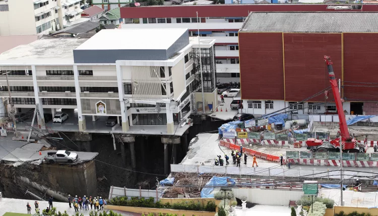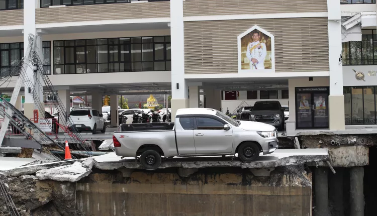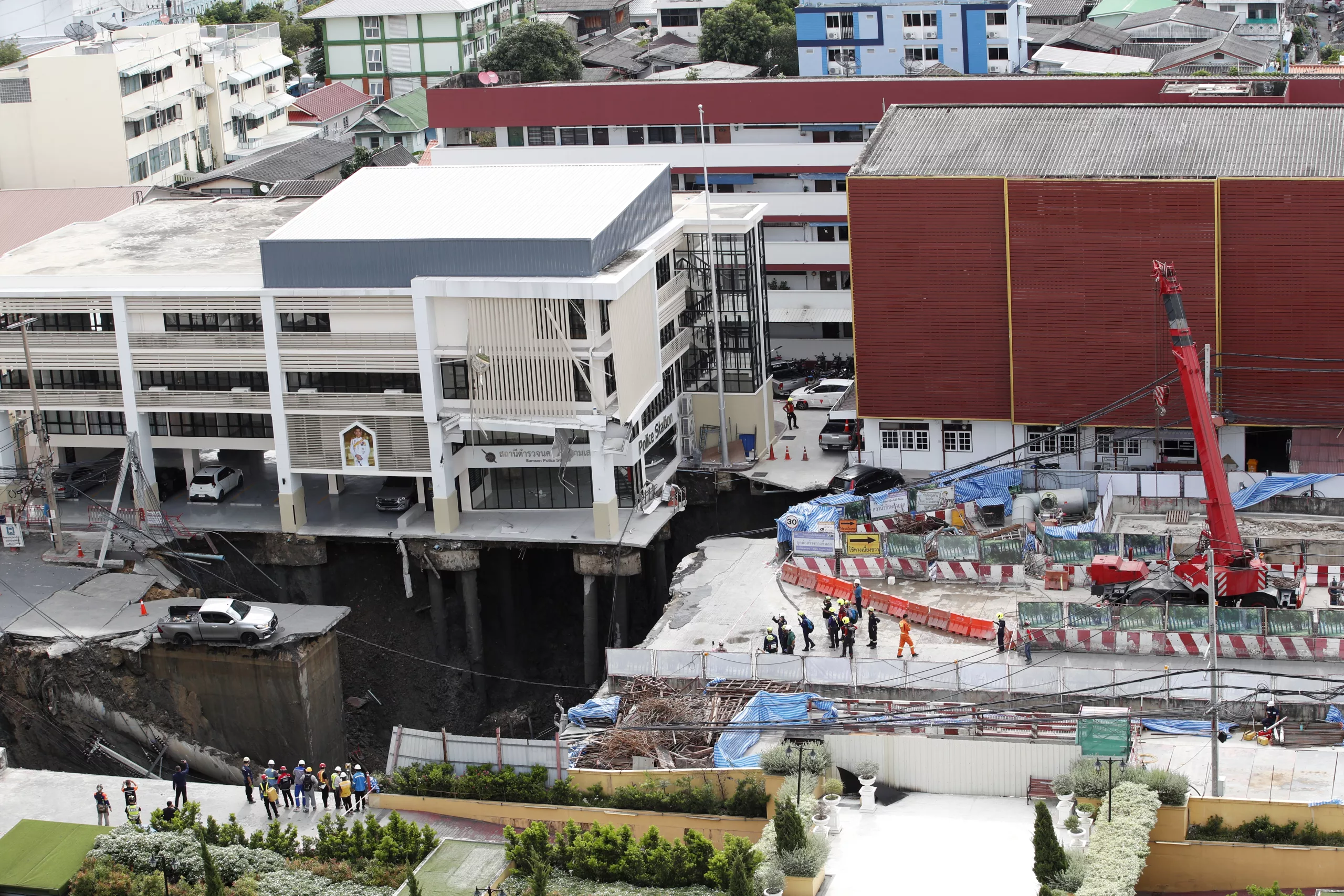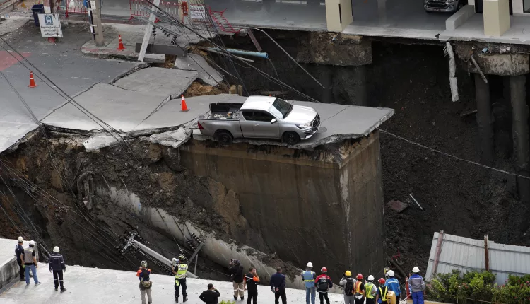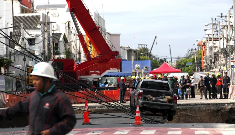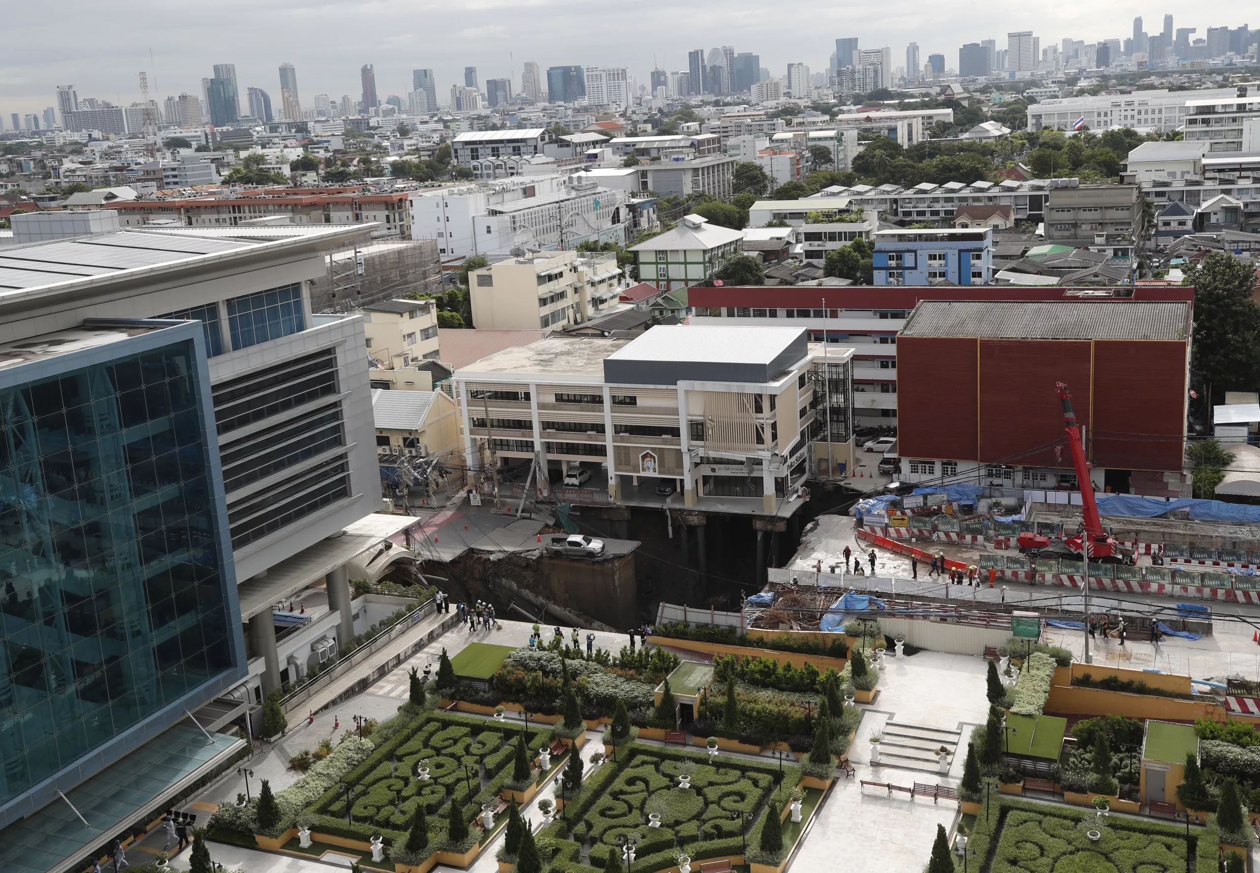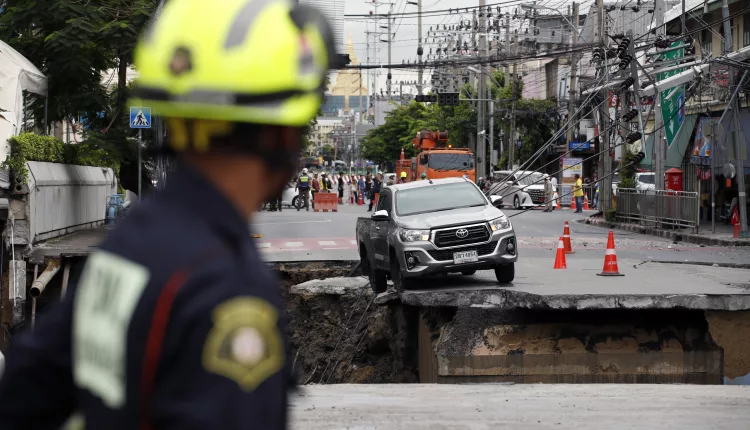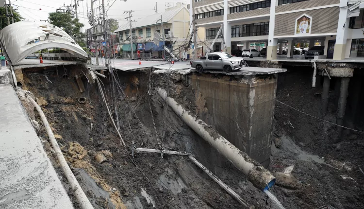 A huge sinkhole about 50 meters deep and 30 meters wide opened on a road under construction in Bangkok’s Dusit district, swallowing a vehicle and forcing the evacuation of a hospital, police station, and nearby homes. No casualties were reported.