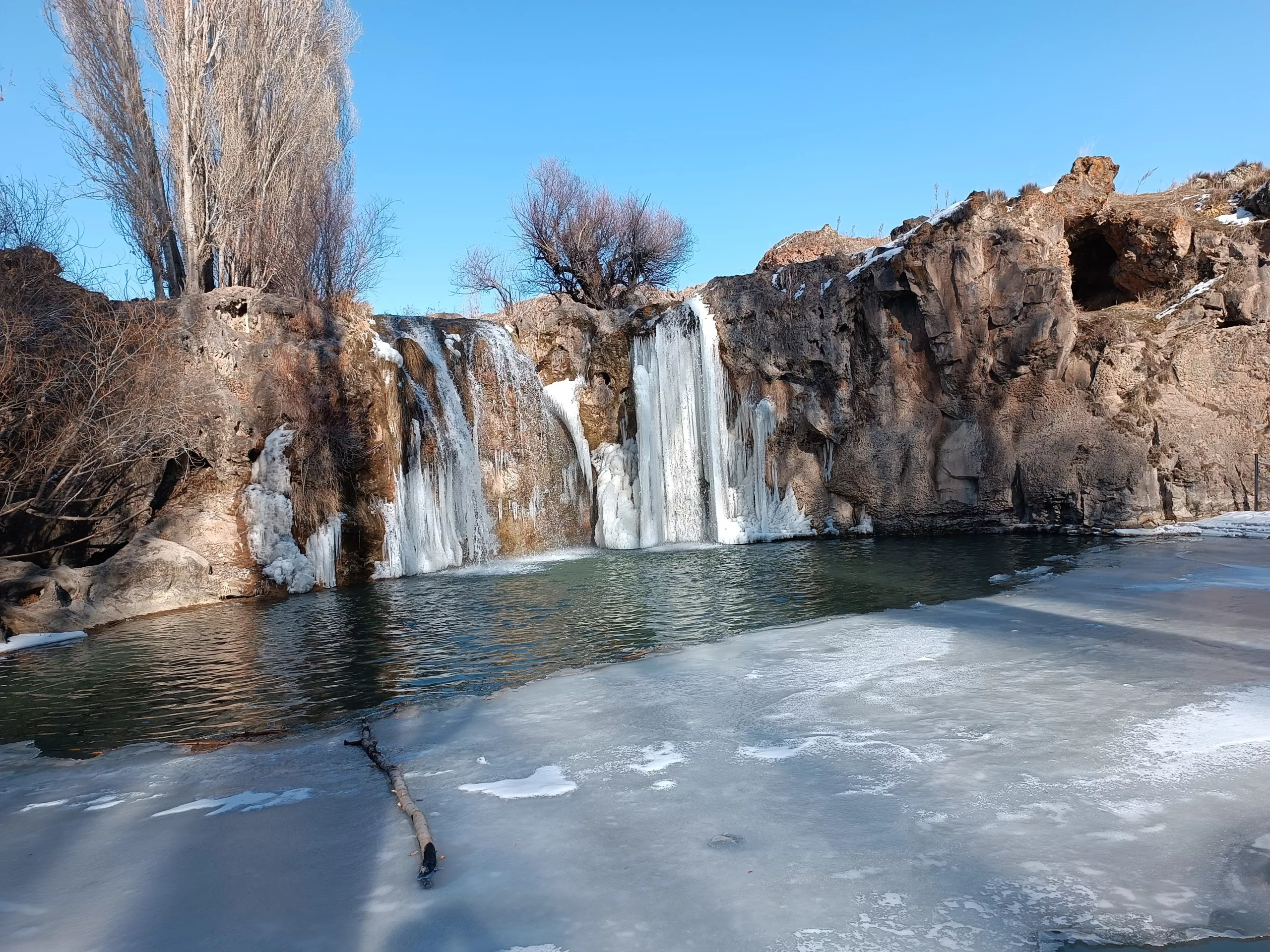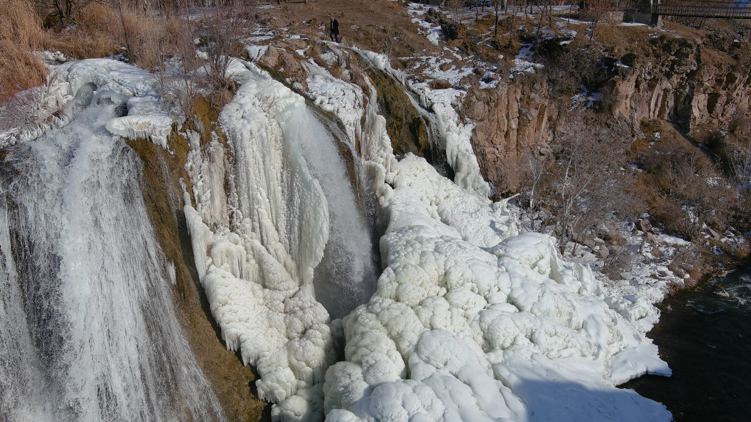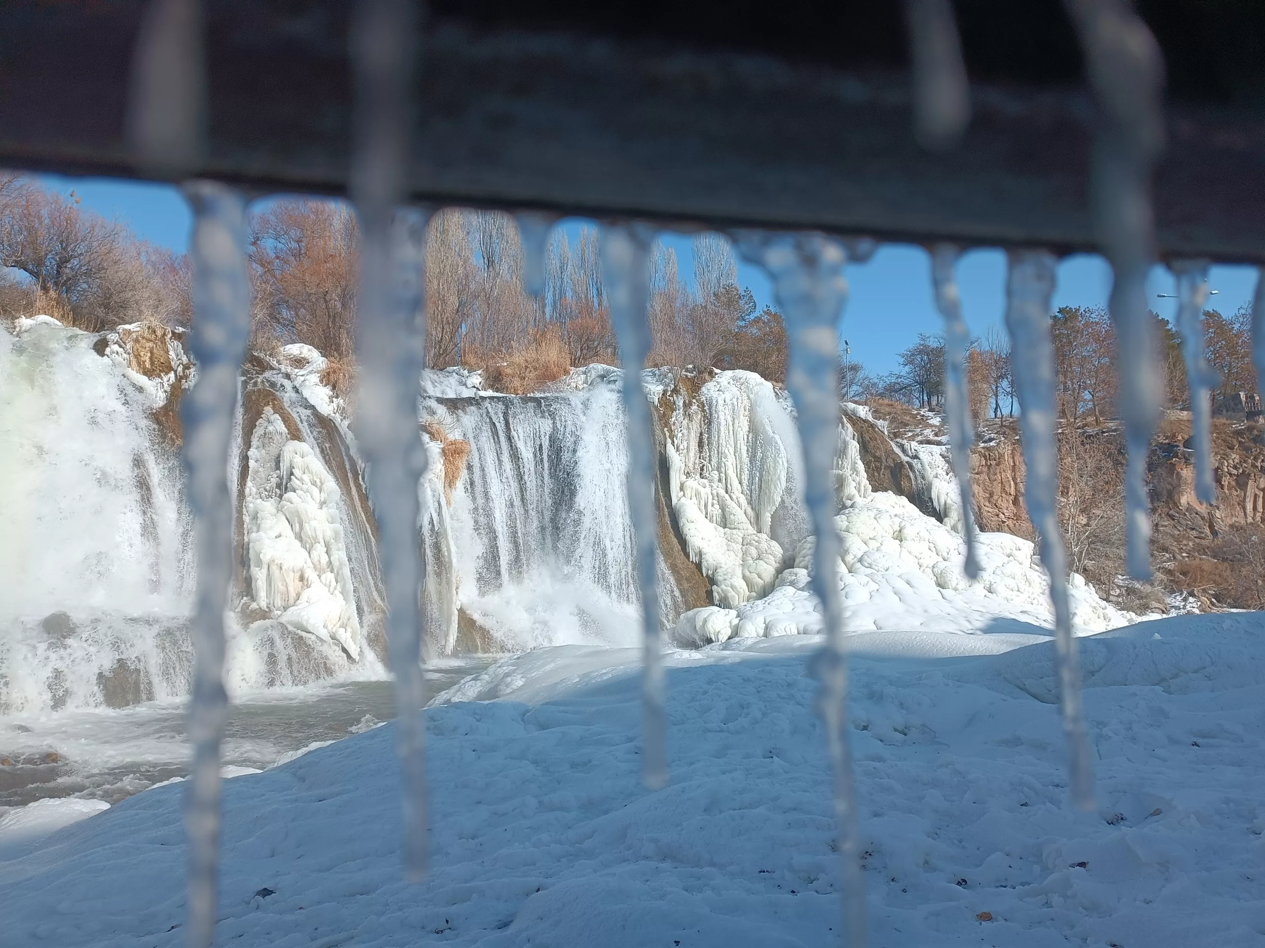 “We came to see Muradiye Waterfall, which has a different beauty in every season. Watching the water dance on the ice is really impressive. Even though the weather is cold, seeing this view is worth everything. I recommend everyone to visit here,” said Selim Göldaş.