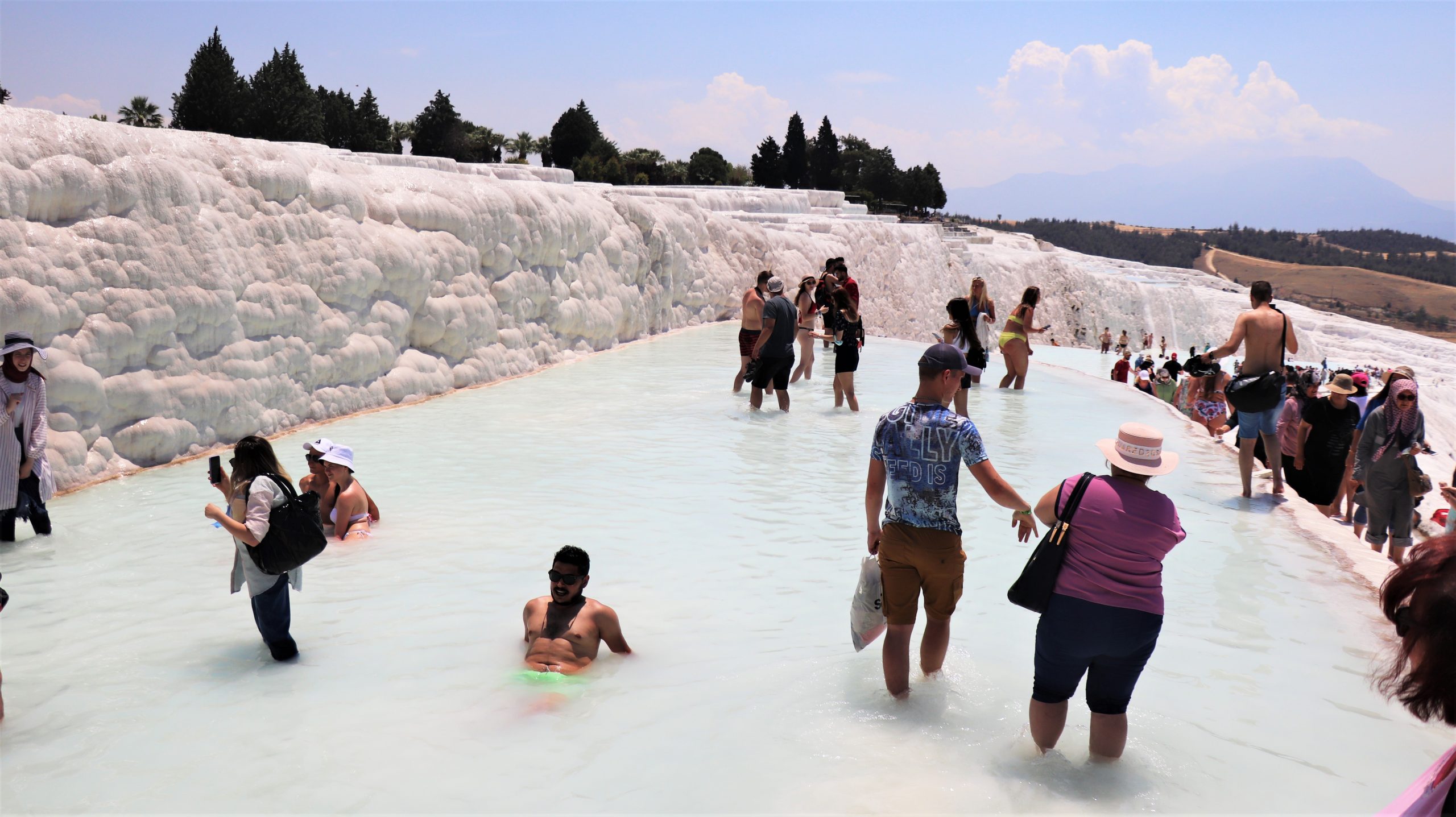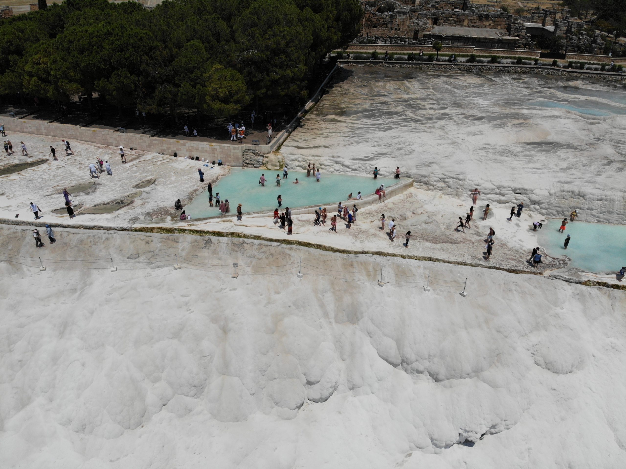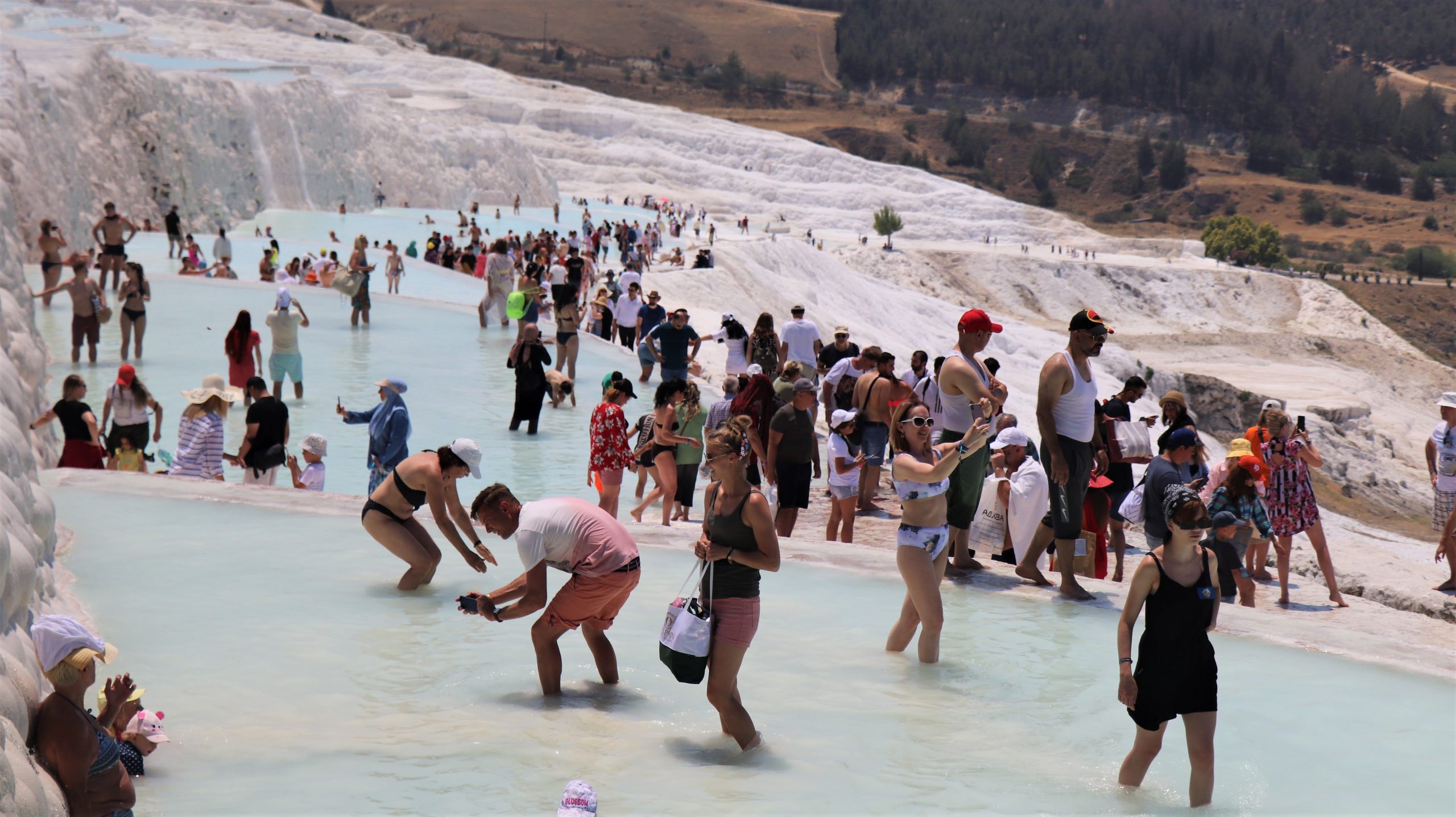In Turkey, Pamukkale is on the UNESCO World Cultural Heritage List, and it opened under gradual normalization processs. Tourists poured into the area and enjoy the place and warm weather.