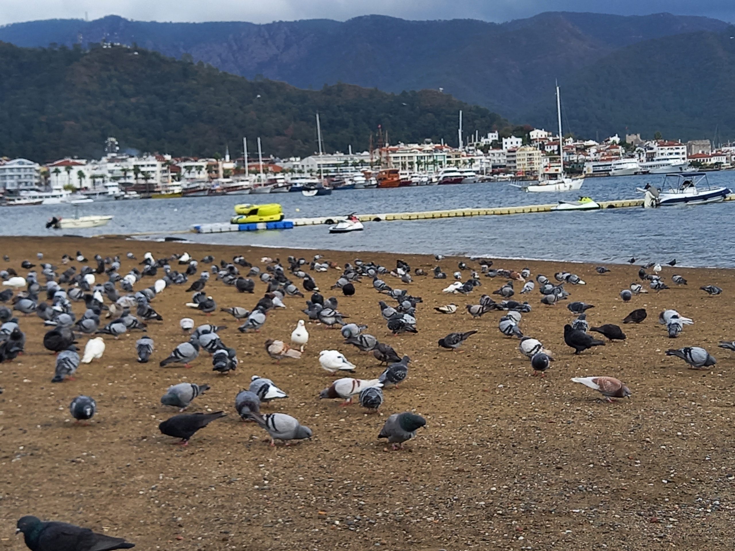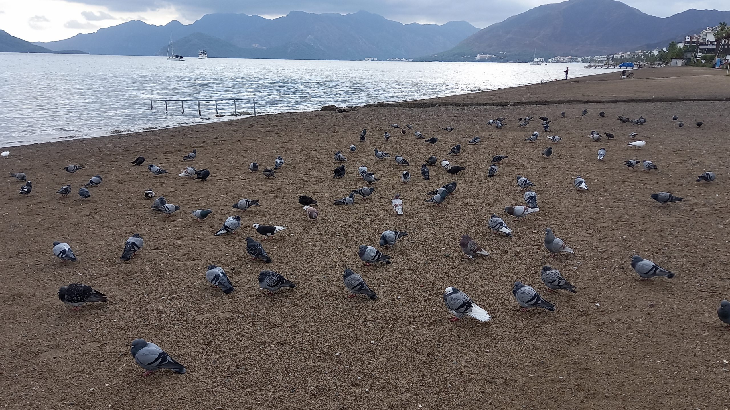 Hundreds of pigeons have taken over Muğla beach in Turkey as the weather becomes colder. They were photographed enjoying the emptied beach that was once a hot spot for tourists during summer. Pigeons formed a joyful image. Güldemet Kızıl MarmarispigeonTurkey 0 Share