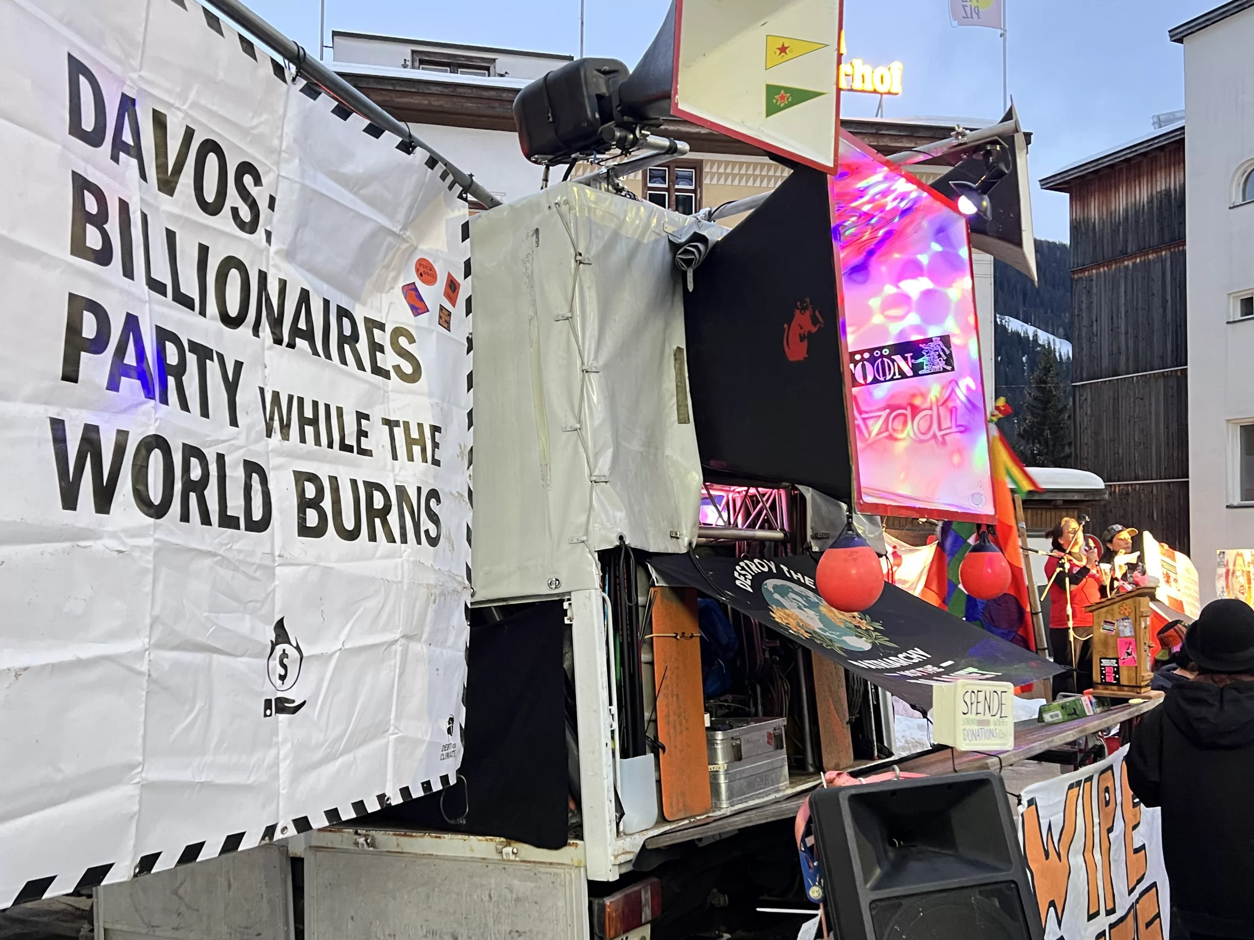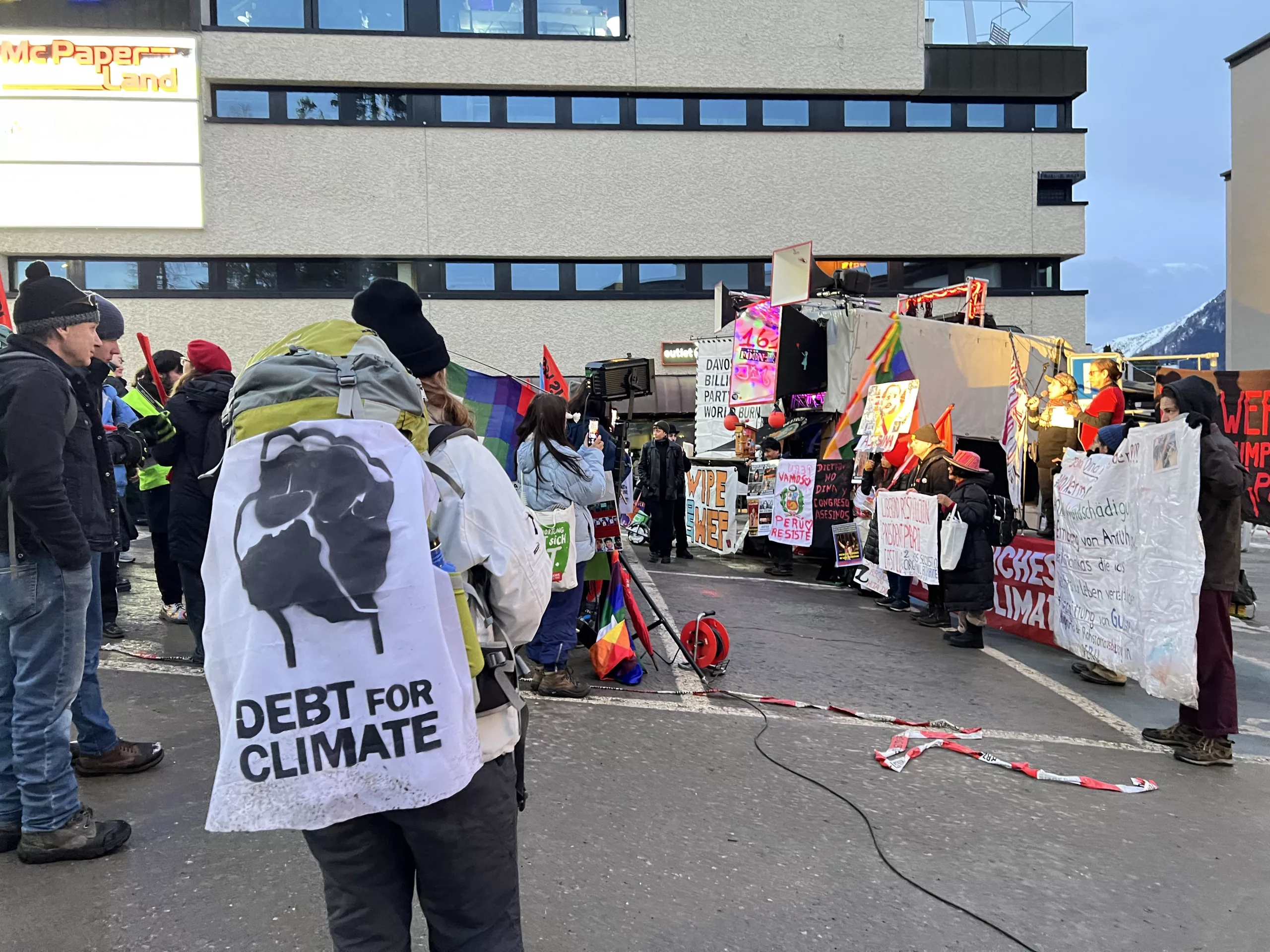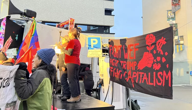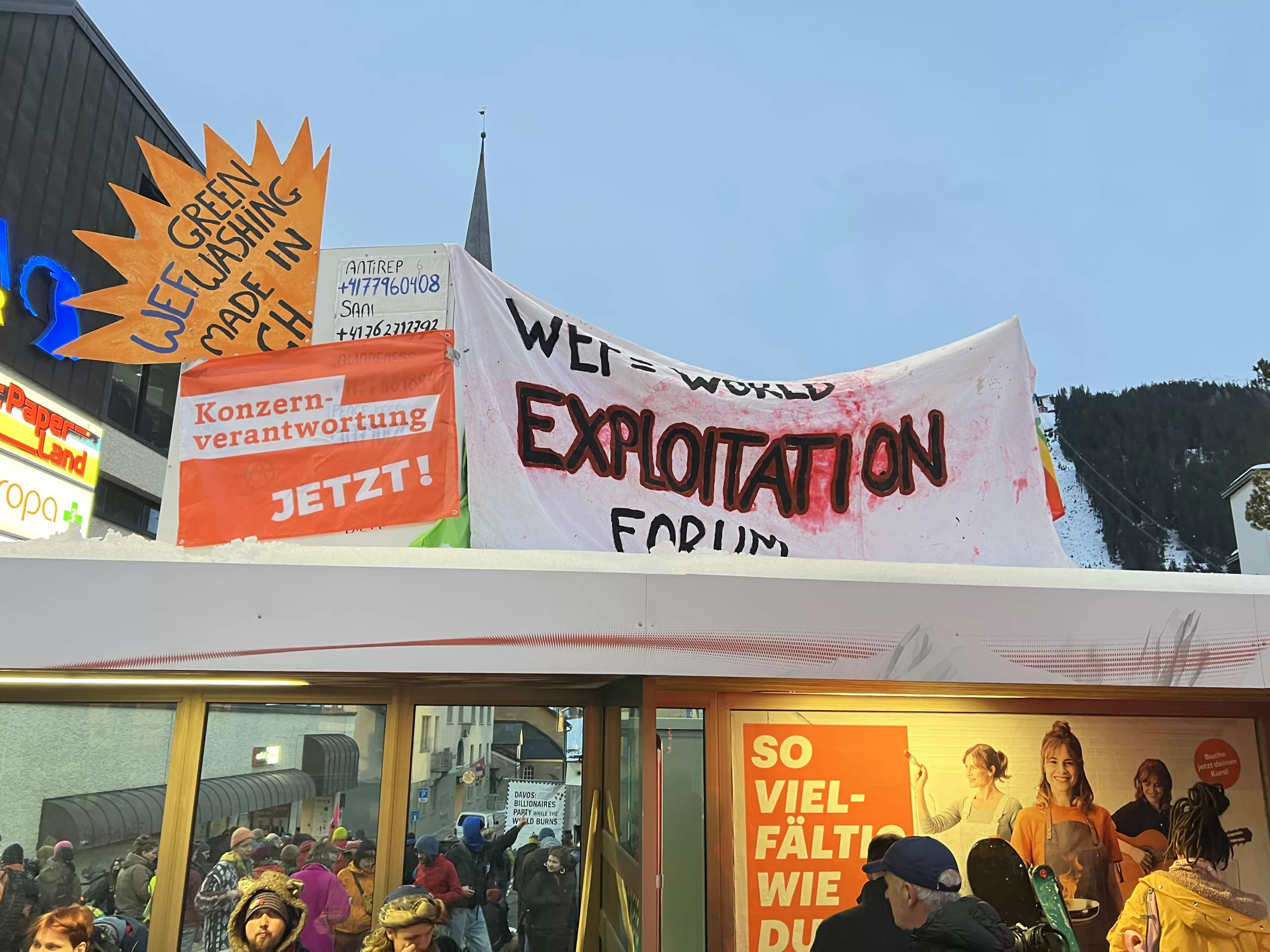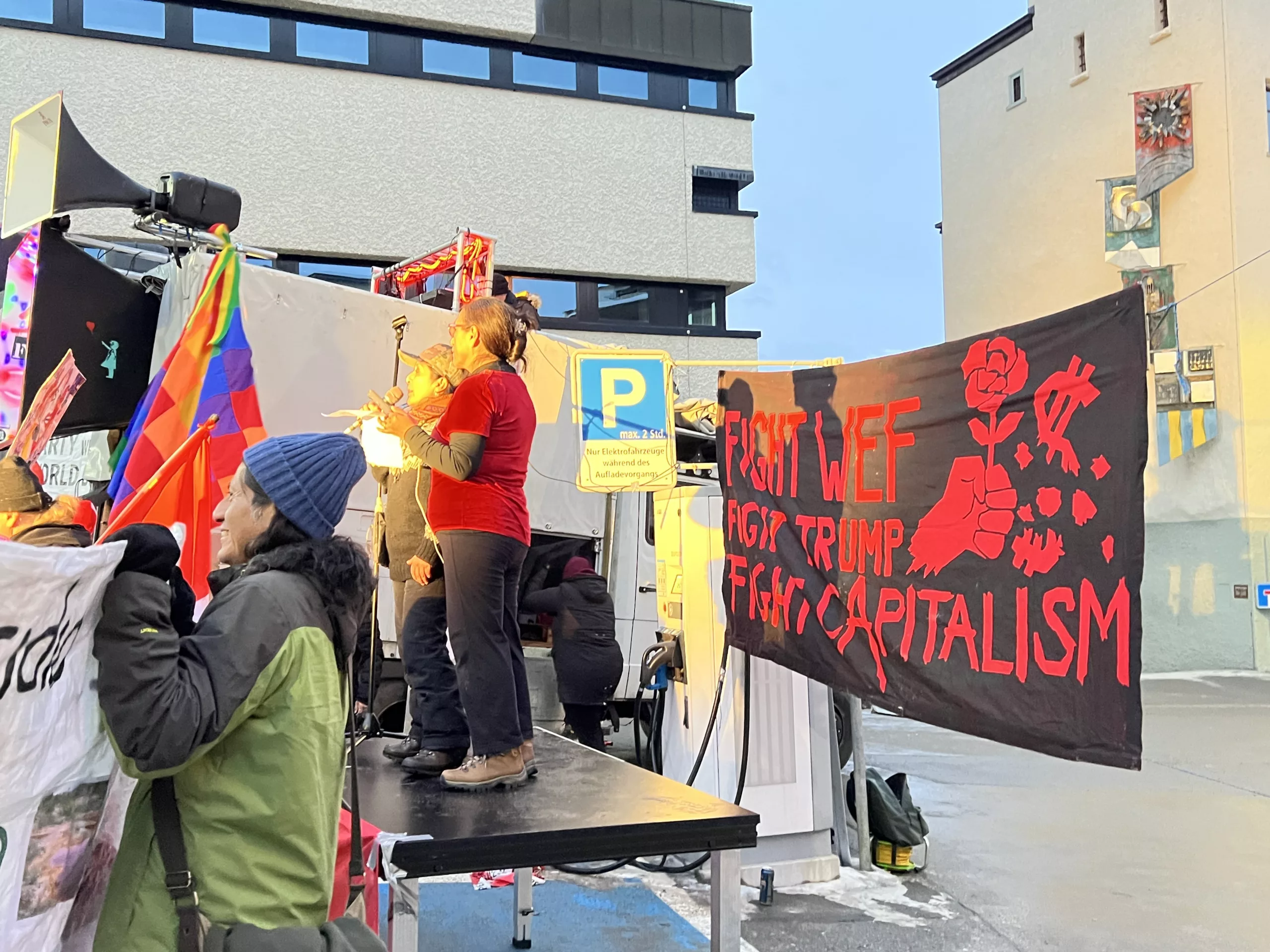 In Postplatz Square, the Young Socialists (JUSO) condemned the detentions, chanting slogans like “End colonial capitalism” and “World Exploitation Forum.” Two protesters stripped in freezing temperatures as part of their demonstration.