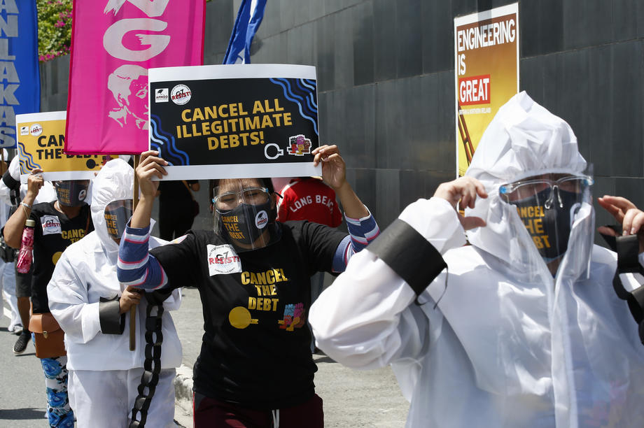 Protesters in Philippines march towards the British Embassy in Taguig City, Metro Manila. They urged G7 Summit members to take steps to allow debt cancellation for poor countries suffering economically as a result of the COVID-19 pandemic. 0 Share