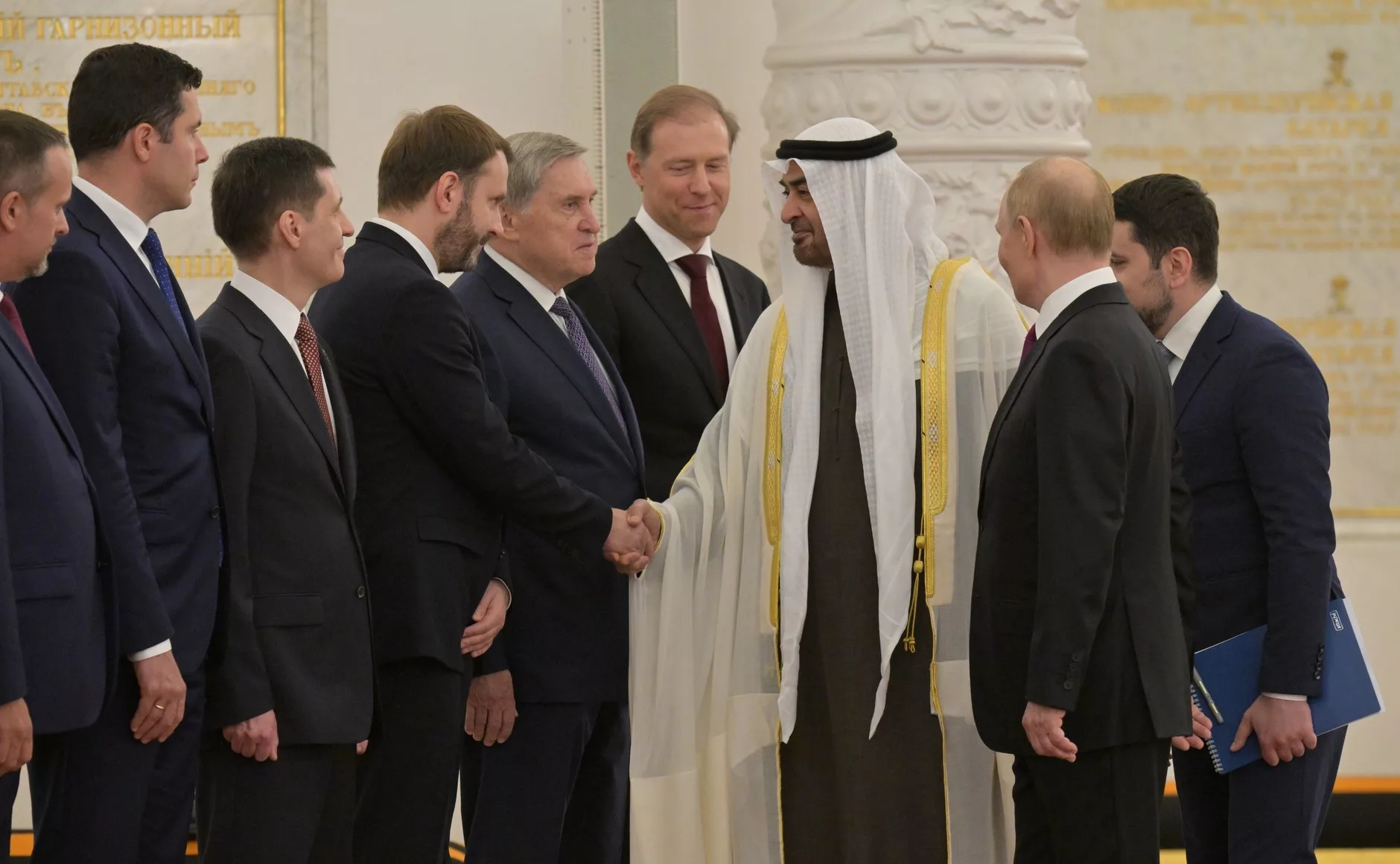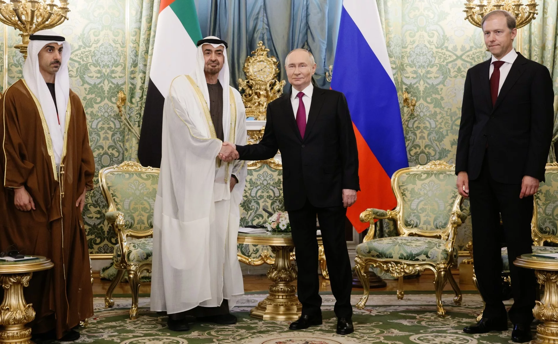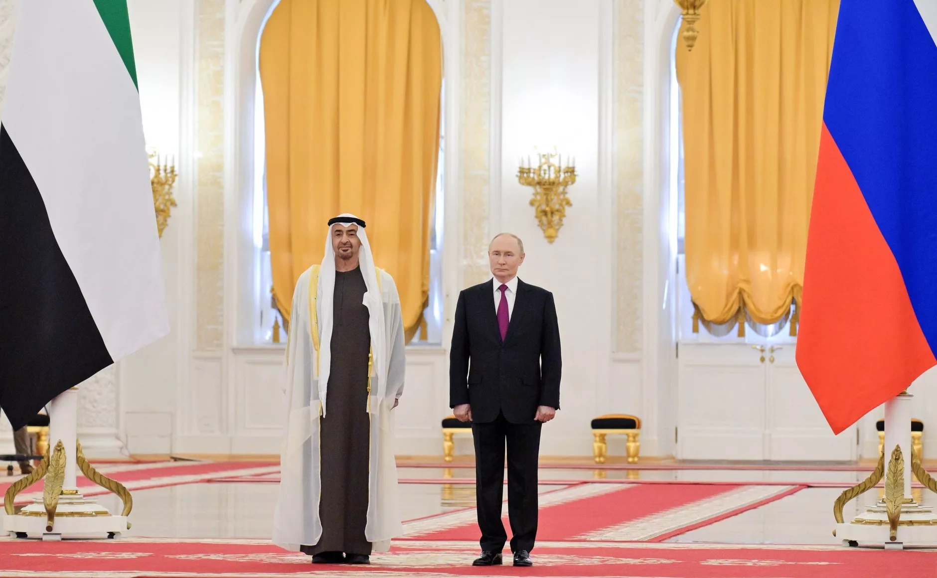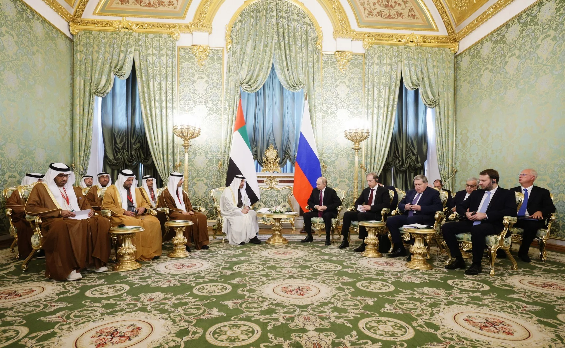 Russian President Vladimir Putin hosted UAE President Mohammed bin Zayed Al Nahyan in Moscow, discussing growing trade ties and cooperation in global security. Putin emphasized the strong political and economic relations between Russia and the UAE, with trade reaching $11.5 billion. Following the meeting, Putin told reporters that the UAE is an “appropriate” venue for a potential meeting with US President Donald Trump, noting that both sides are interested. On a possible meeting with Ukrainian President Volodymyr Zelenskyy, Putin said conditions must be met first.