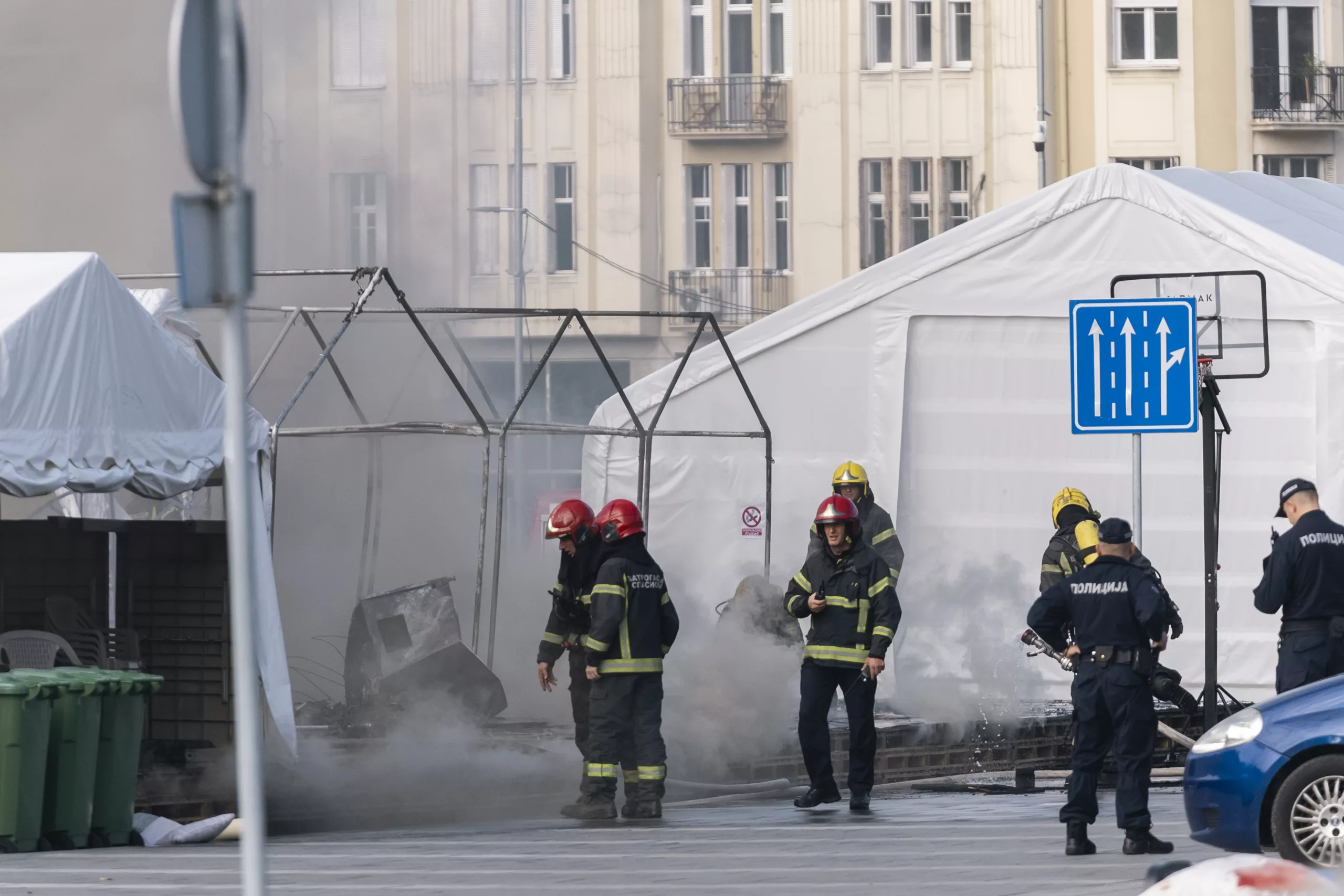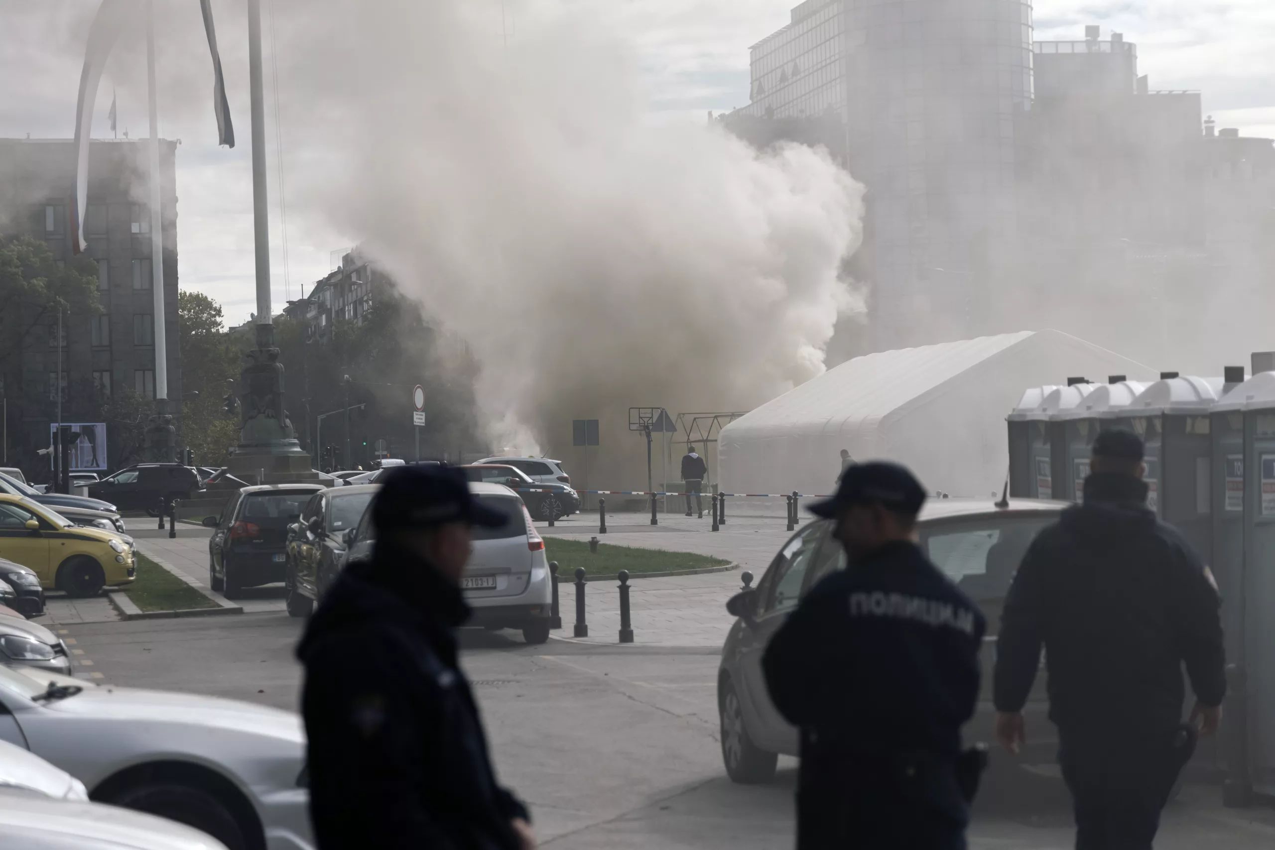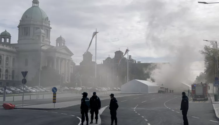 President Aleksandar Vucic called the incident a “terrorist attack,” identifying the suspect as 69-year-old Vladan Andjelkovic. The attacker also set a tent on fire before being detained.