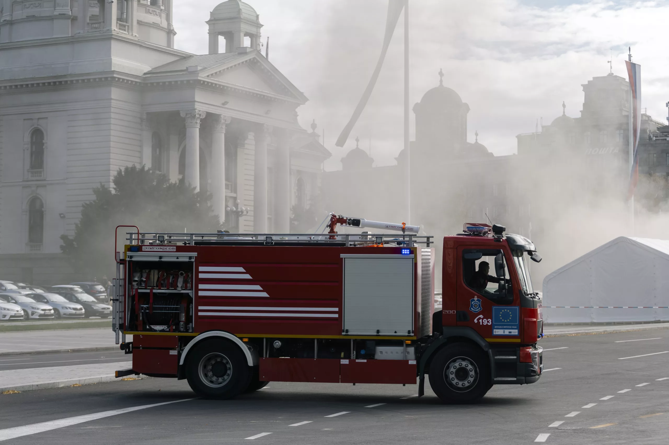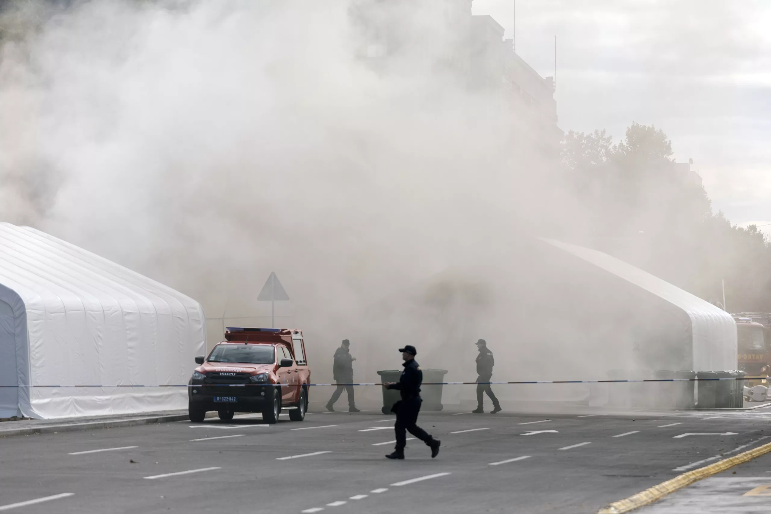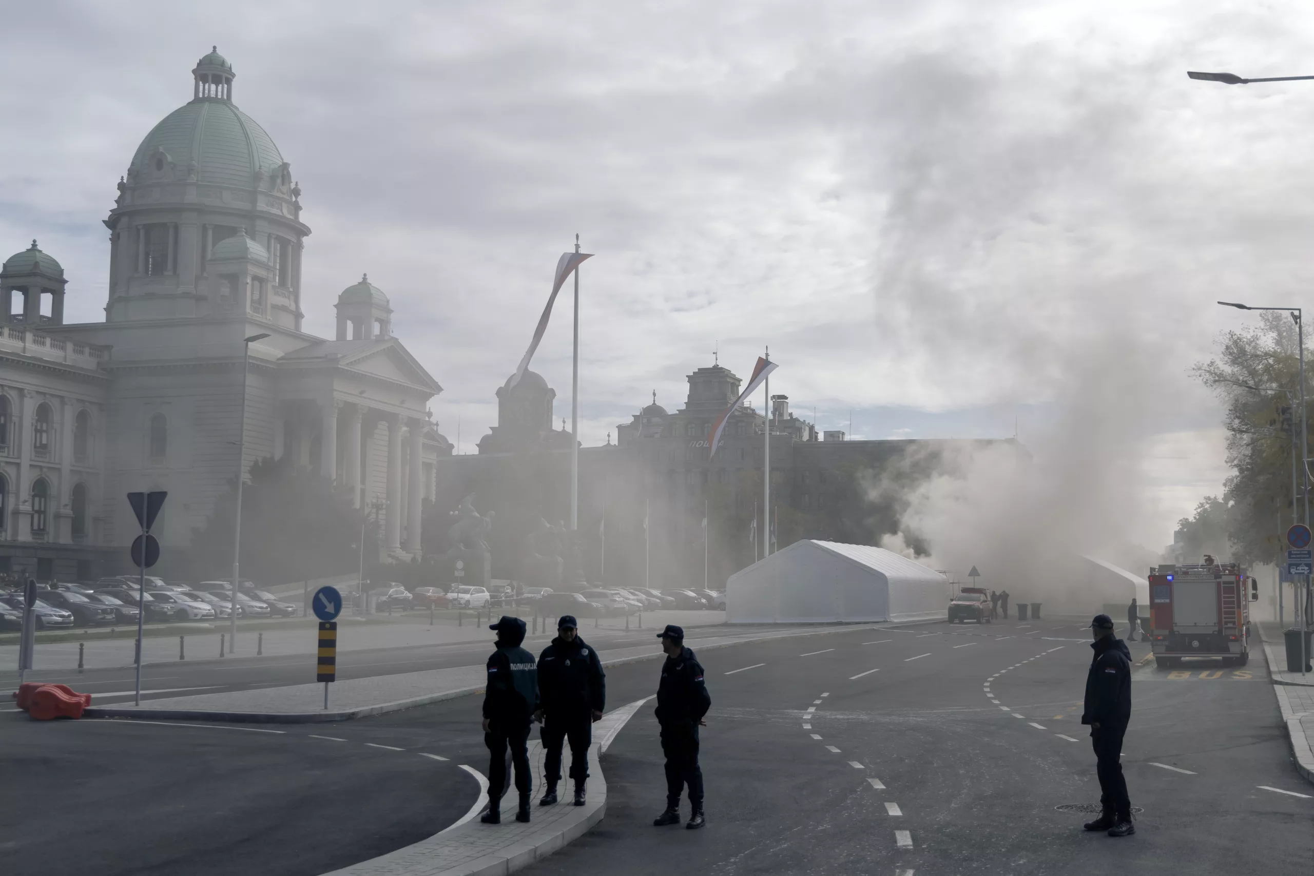 President Aleksandar Vucic called the incident a “terrorist attack,” identifying the suspect as 69-year-old Vladan Andjelkovic. The attacker also set a tent on fire before being detained.