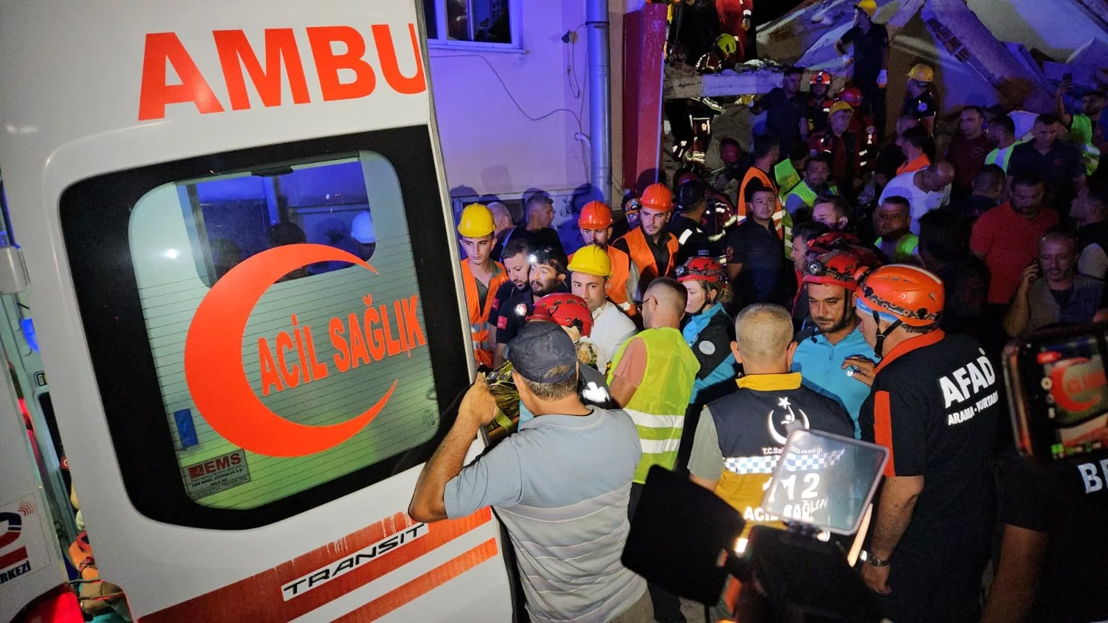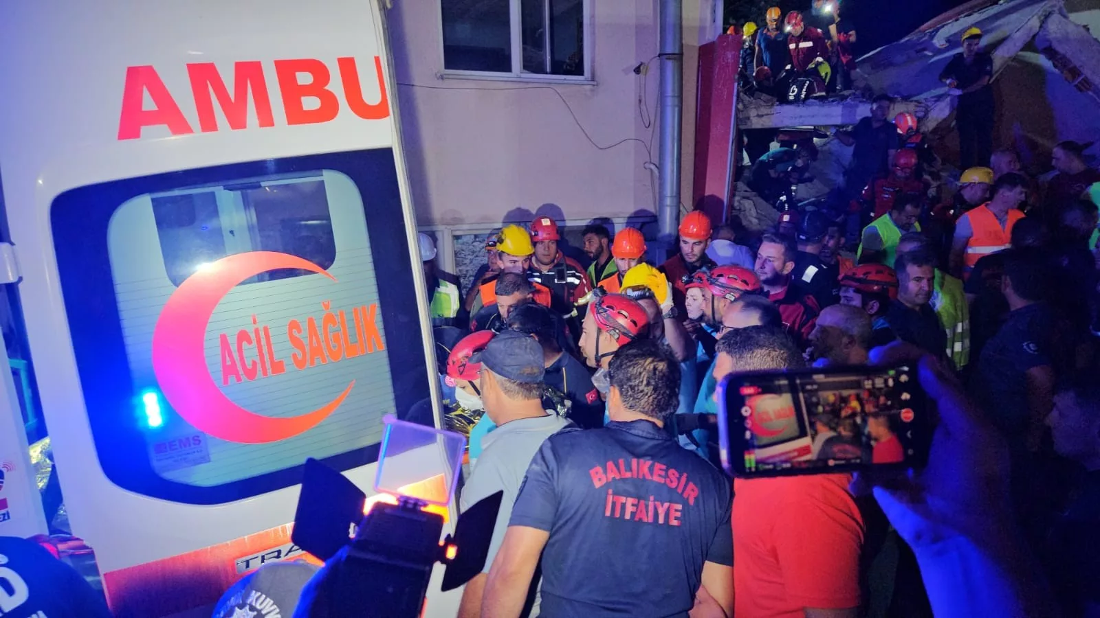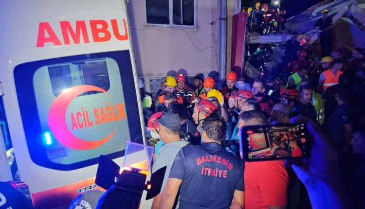 Six people were rescued alive from a collapsed building in Sındırgı, Balıkesir, following a 6.1 magnitude earthquake. Search and rescue teams, including AFAD, fire department, and paramedics, worked quickly to free the survivors, including Nihat Önbaş, Ayşe Güleş, and others. Sound monitoring continues as teams listen for signs of further survivors.